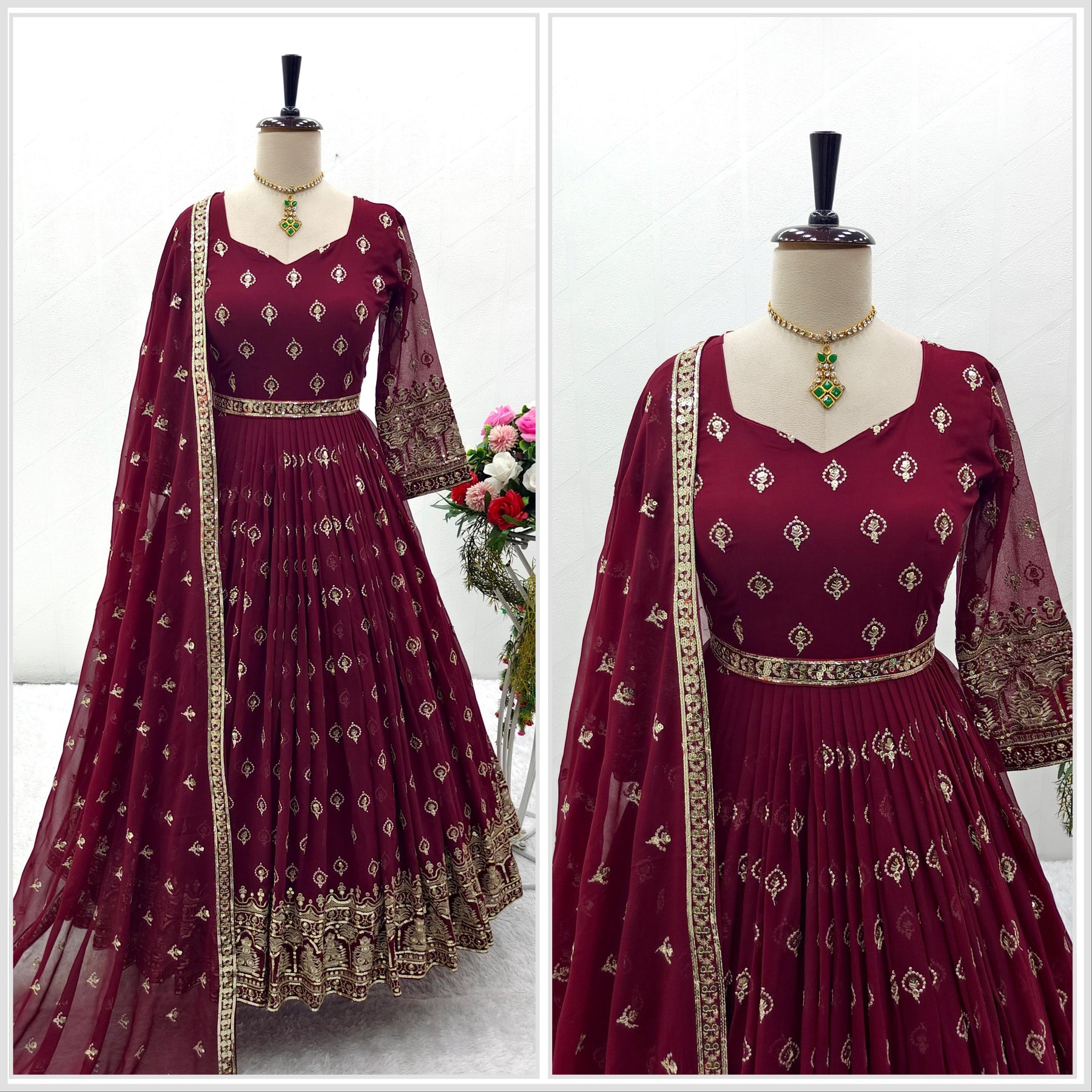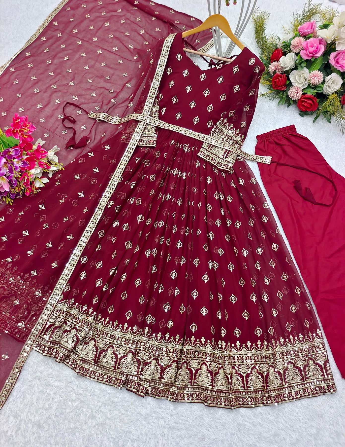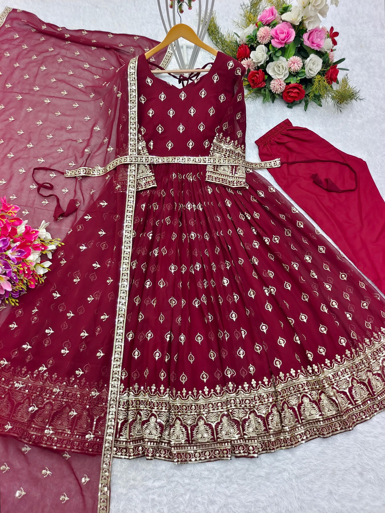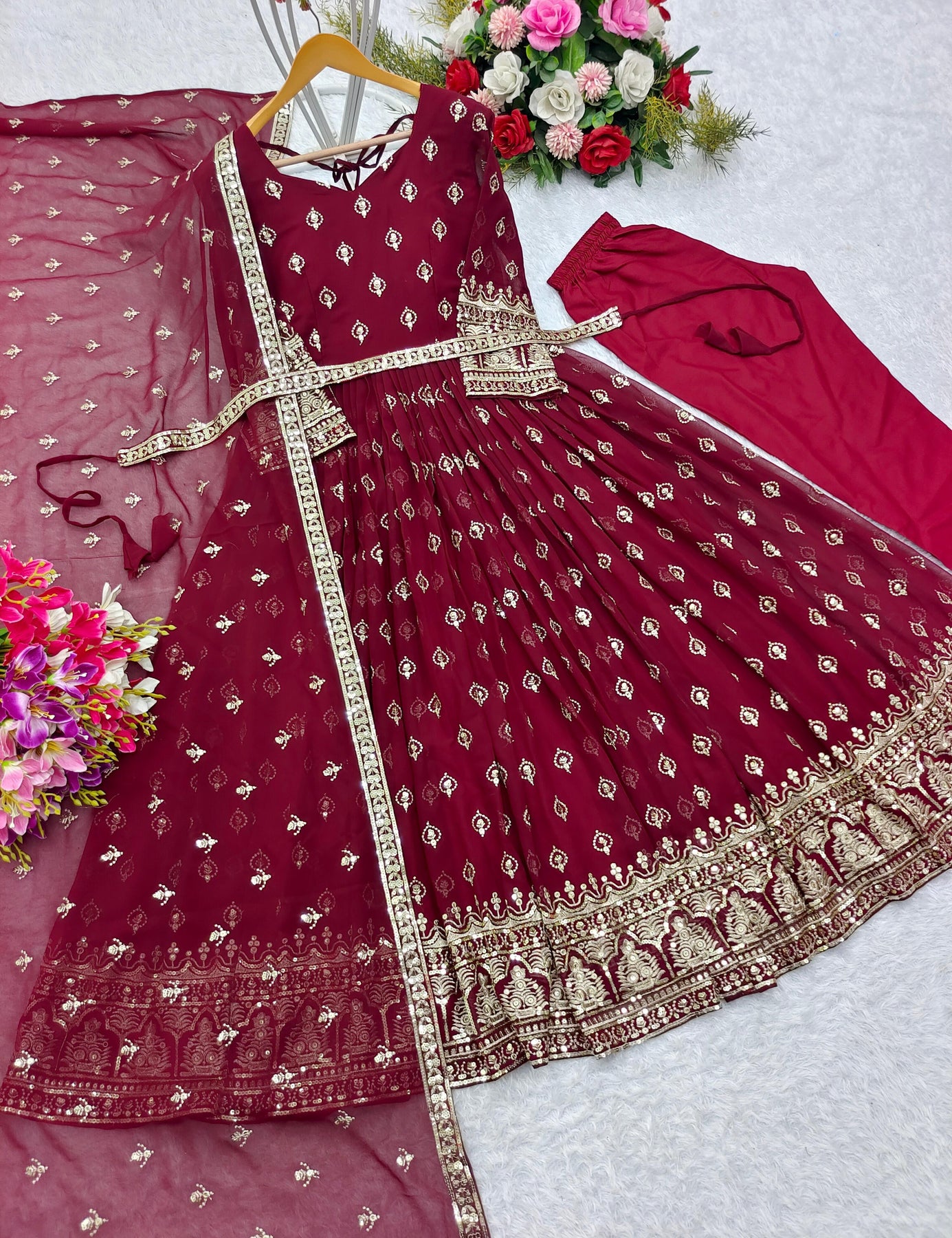 Awesome Sequence Work Maroon Color Gown