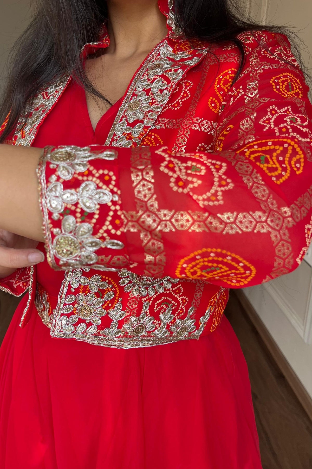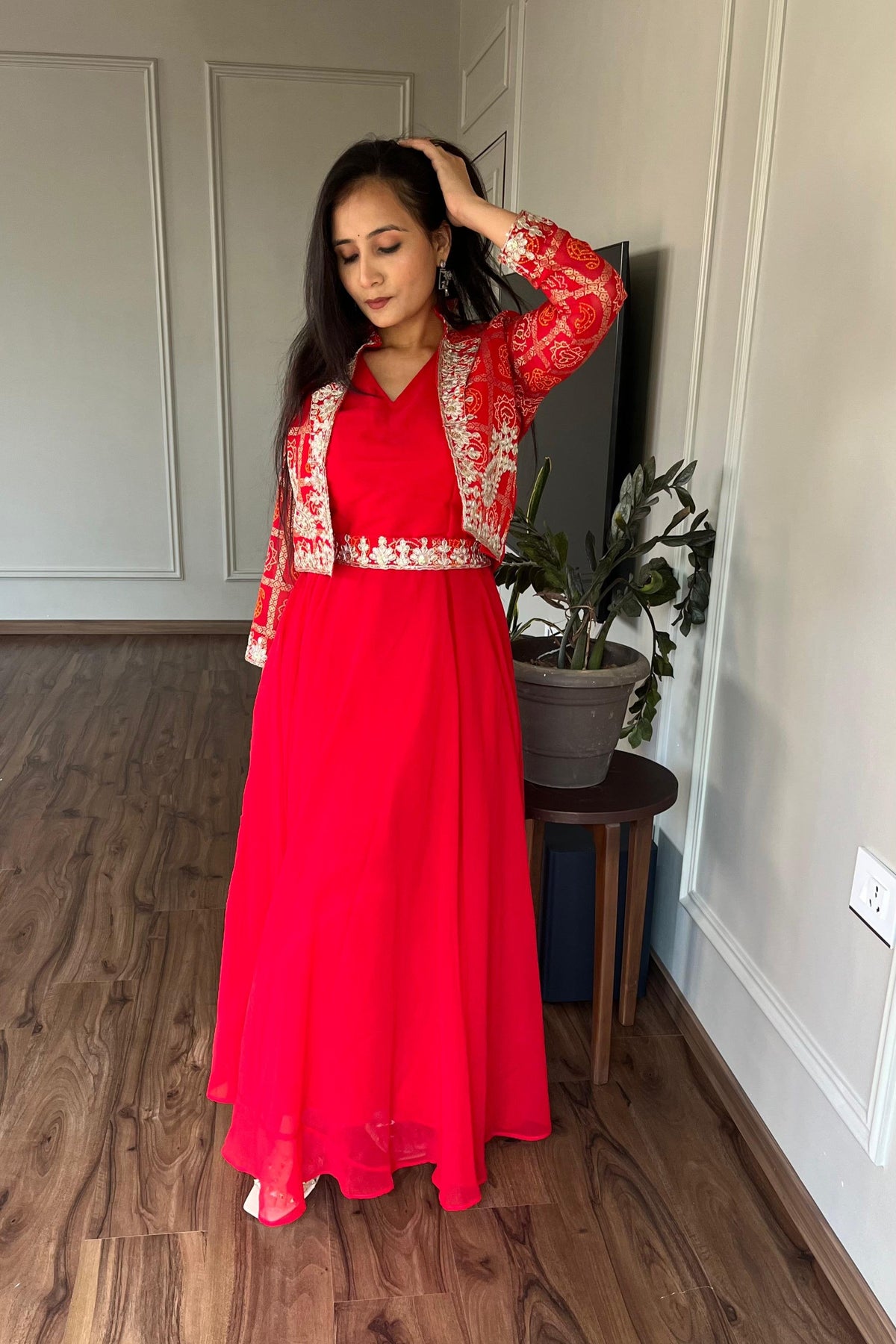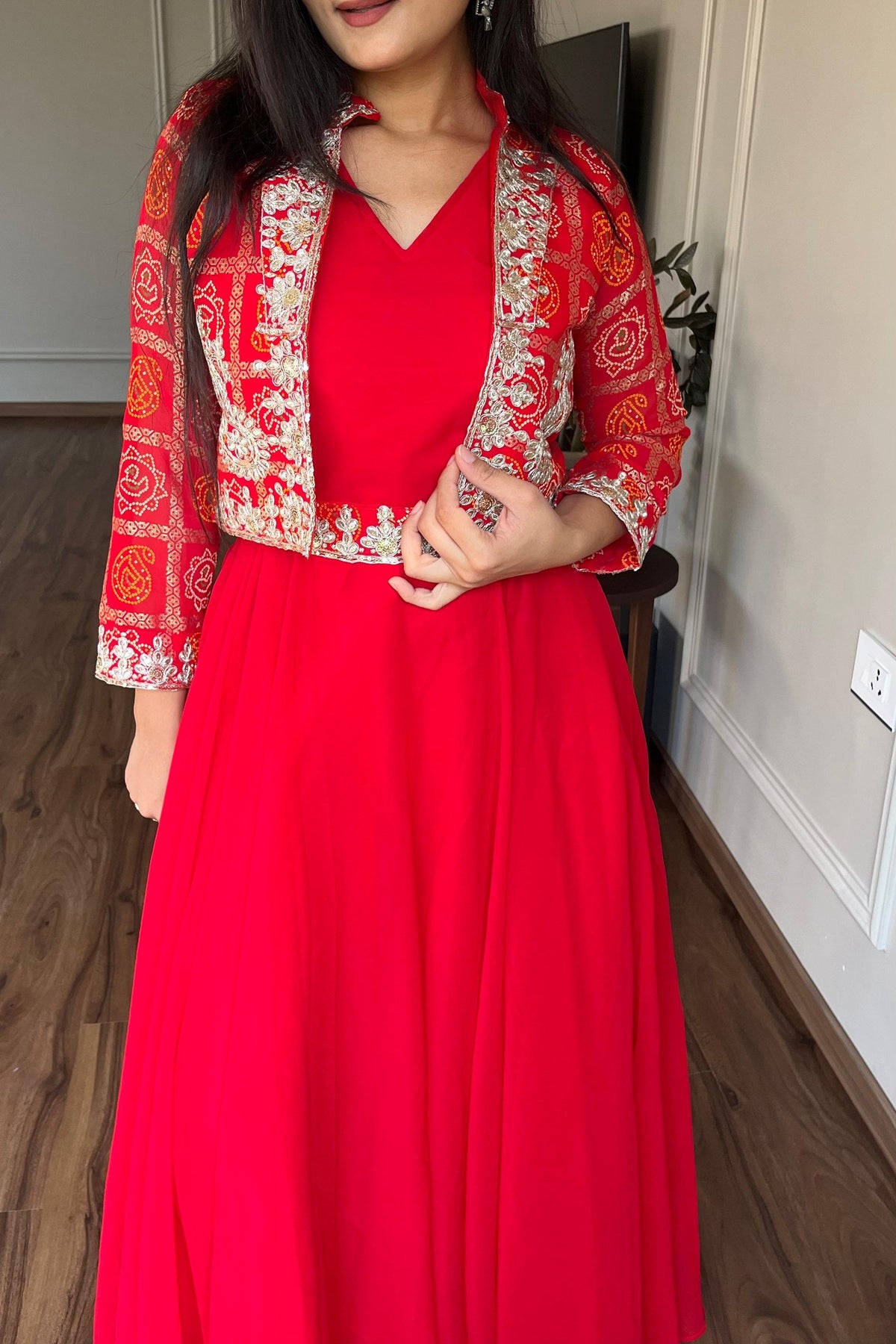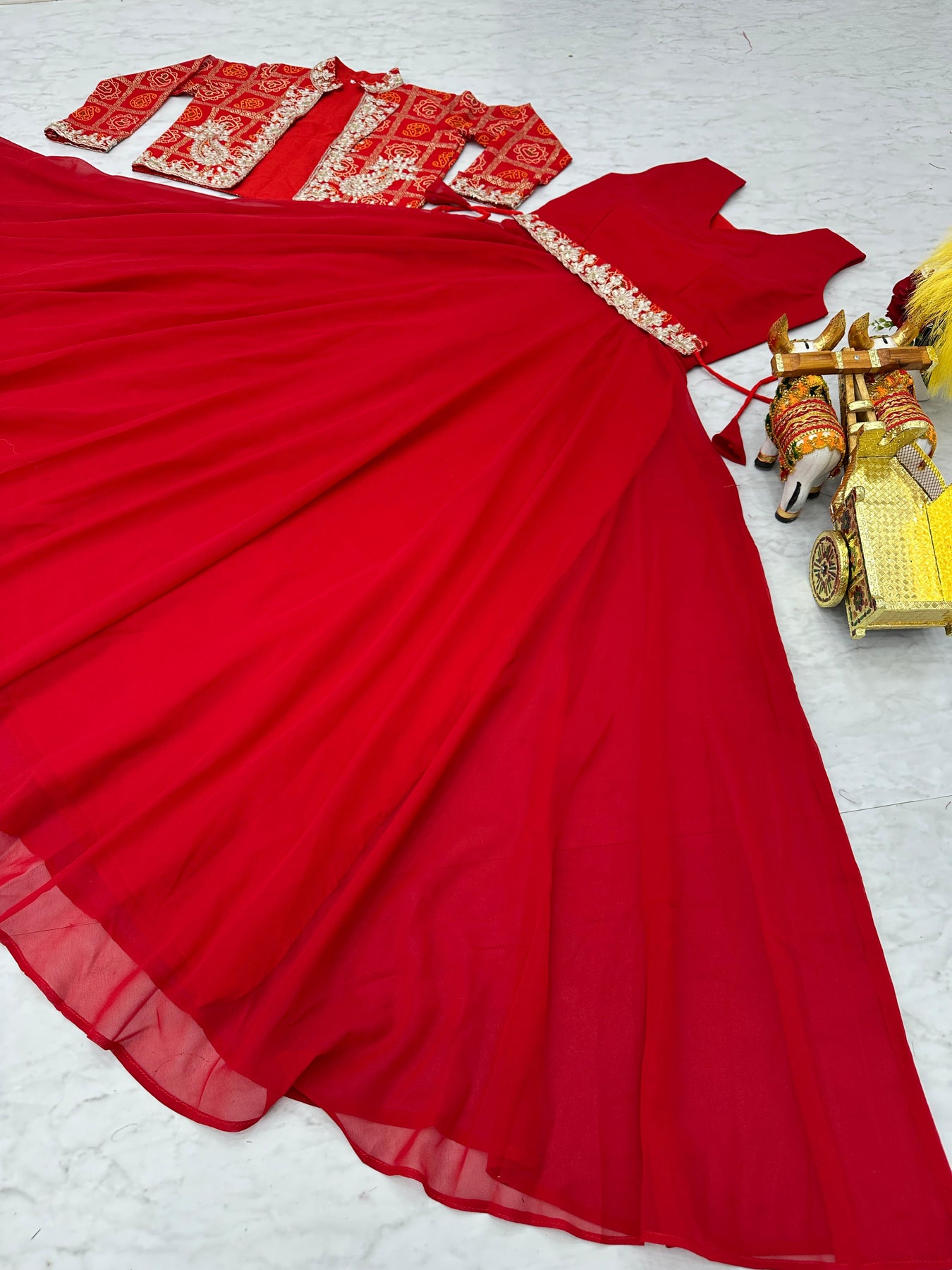 | Work | 5mm Sequence Embroidery Work With Full-sleeve With (Attached-paid With Kamer Belt) |