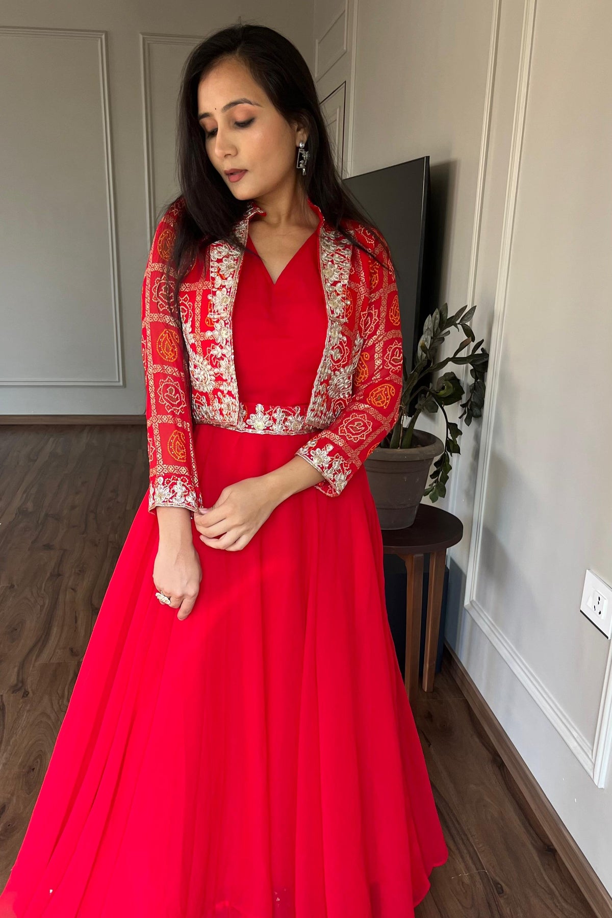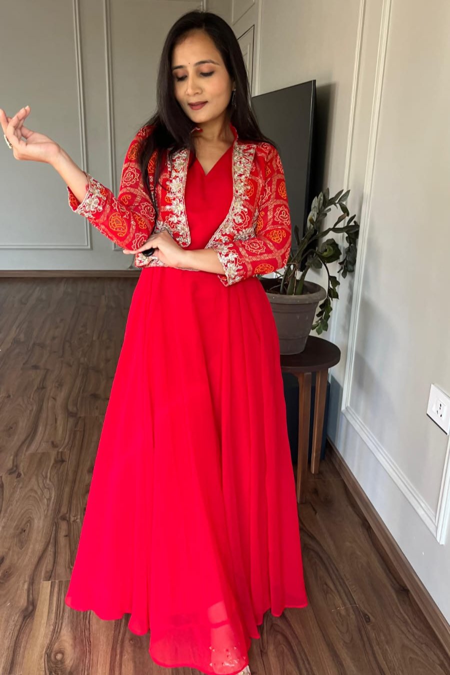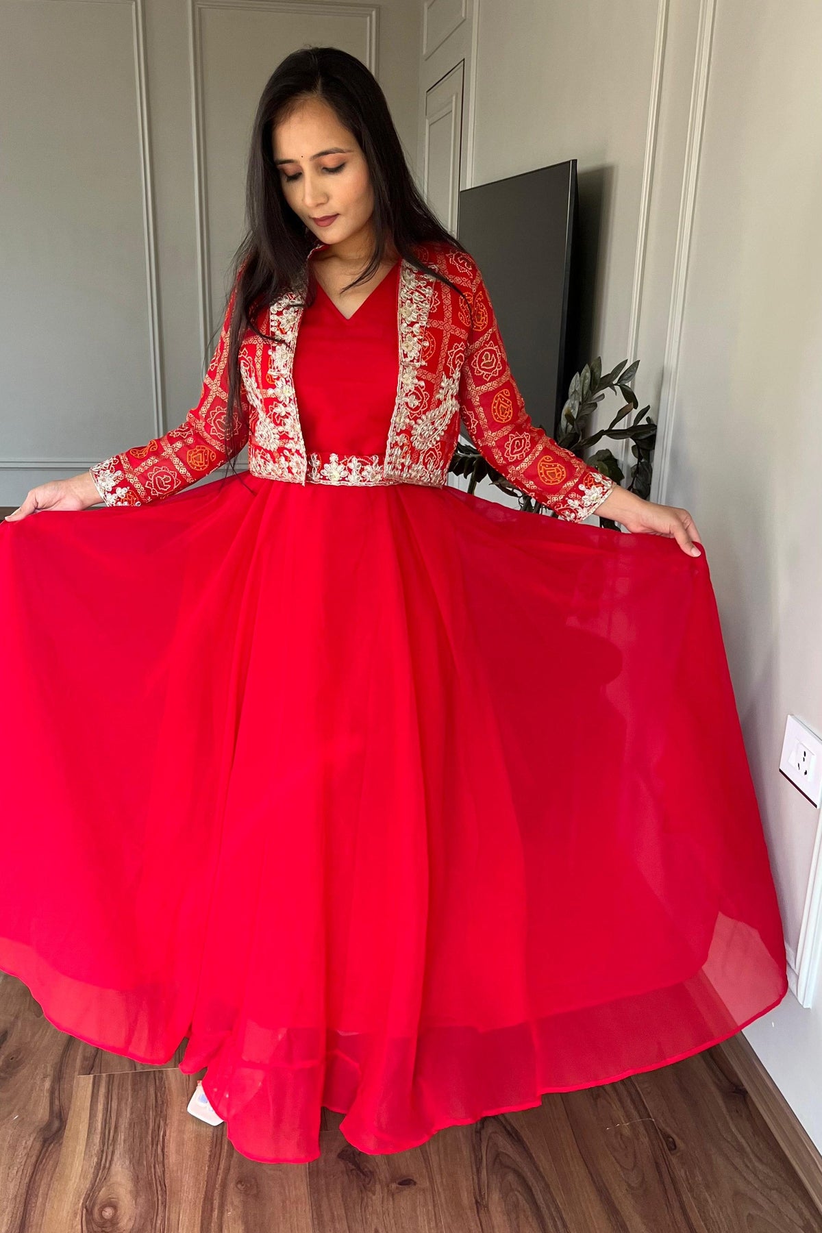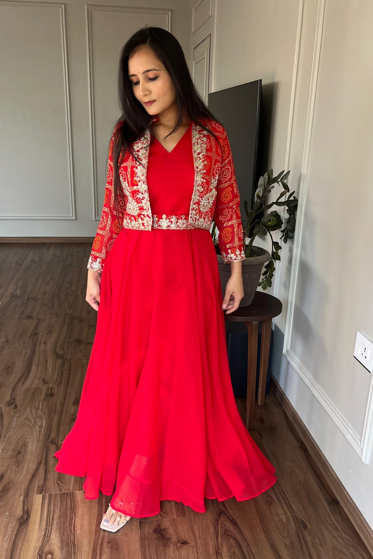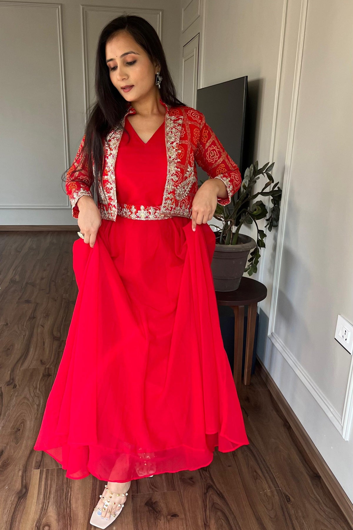 | Work | 5mm Sequence Embroidery Work With Full-sleeve With (Attached-paid With Kamer Belt) |