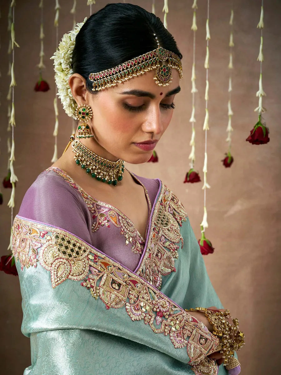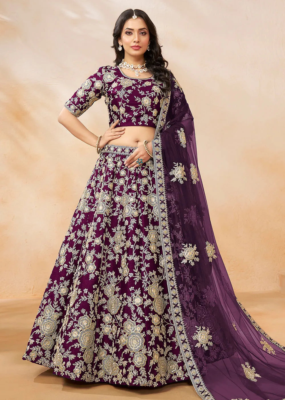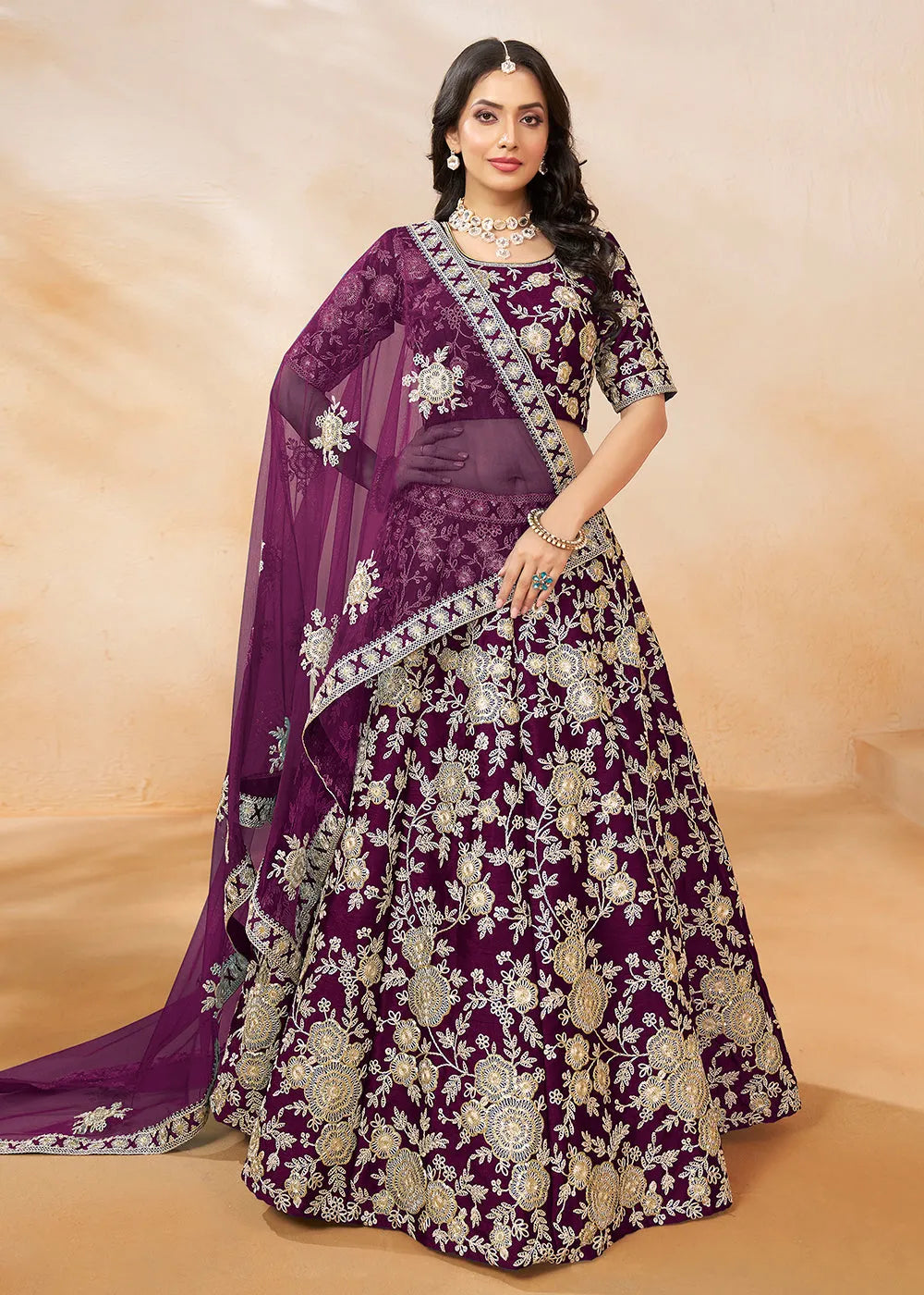 Stunning Pink-Purple Vichitra Silk Embroidered Palazzo Suit