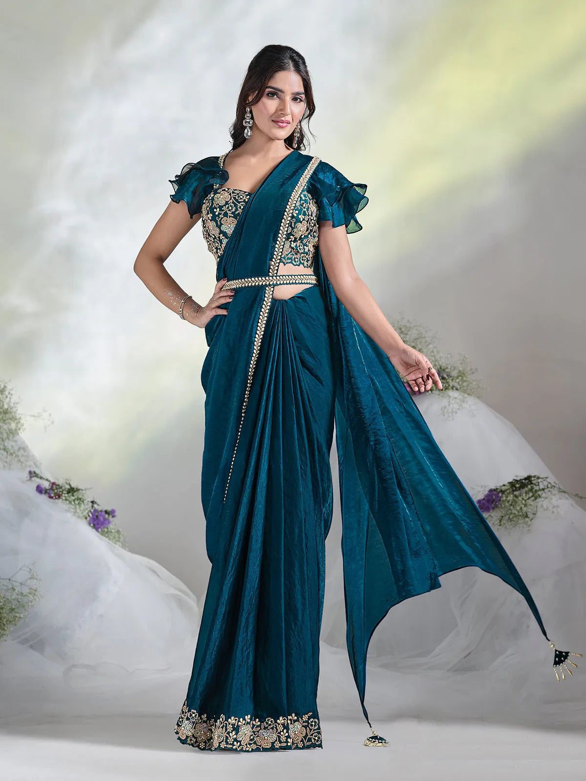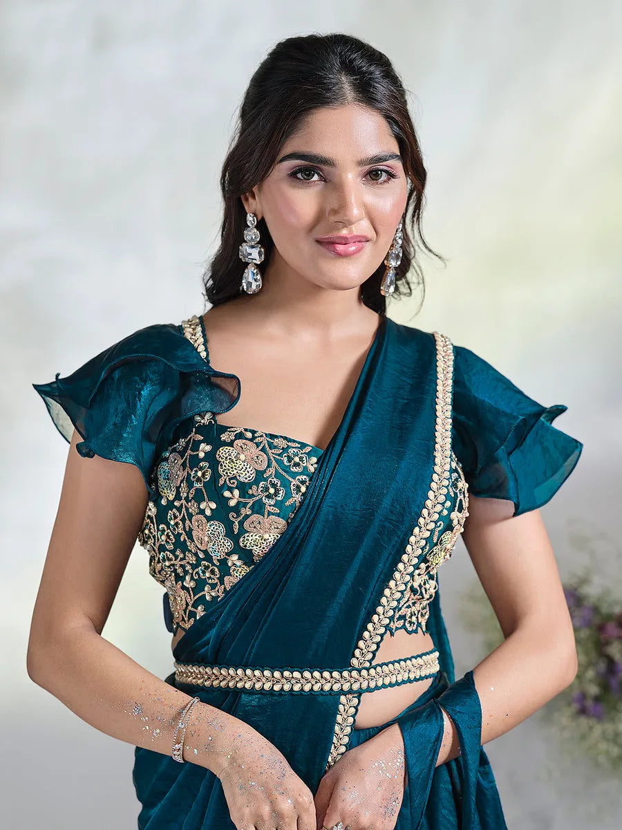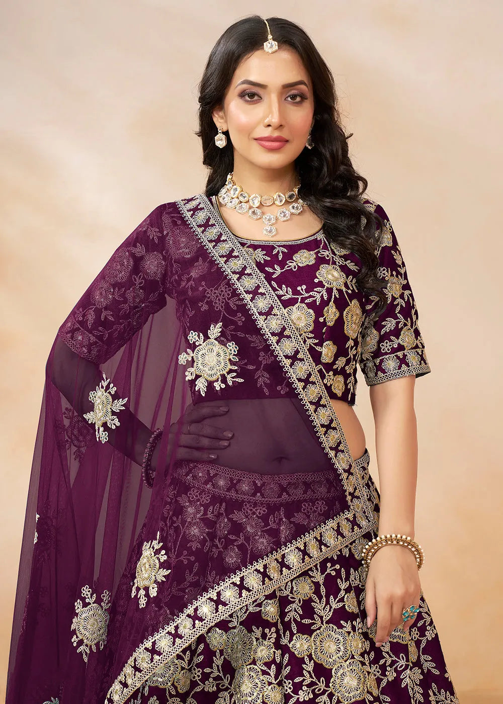 Stunning Pink-Purple Vichitra Silk Embroidered Palazzo Suit