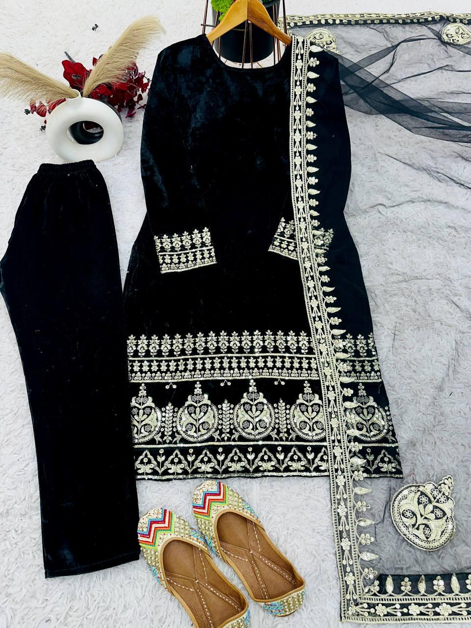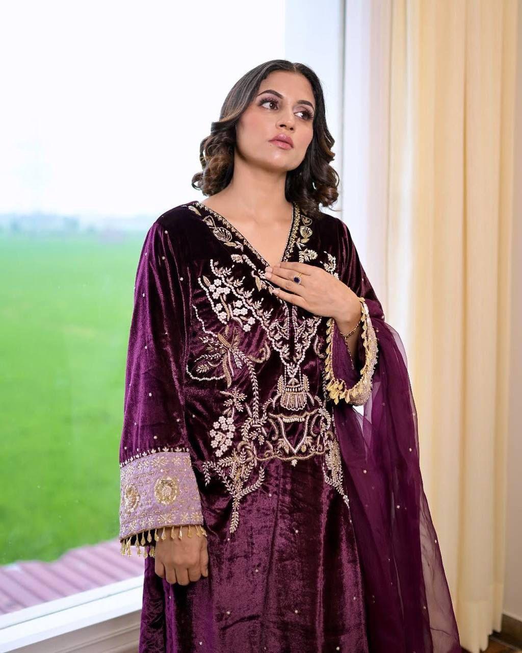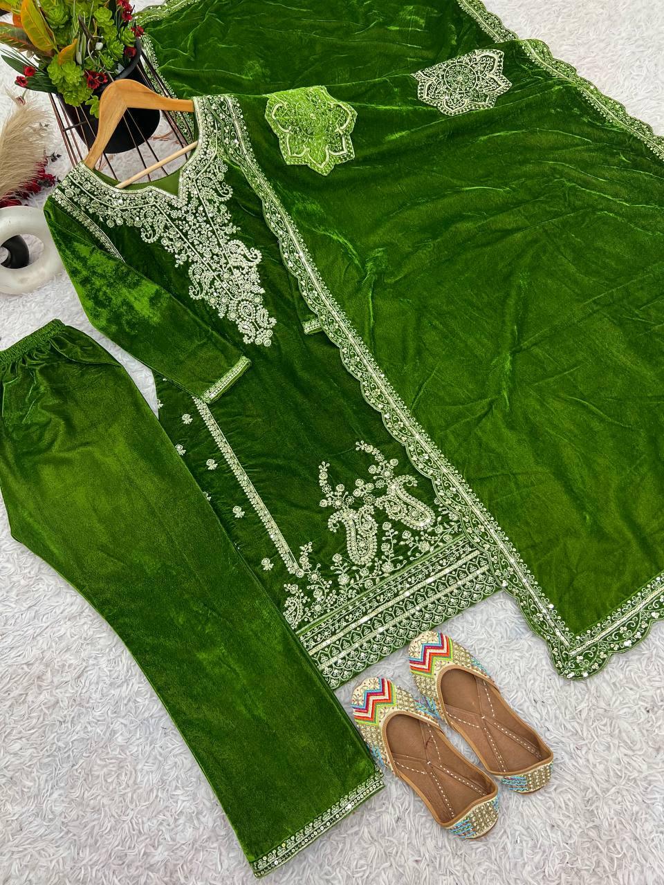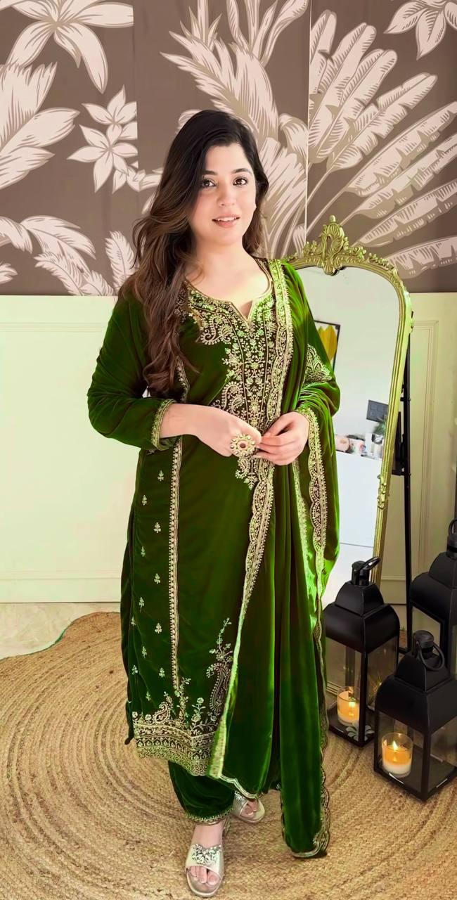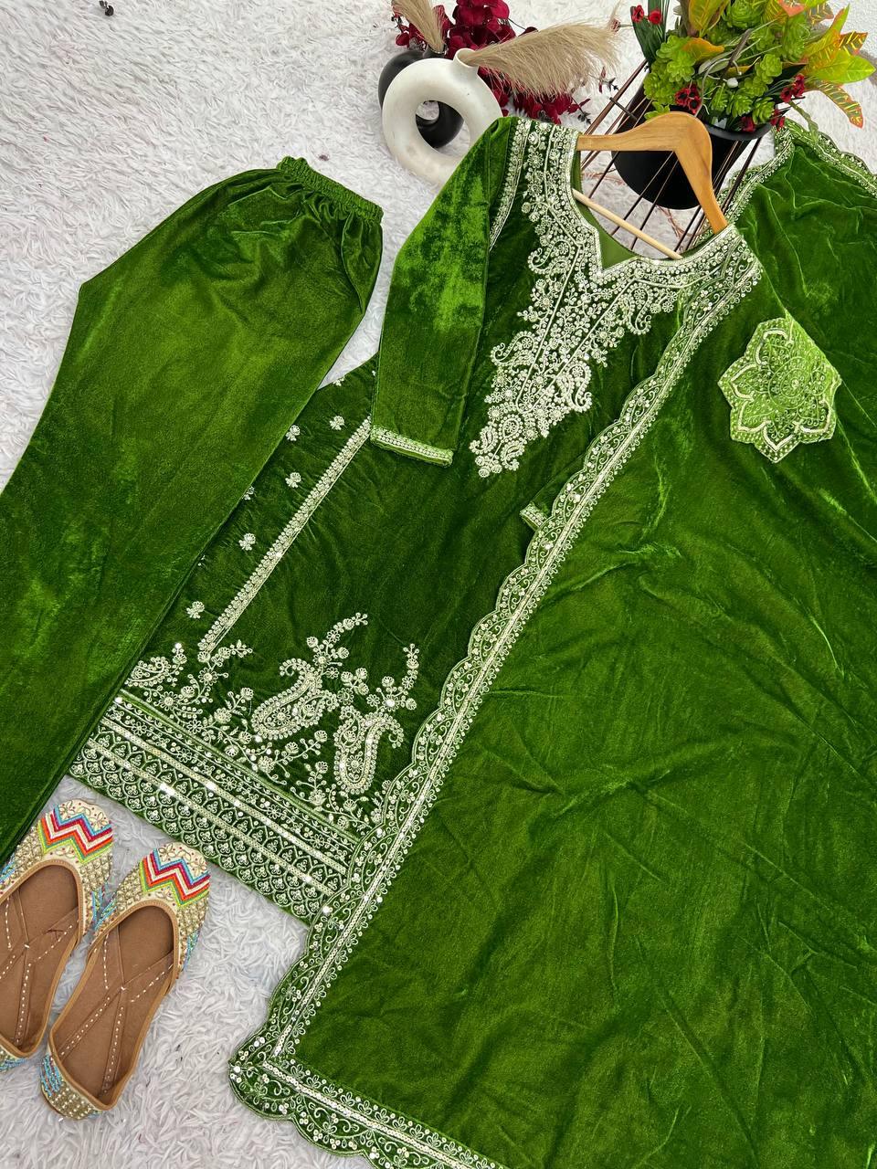 Traditional wear Purple Color Velvet Embroidery Work Salwar Suit