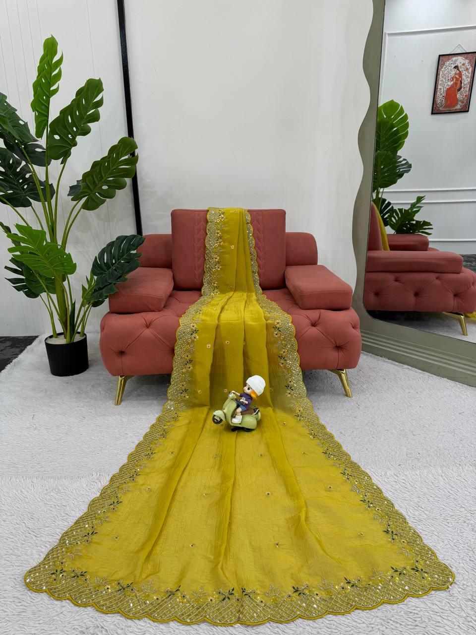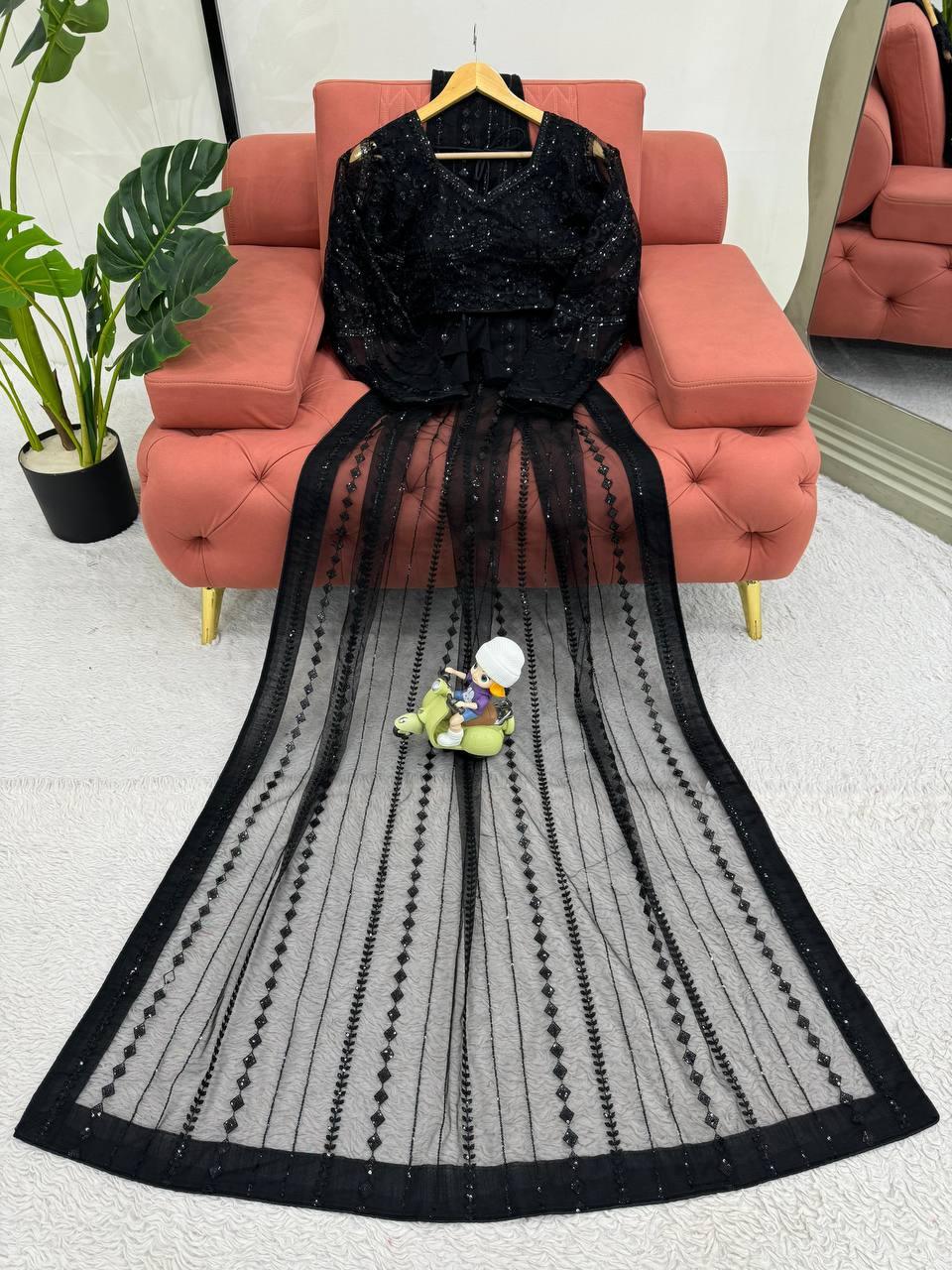 | FABRICS | Viscose Velvet with Embroidery Sequence Work lace border |