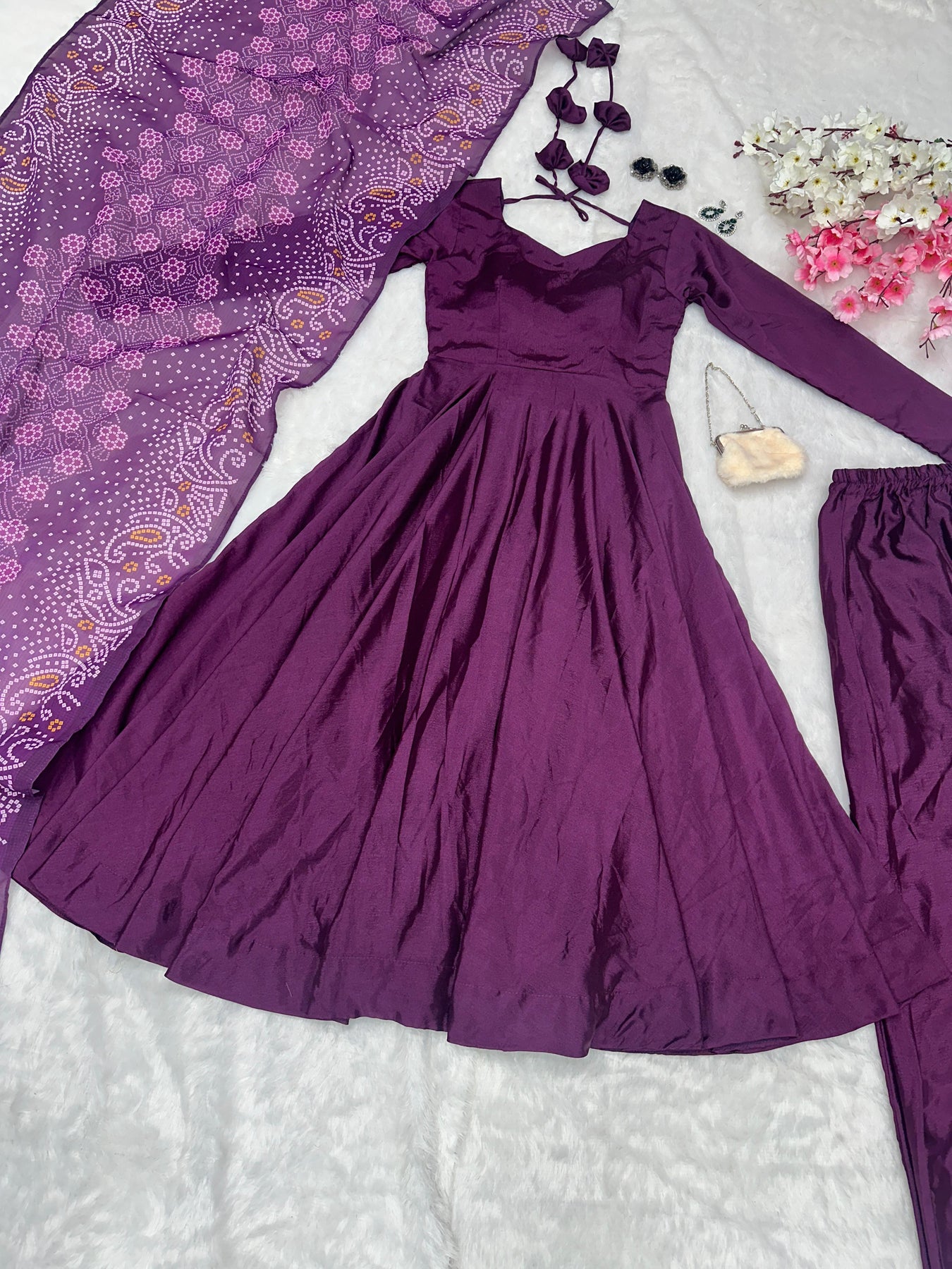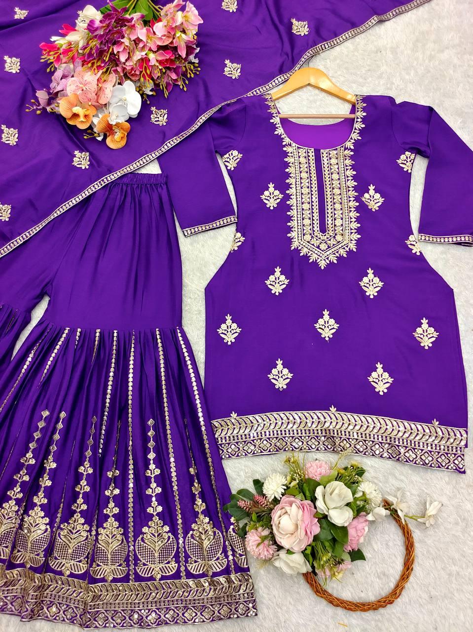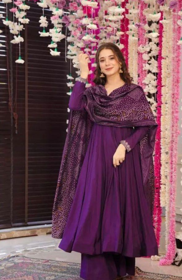Ceremony Wear Russian Silk Purple Color Lehenga