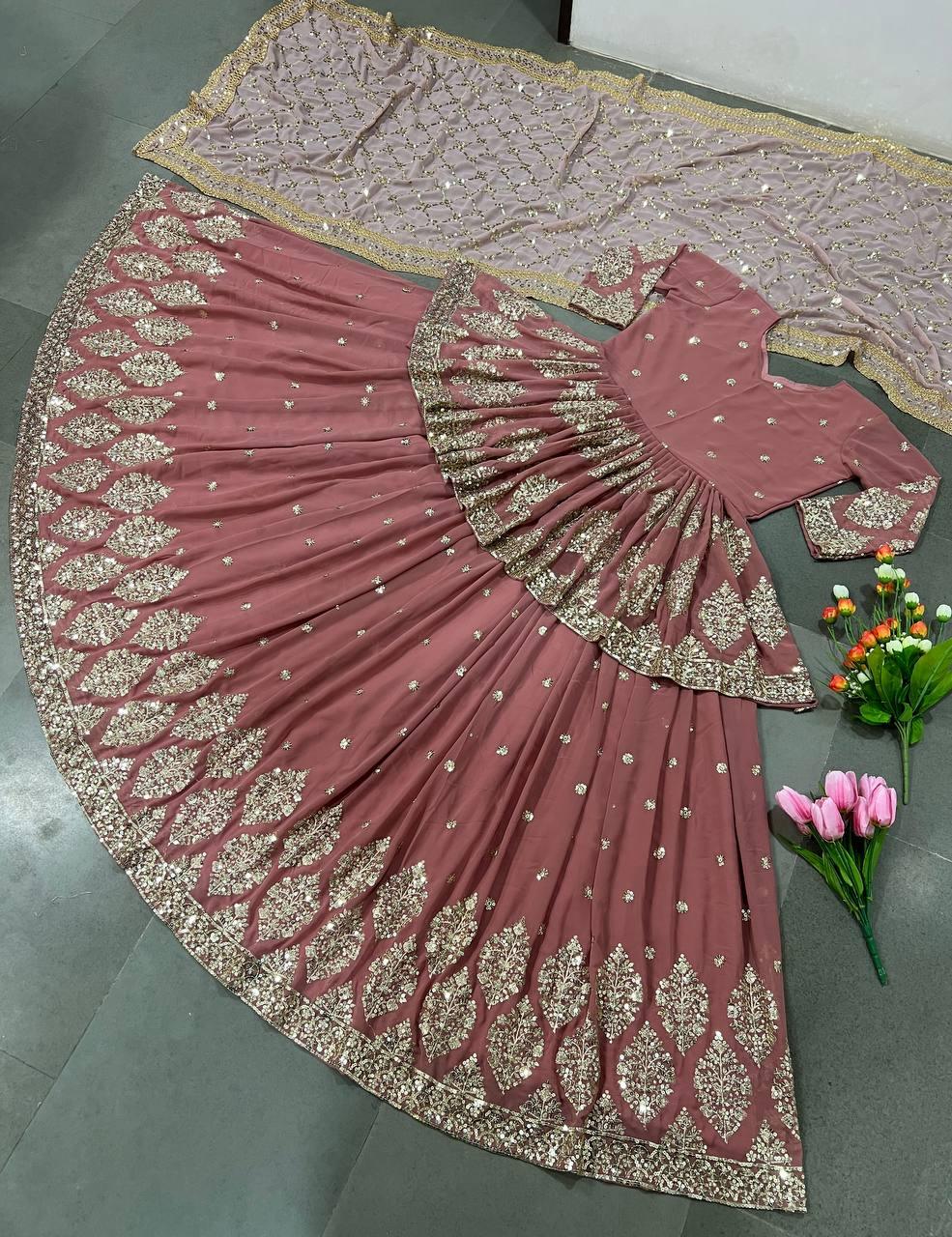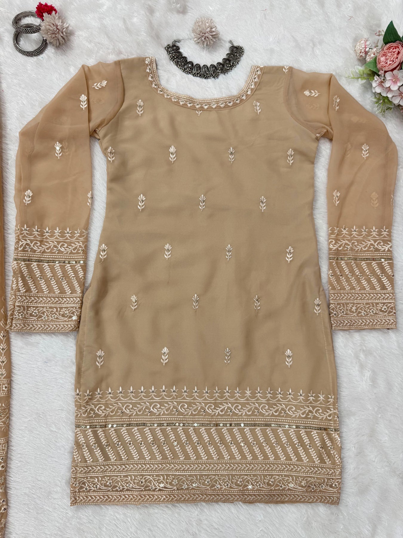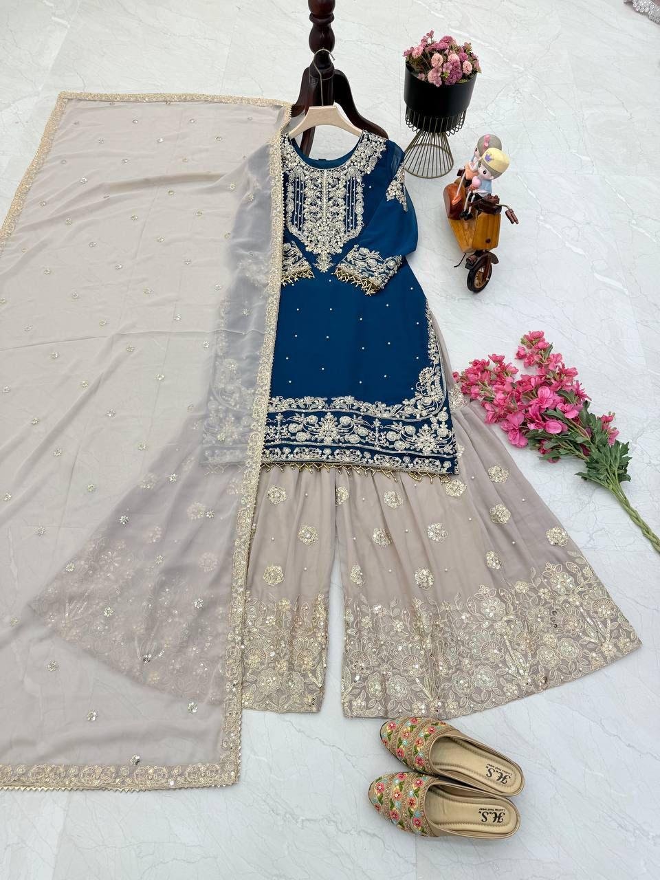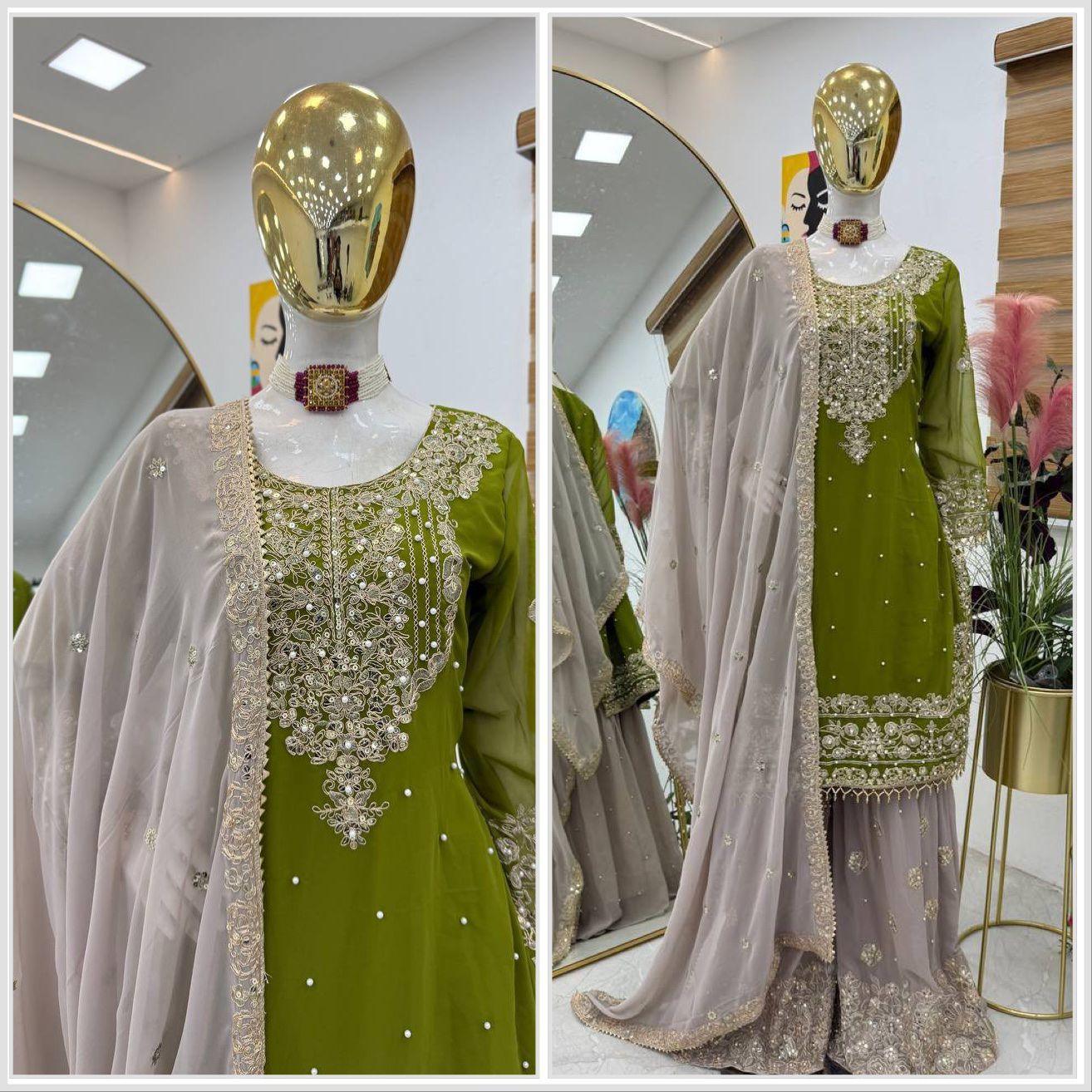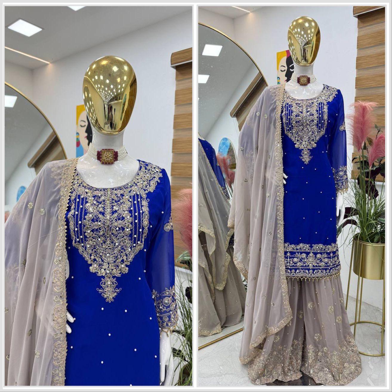 | Fabric | Heavy Faux Georgette With Embroidery Sequence Work *(Full stitched)* |