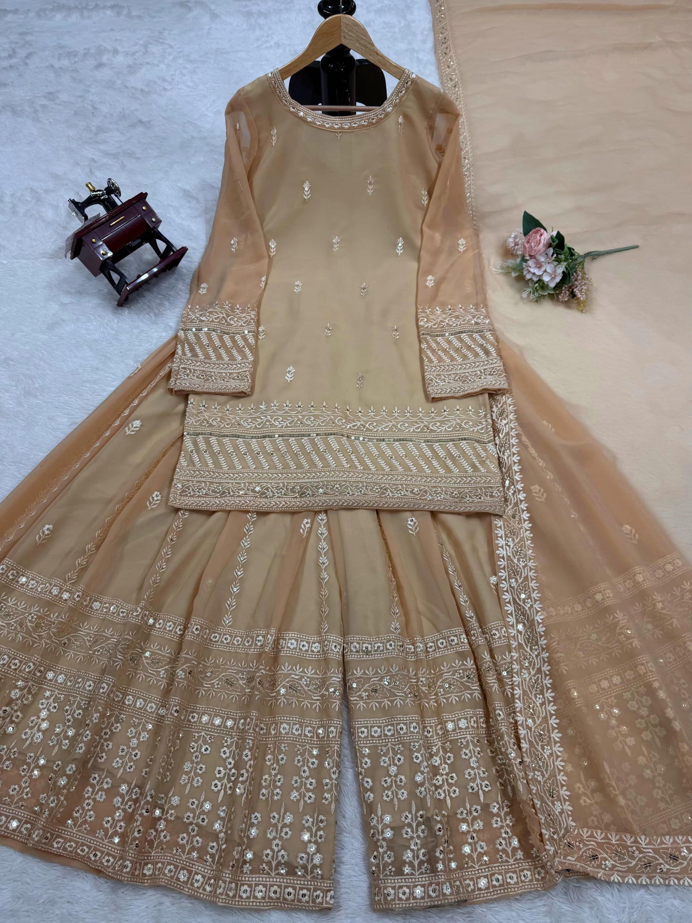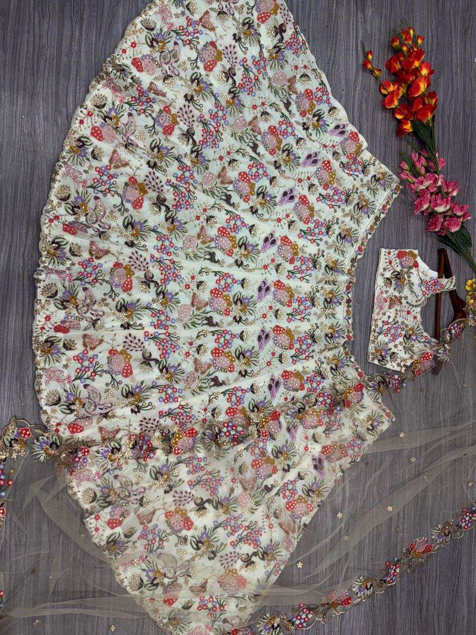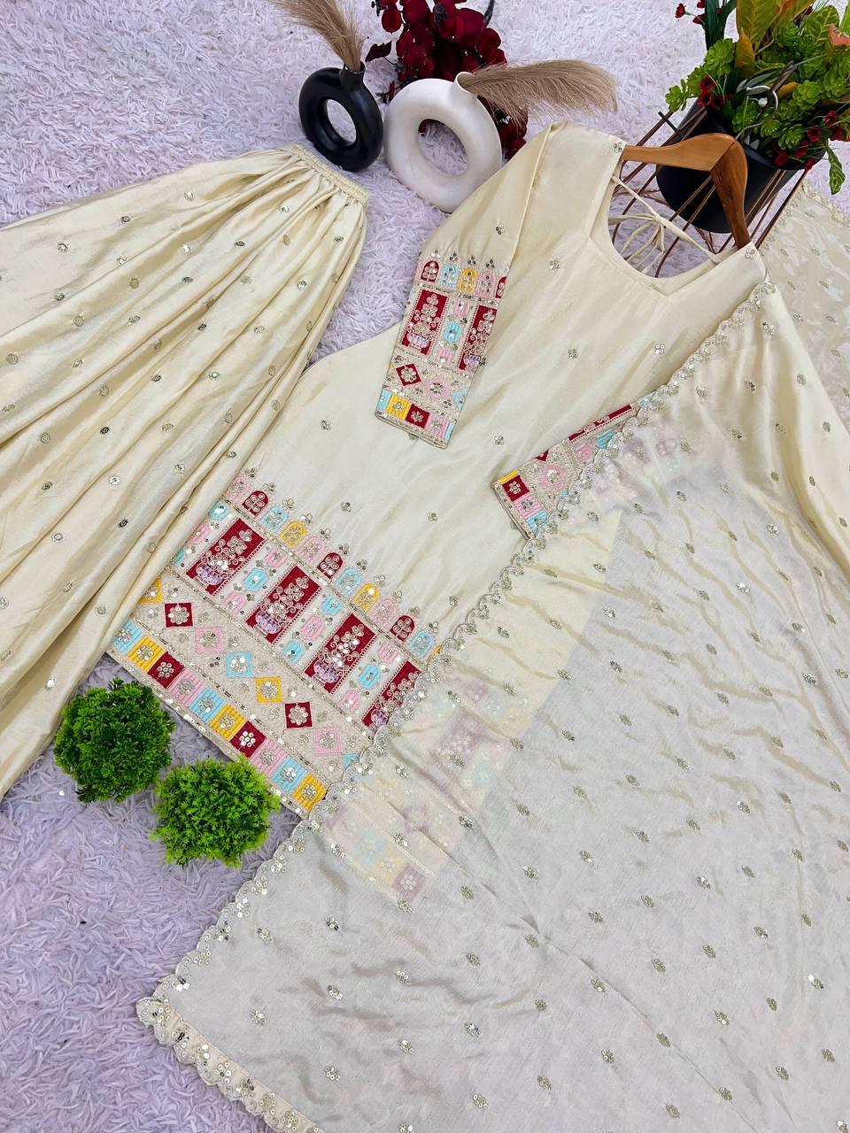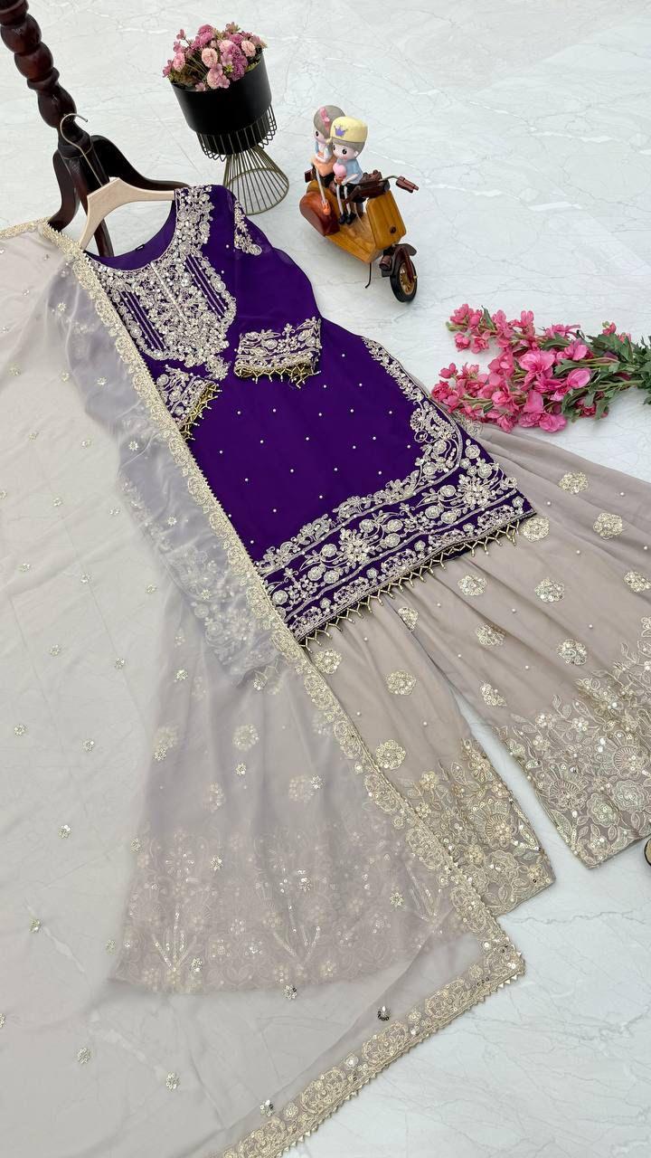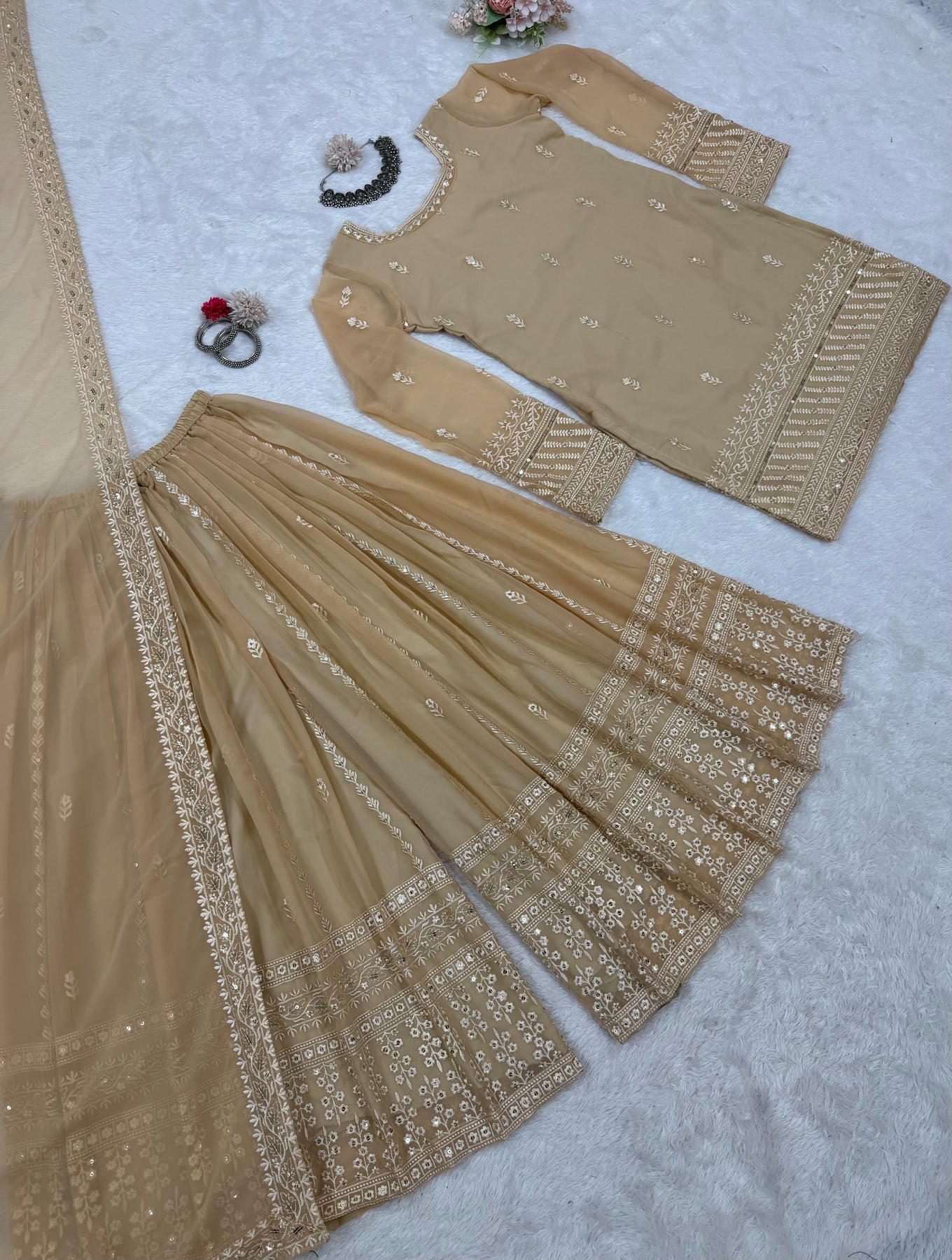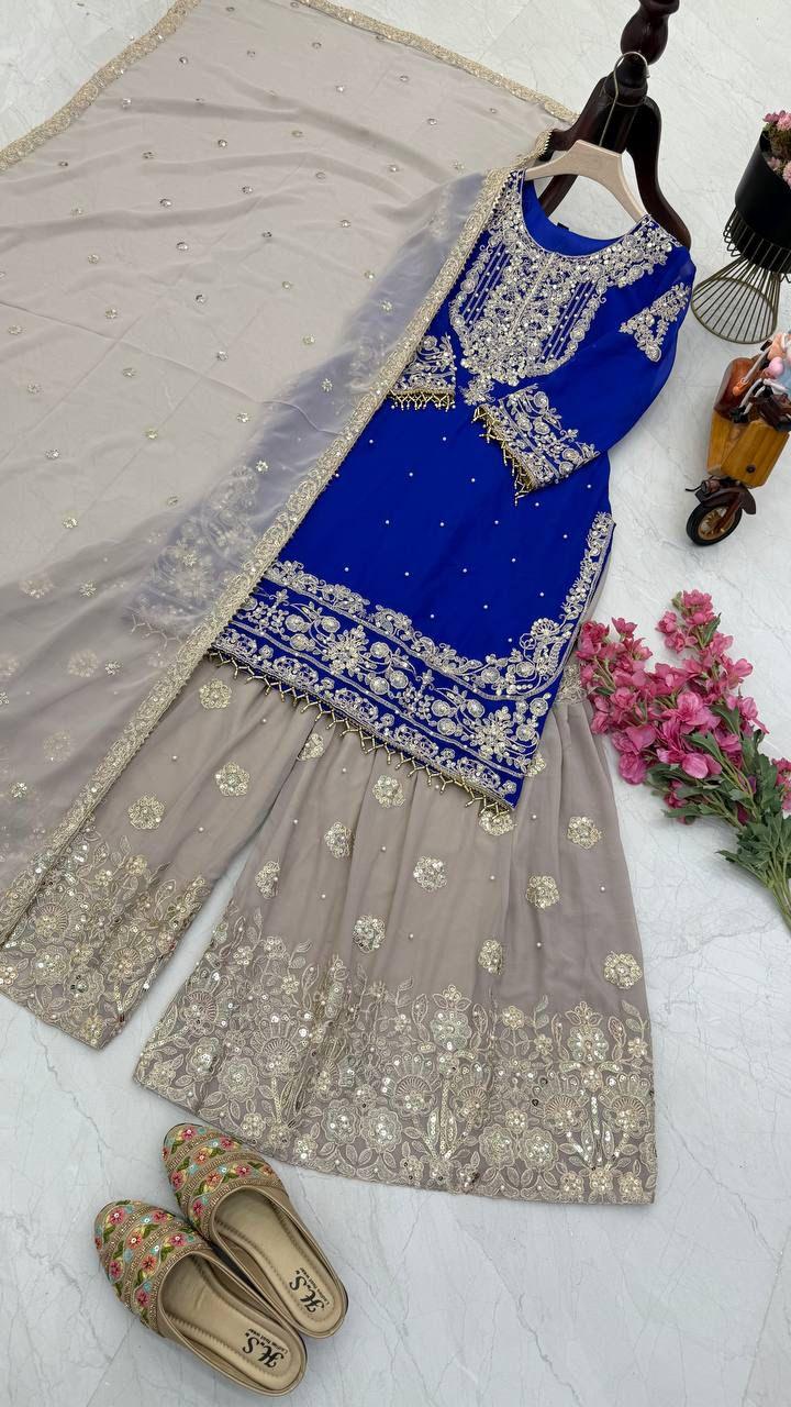 | Fabric | Heavy Faux Georgette With Embroidery Sequence Work *(Full stitched)* |