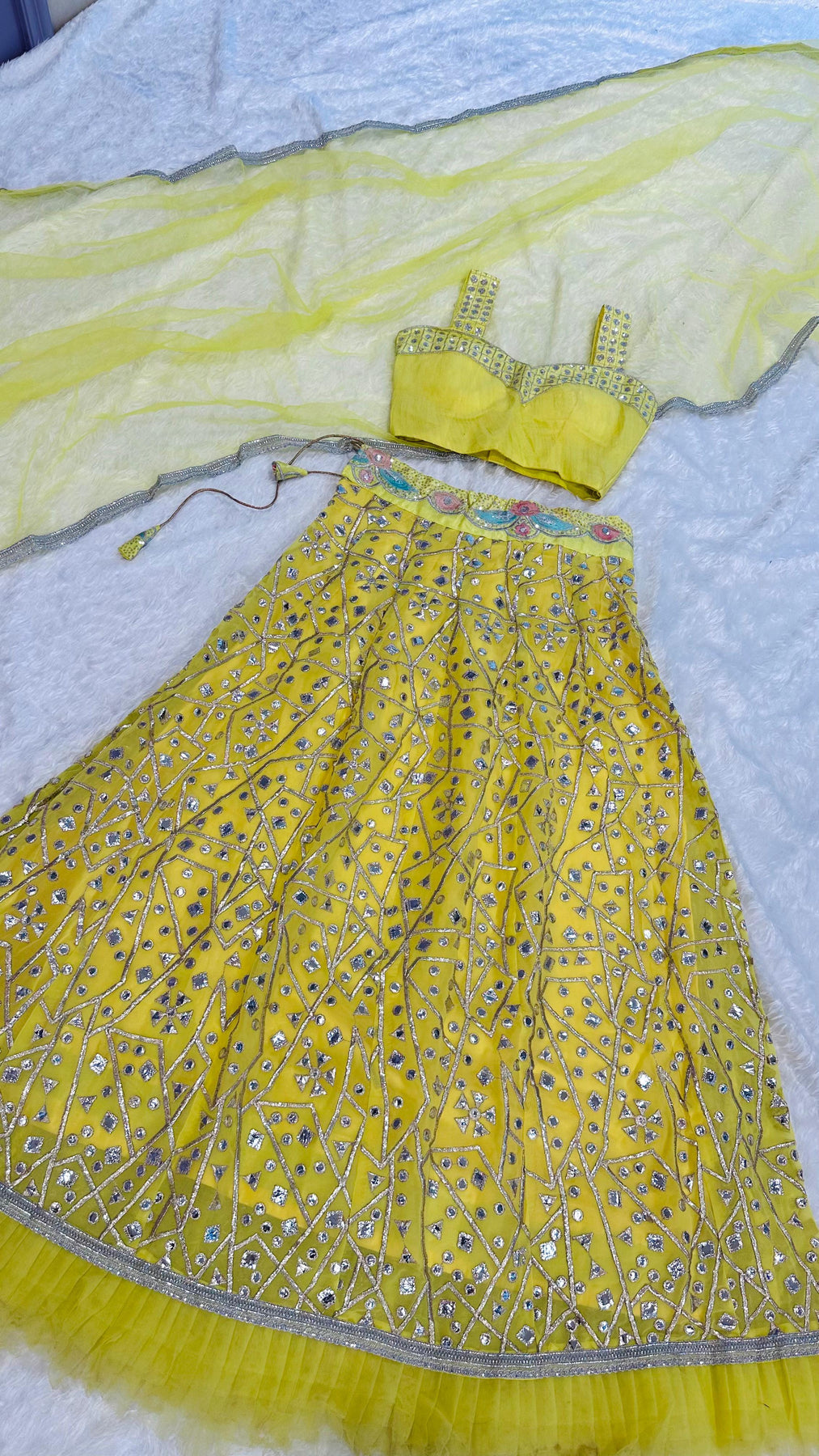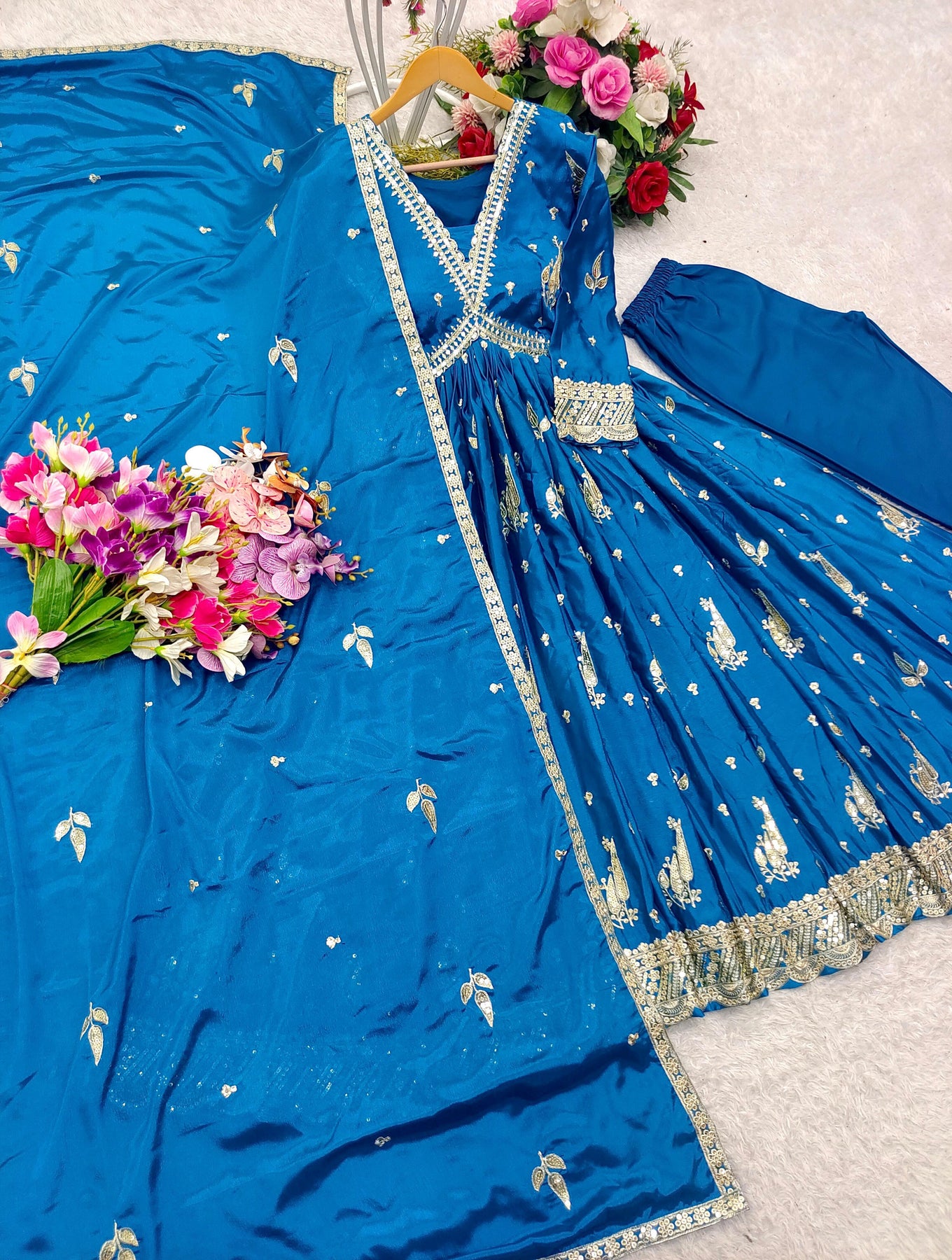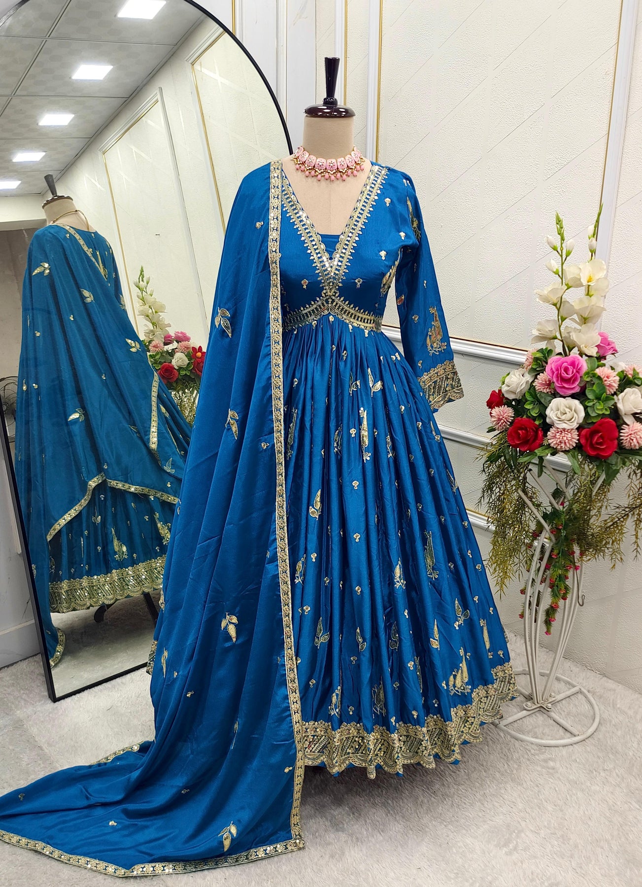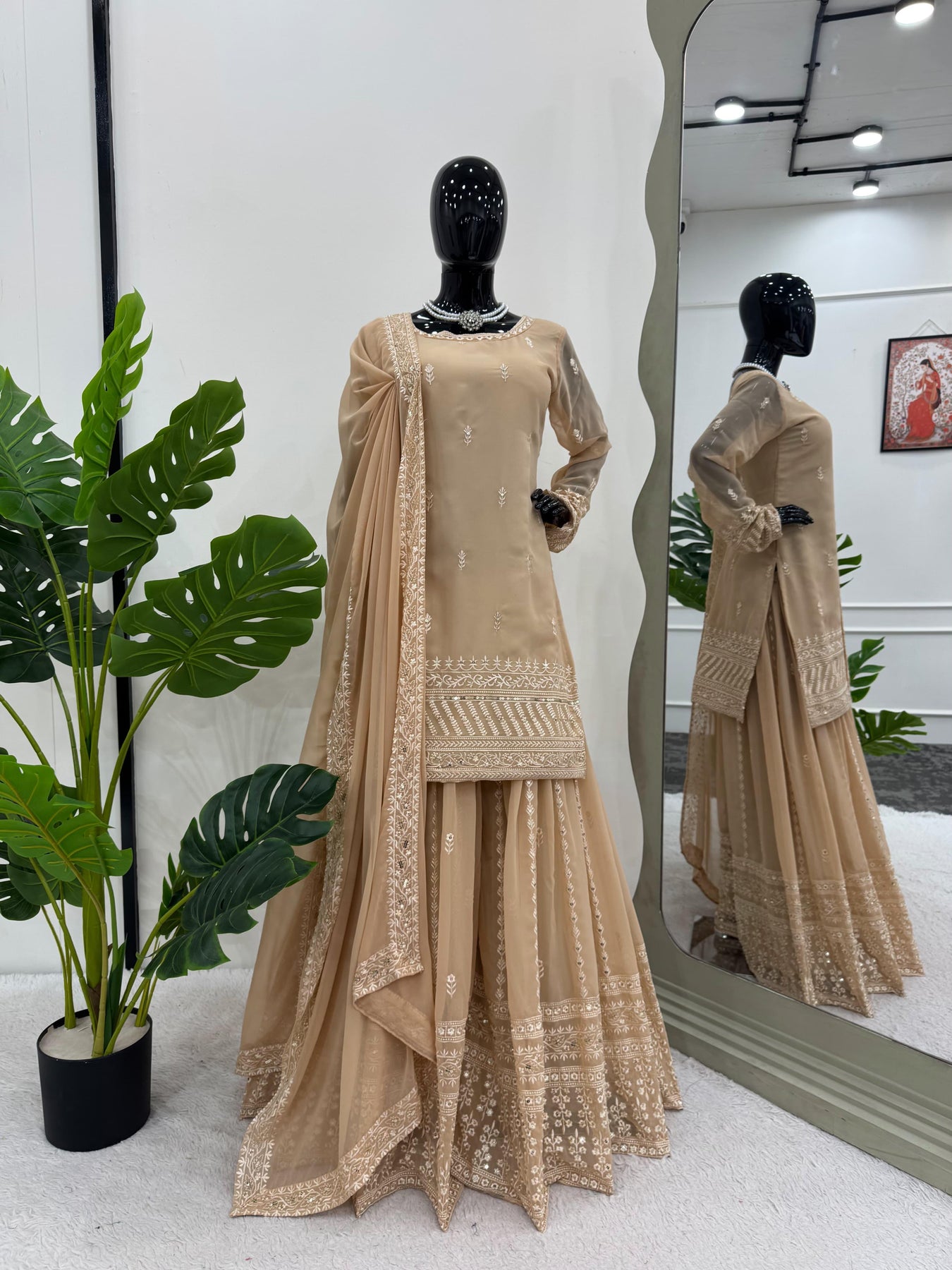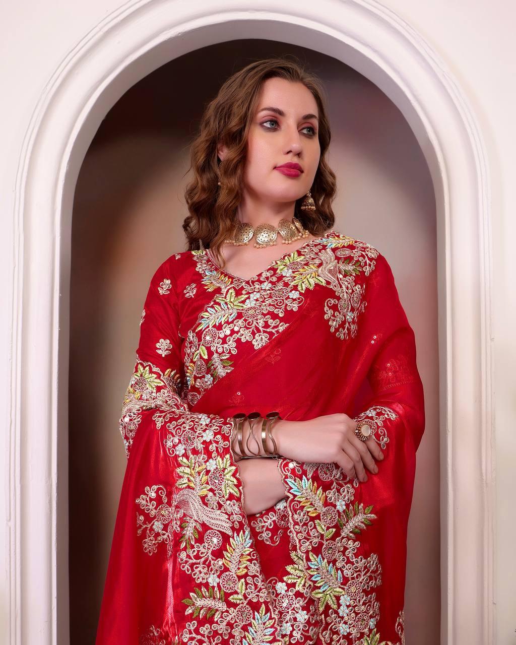 | Fabric | Heavy Faux Georgette With Embroidery Sequence Work *(Full stitched)* |
