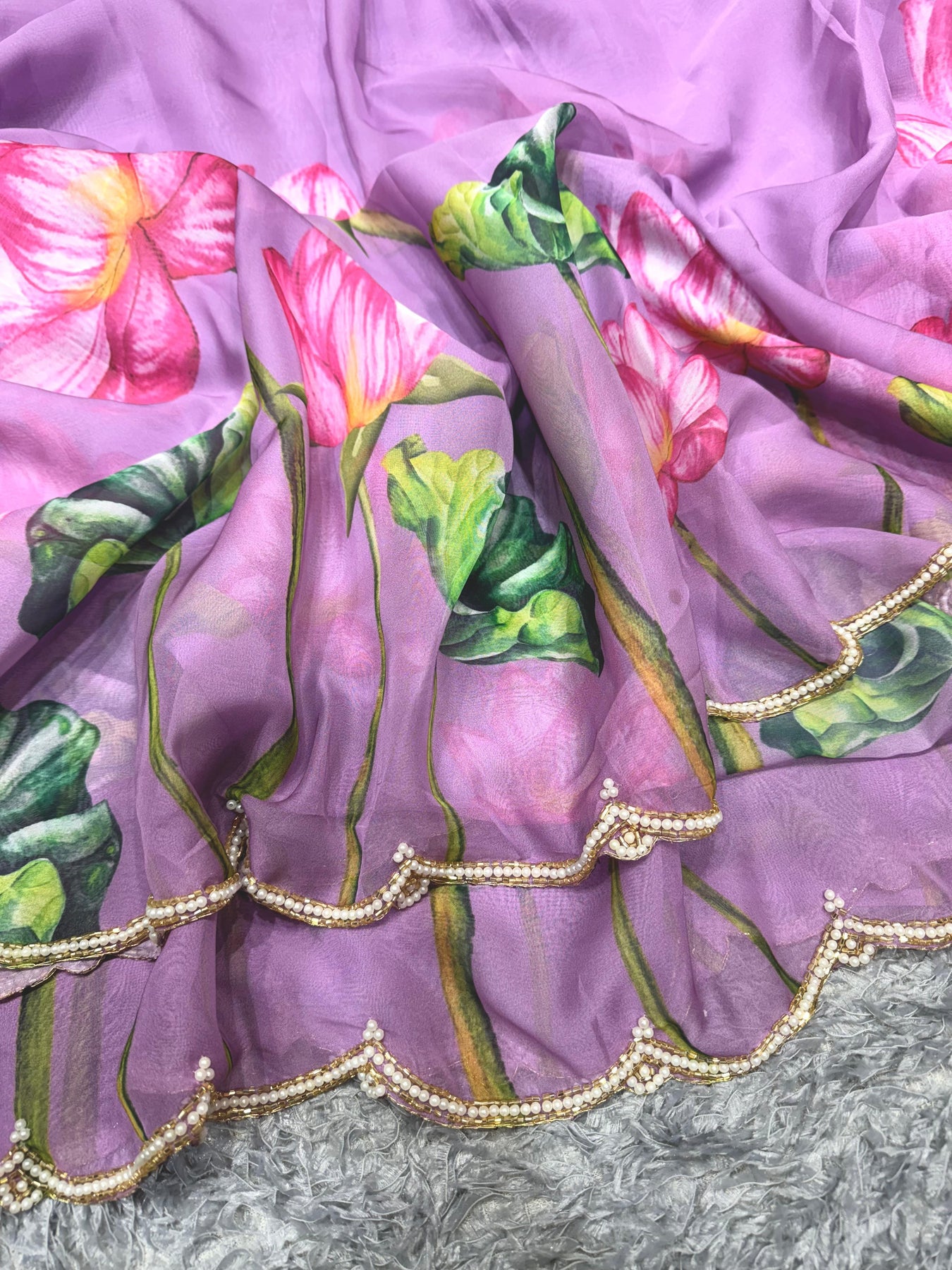 | Saree Work | Beautiful sequins and cording Embroidery work lace border |
