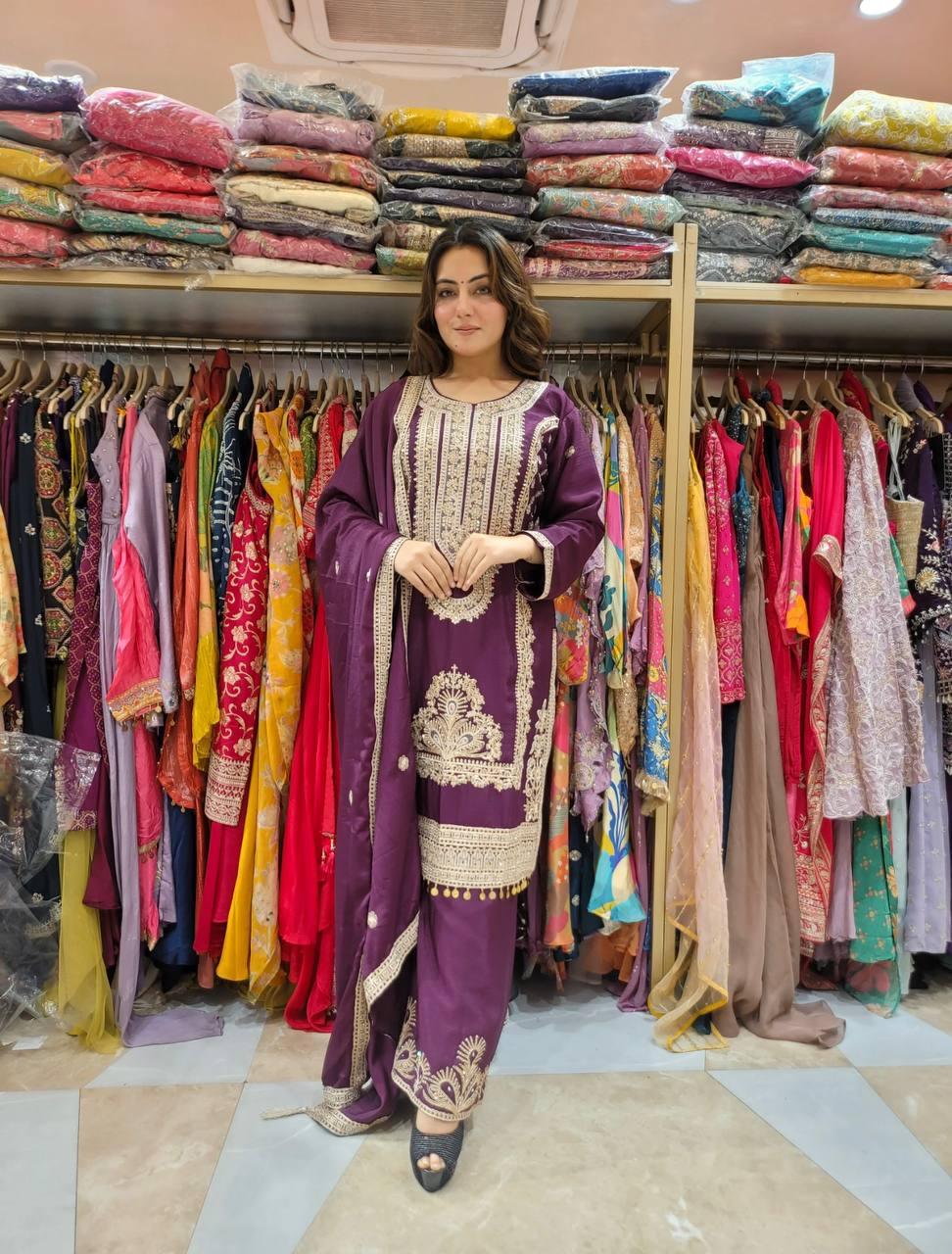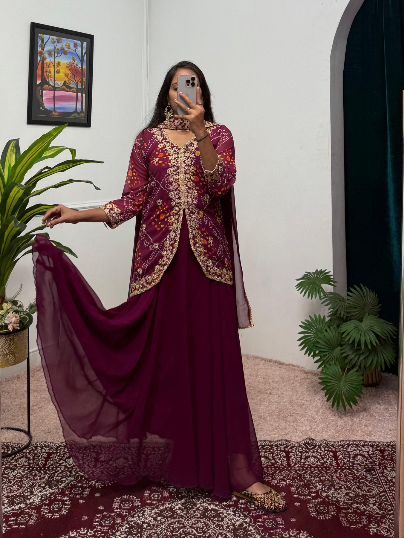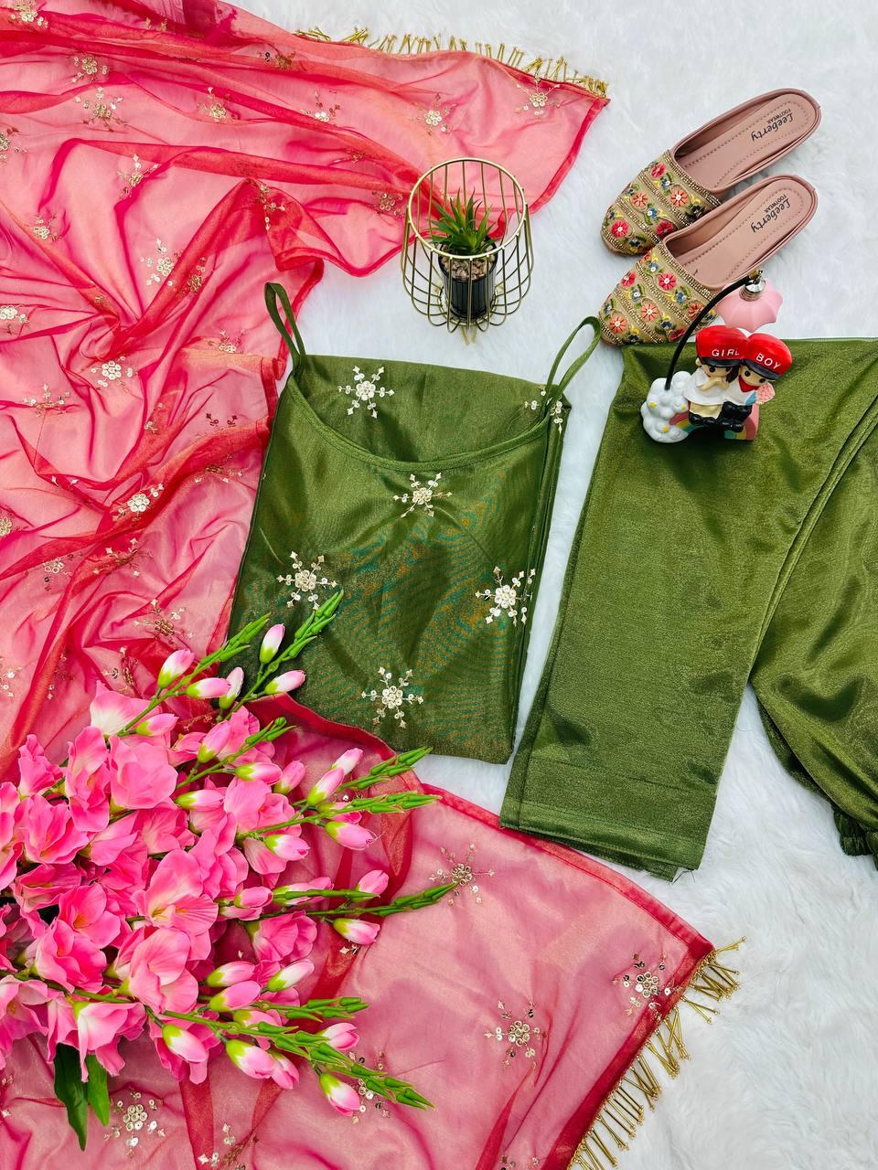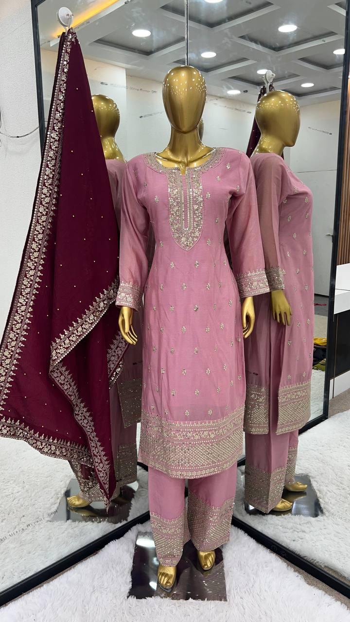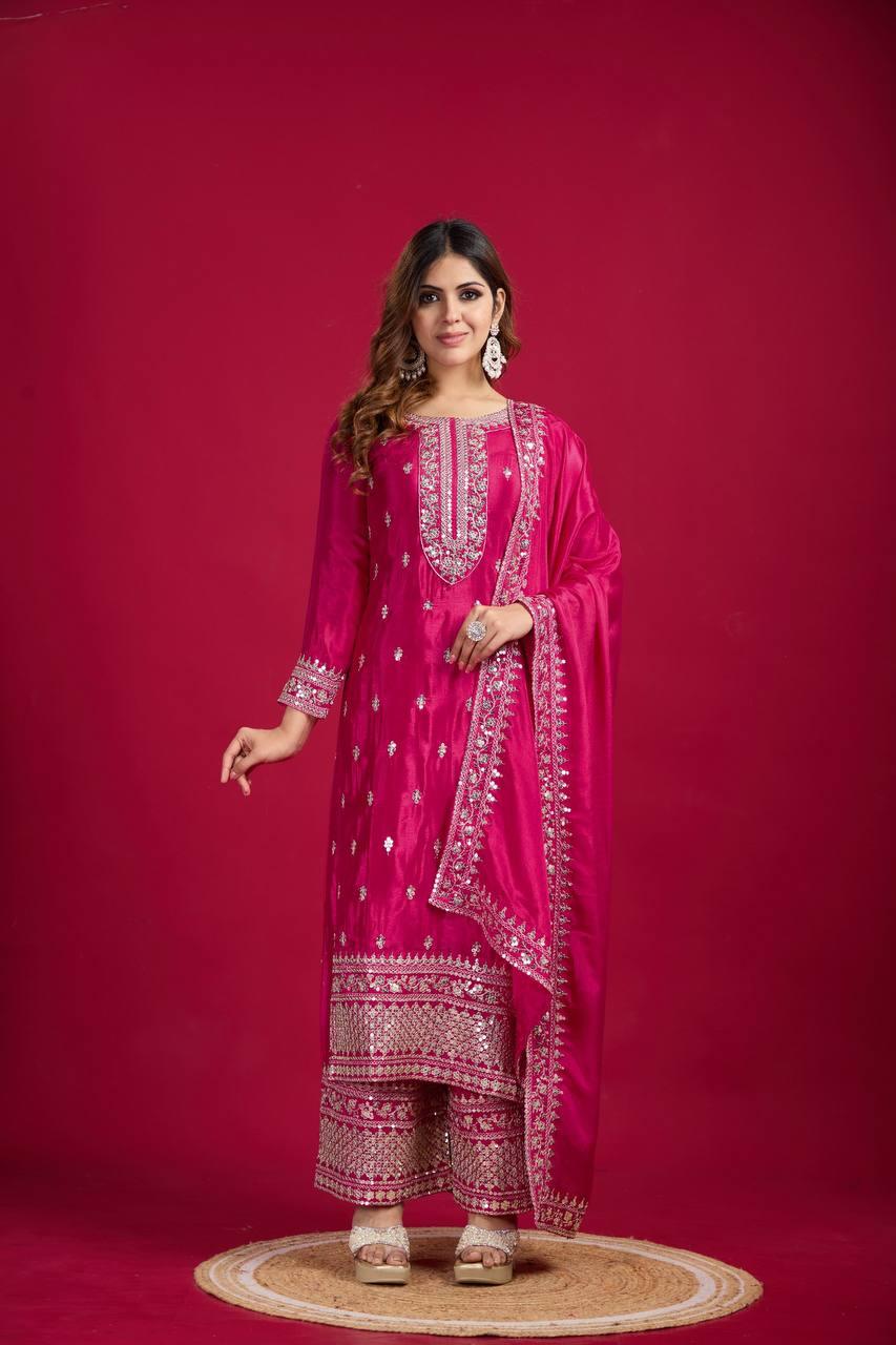Glorious Tissue Simmer Pink Color Palazzo Suit With Shrug