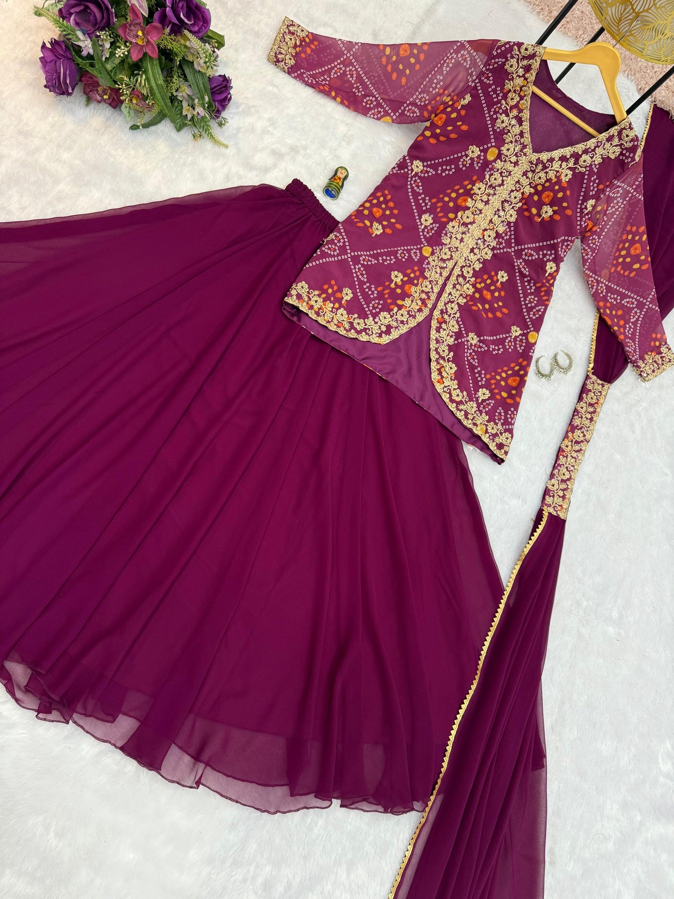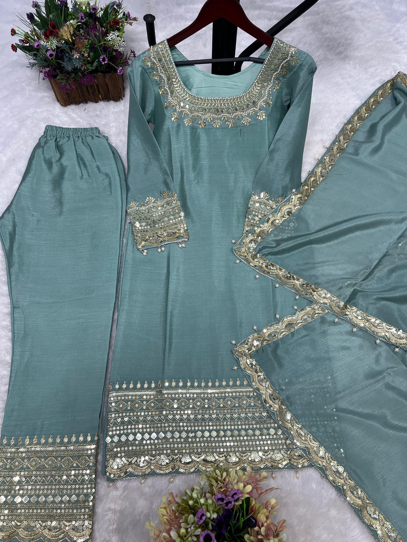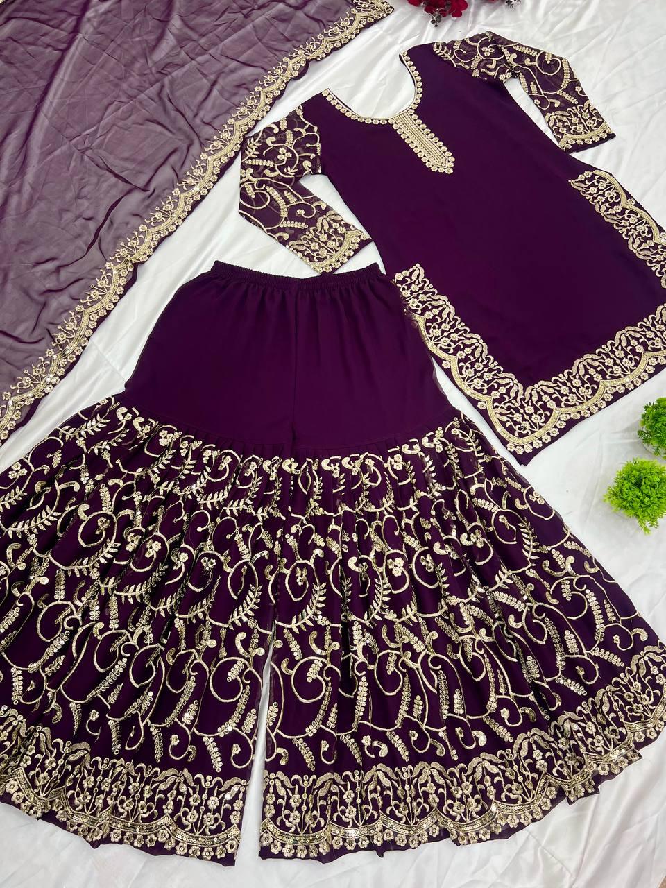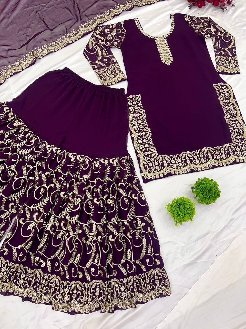 Glorious Tissue Simmer Pink Color Palazzo Suit With Shrug