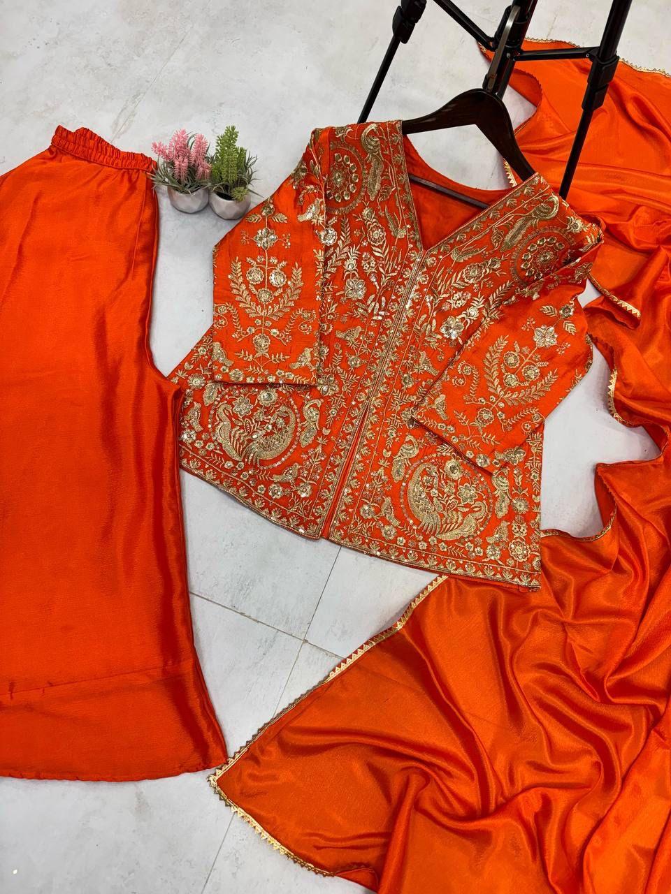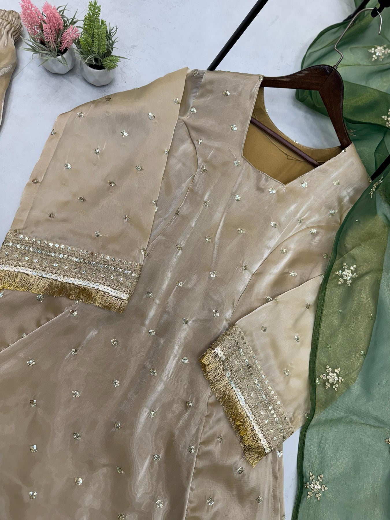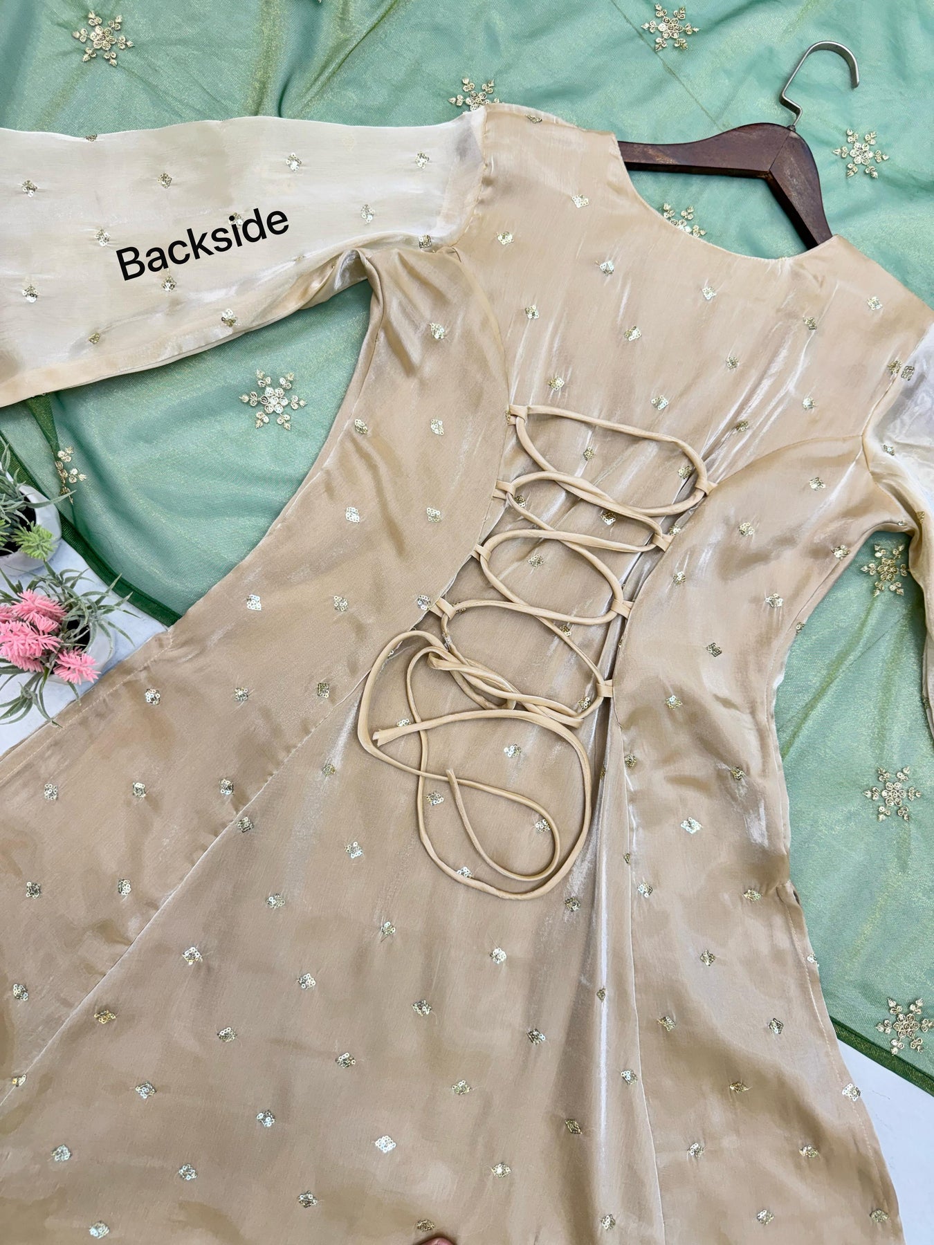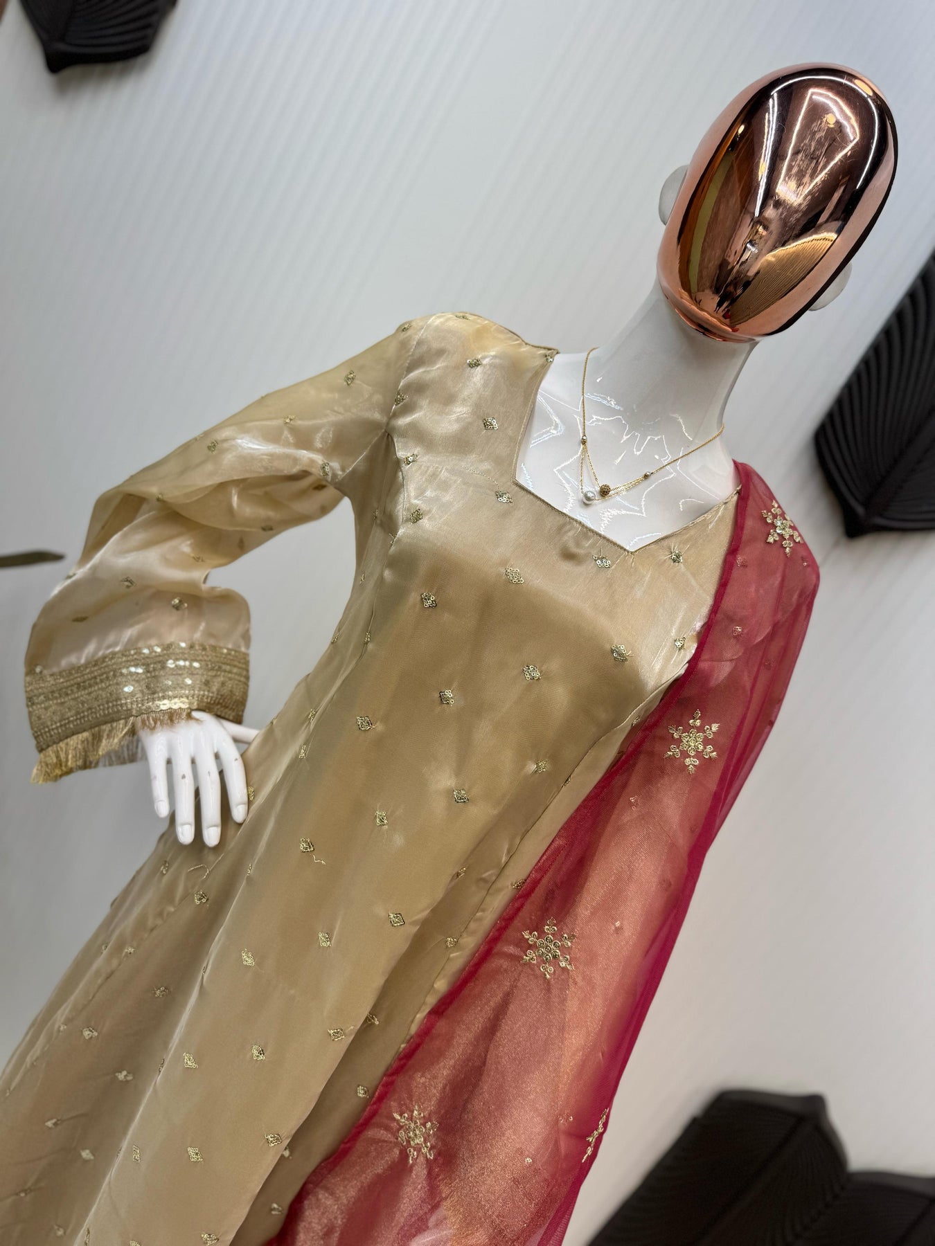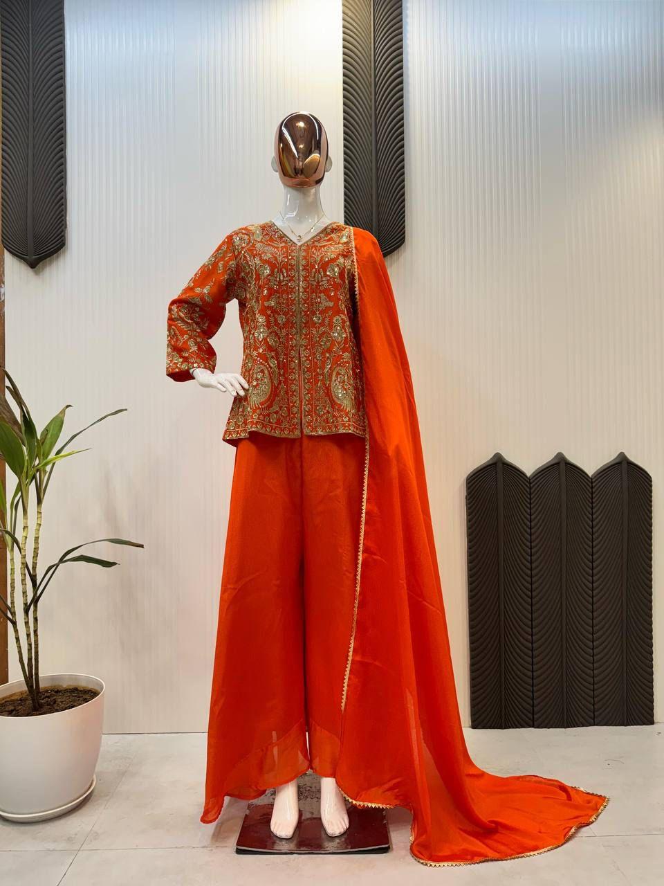# Sharara:. Chinon Print With Sequence Embroidery Work