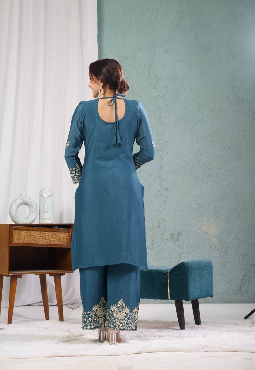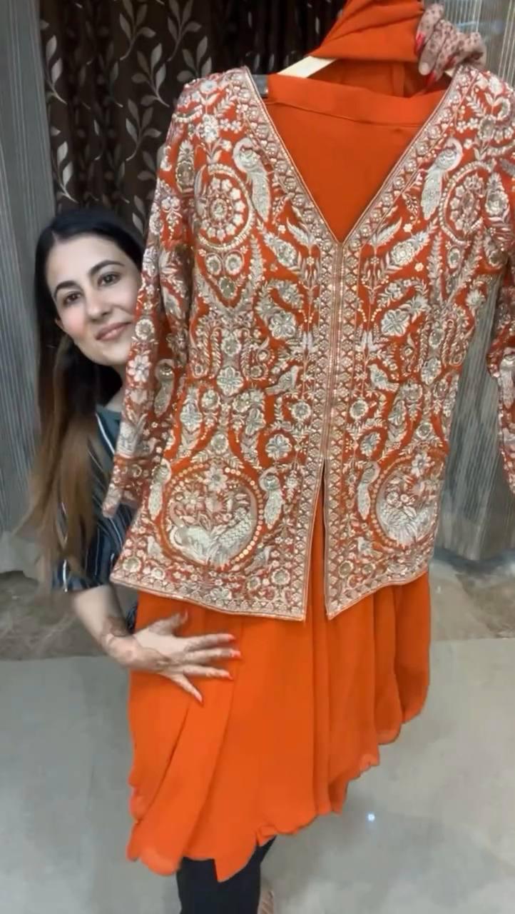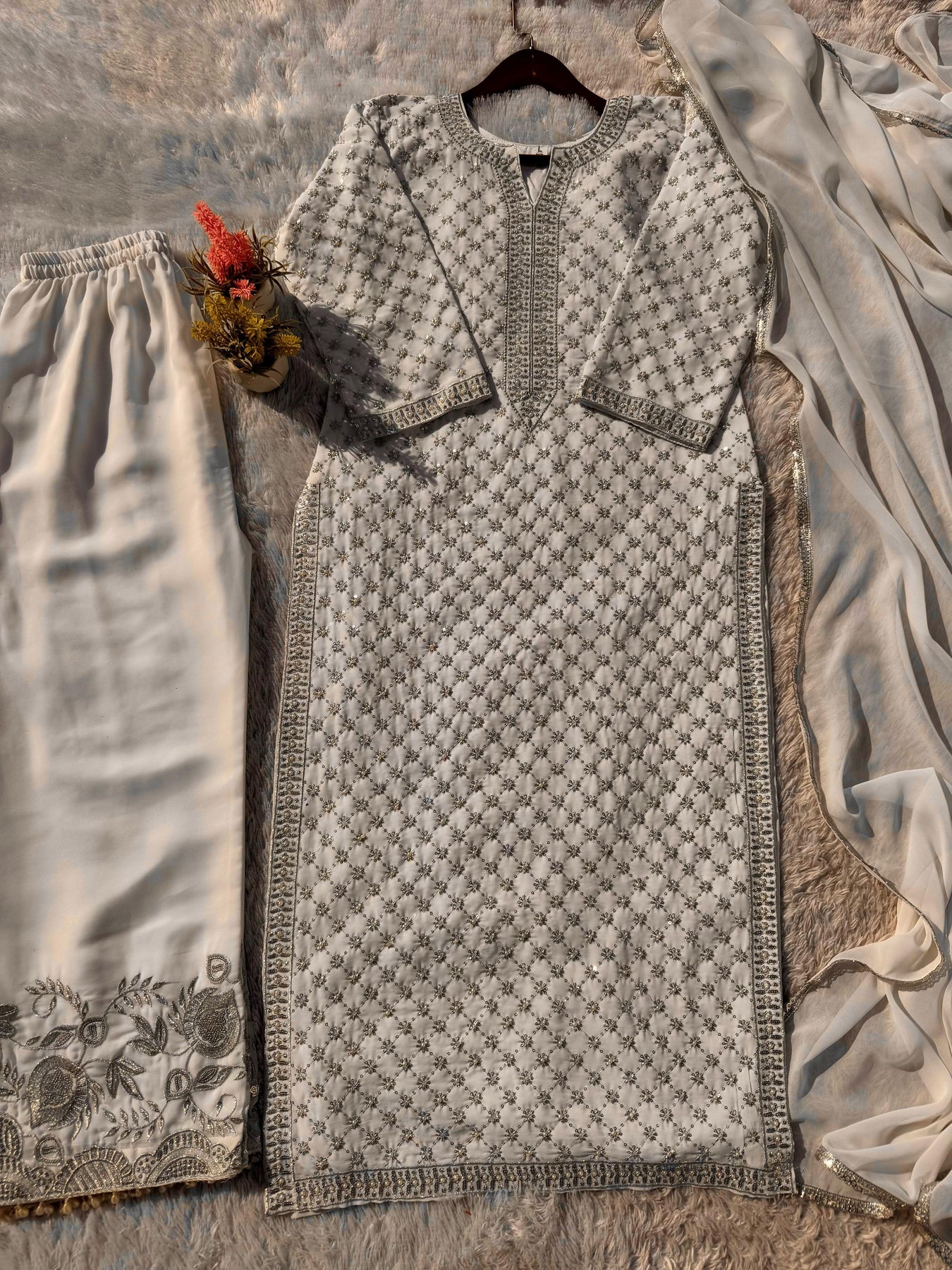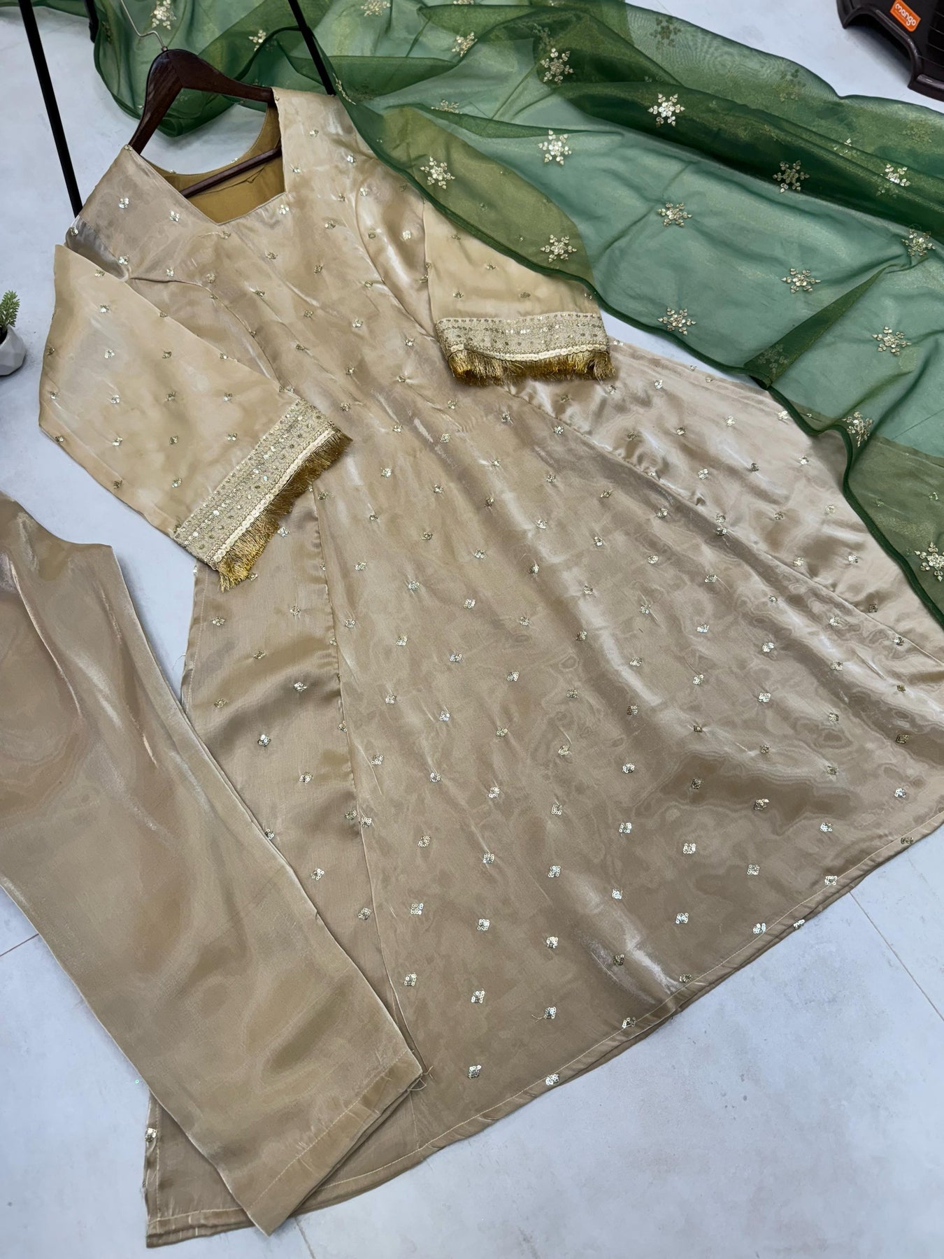 # Sharara:. Chinon Print With Sequence Embroidery Work