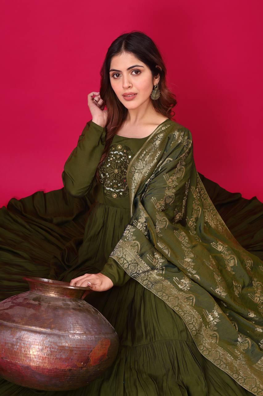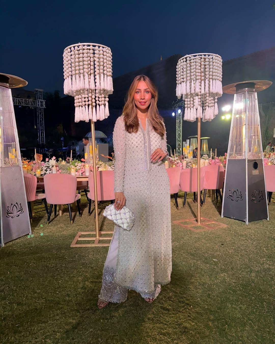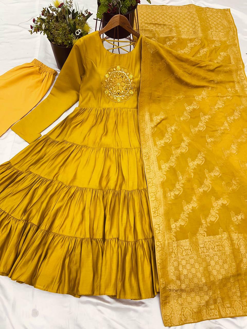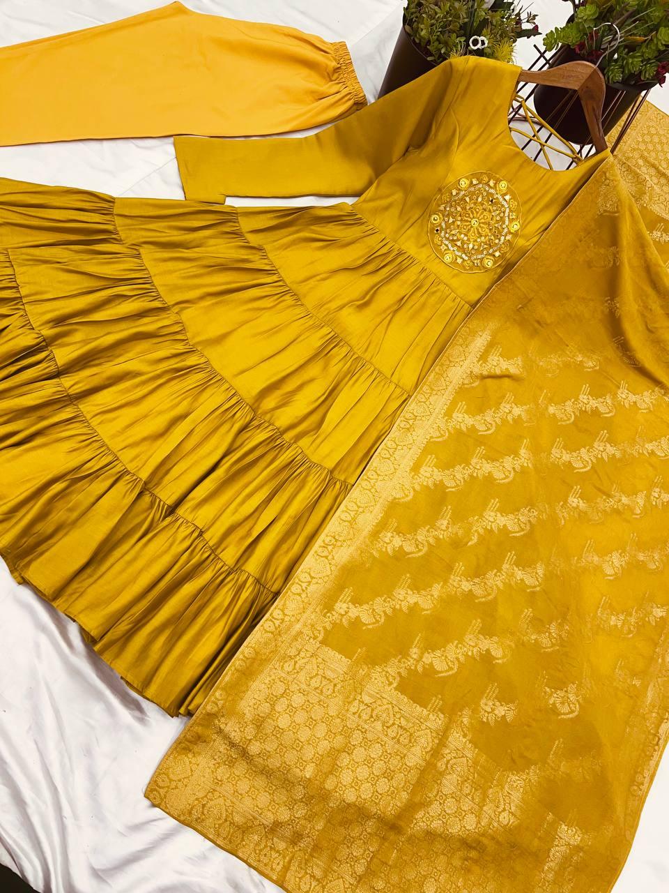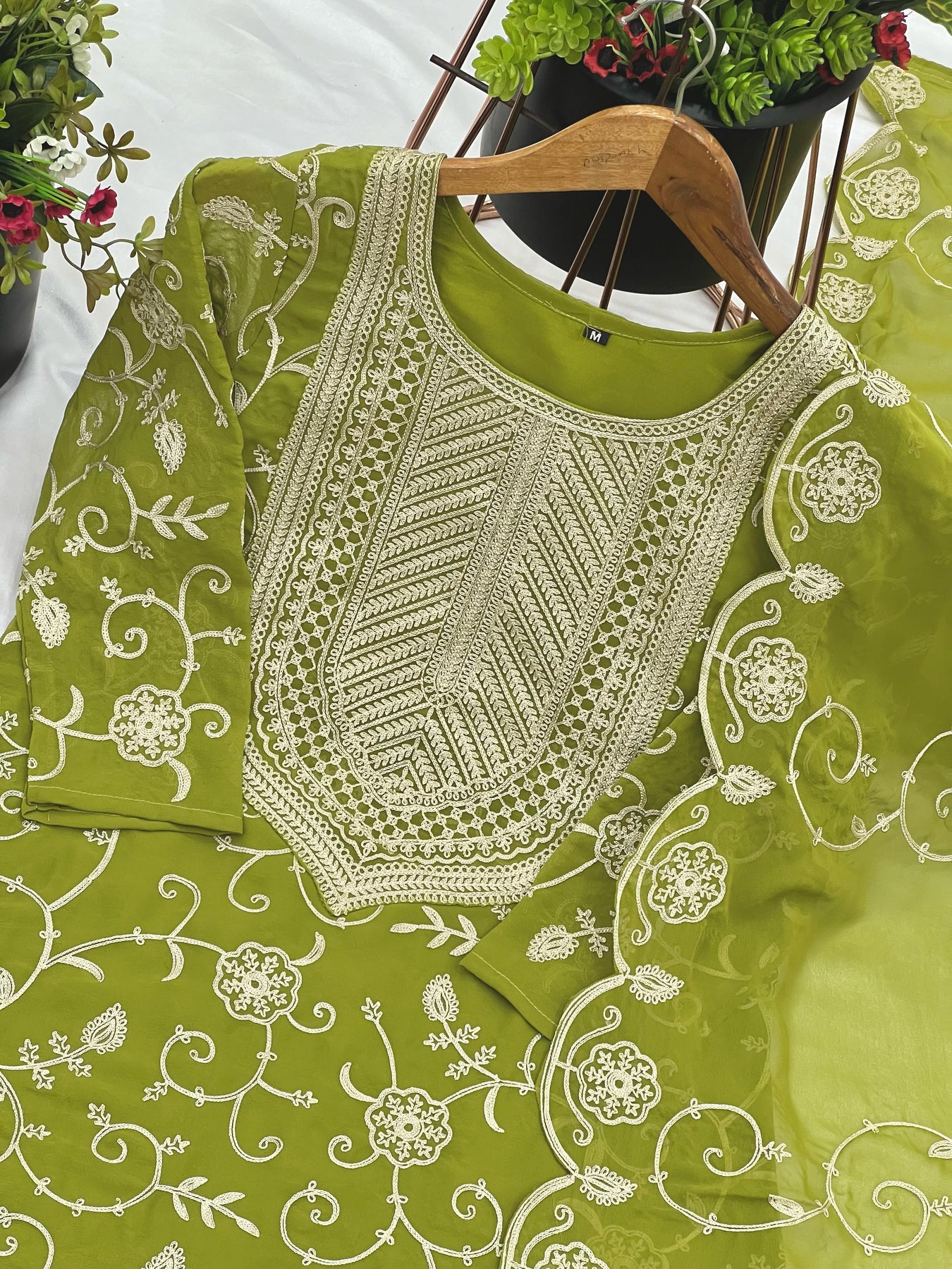 # Sharara:. Chinon Print With Sequence Embroidery Work