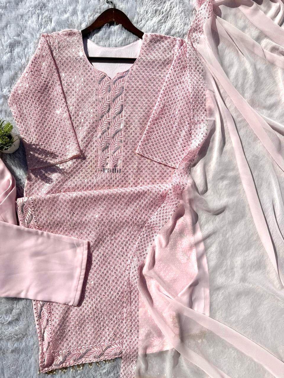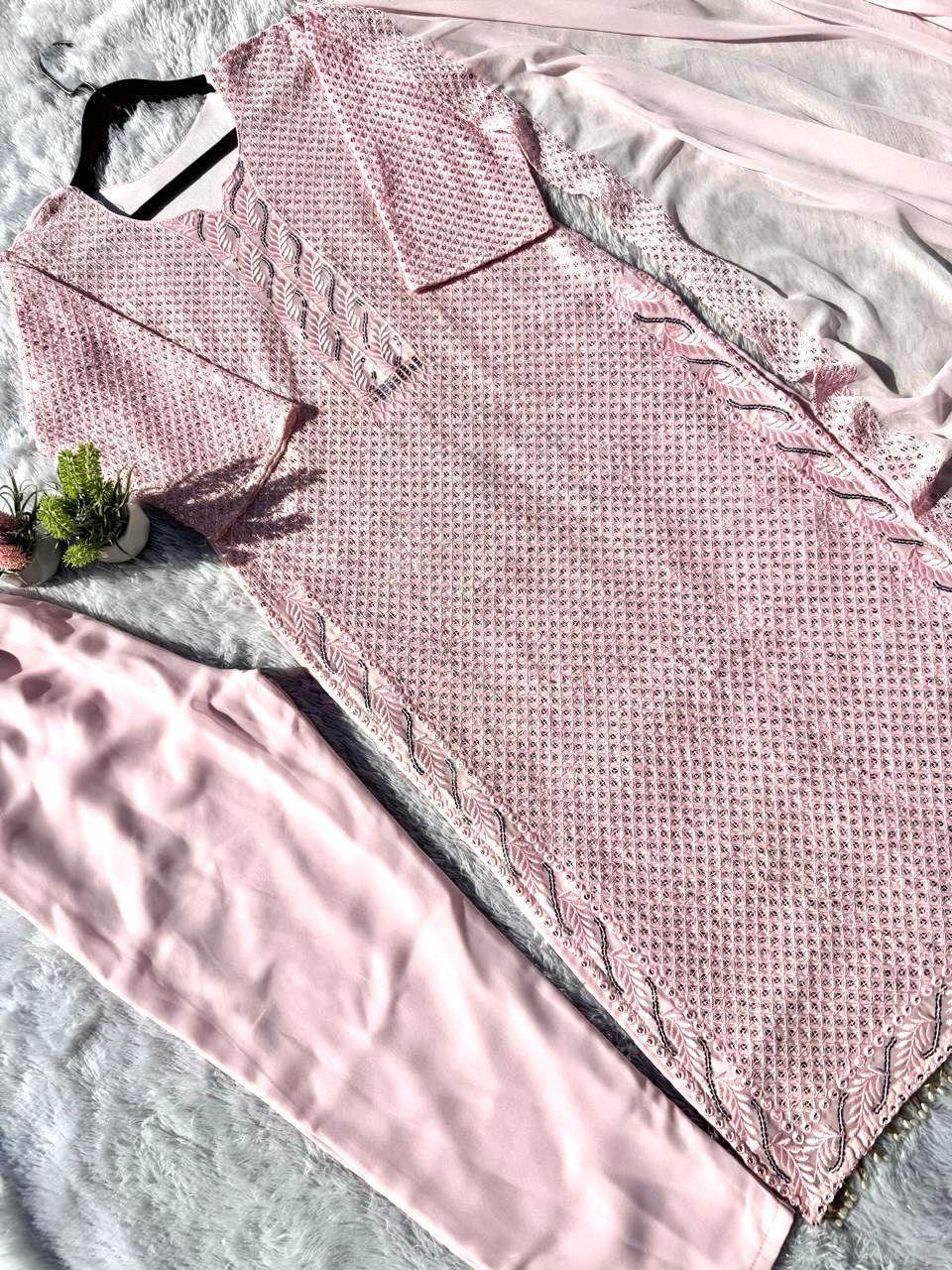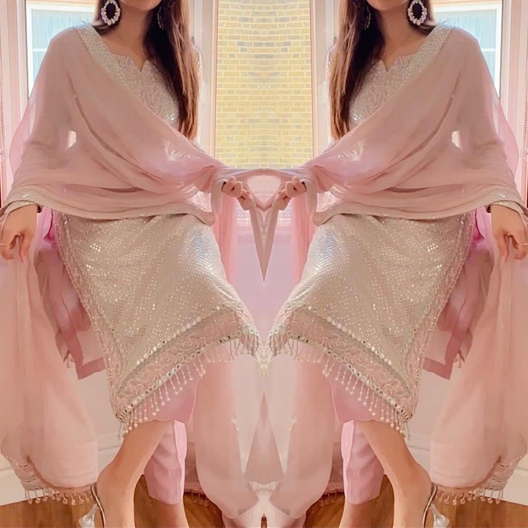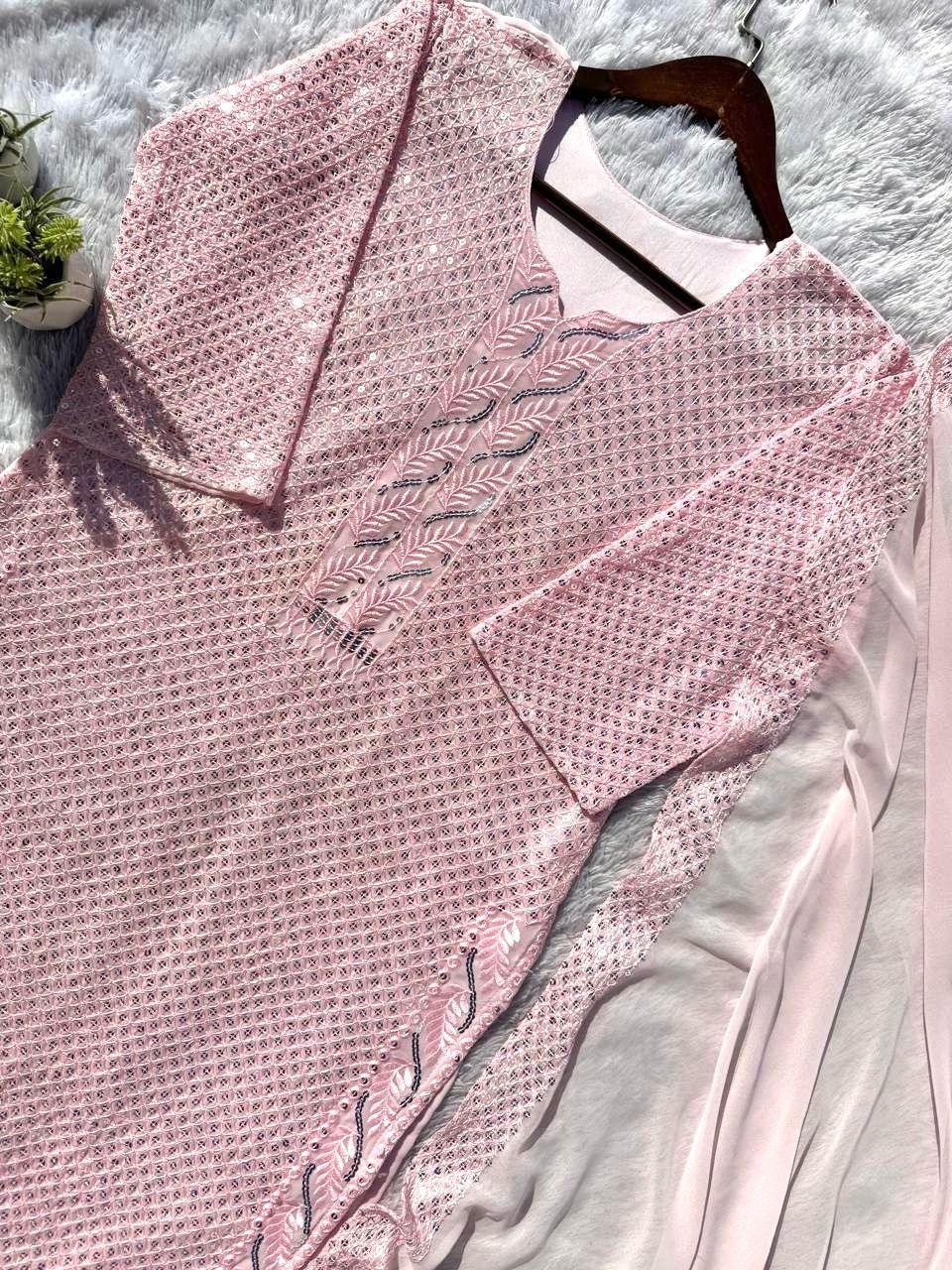 Delightful Embroidery Work Multi Pink Color Sharara Suit