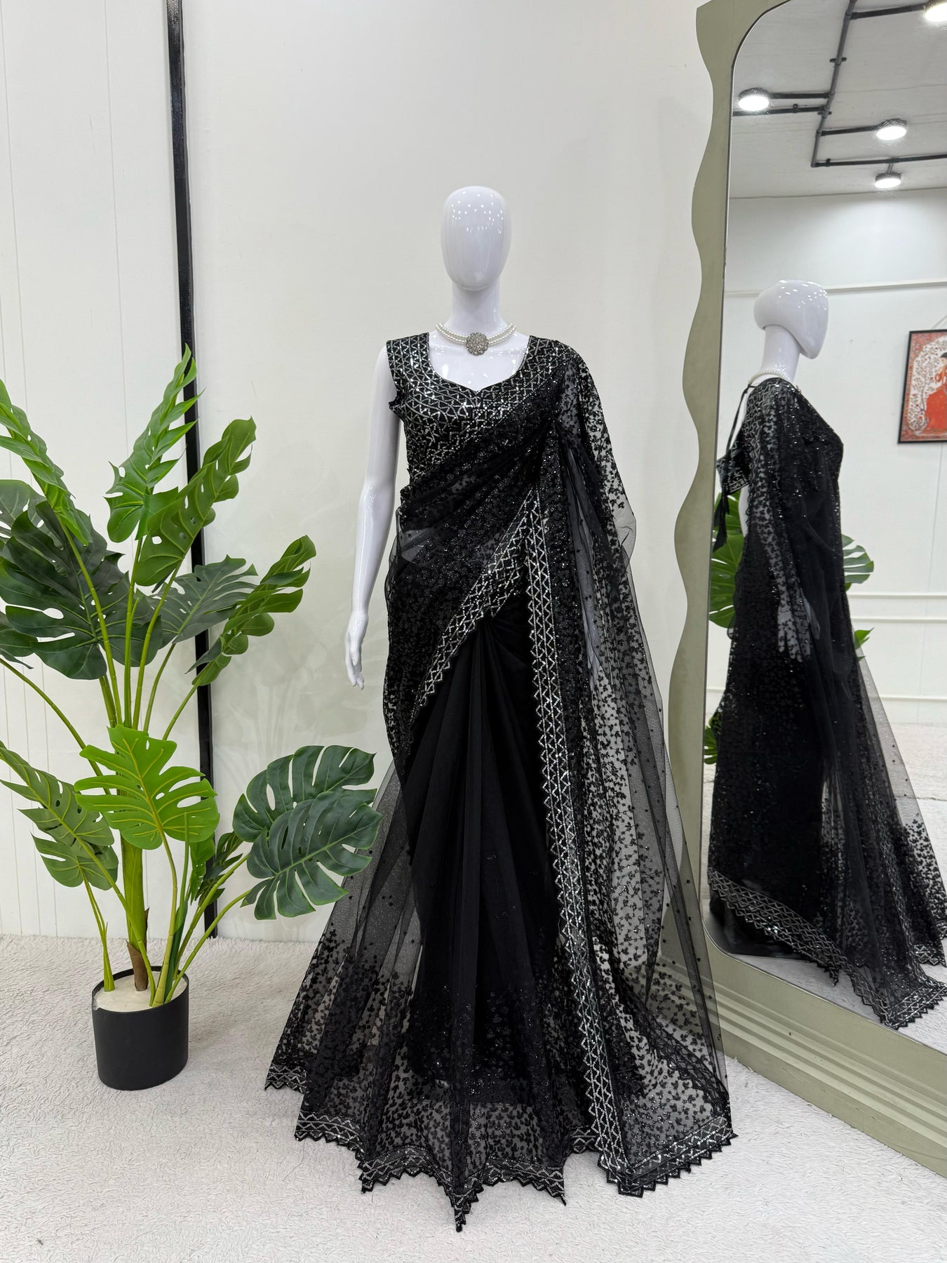 # Dupatta: Soft Net Sequence Embroidery Work With Border Lace Work