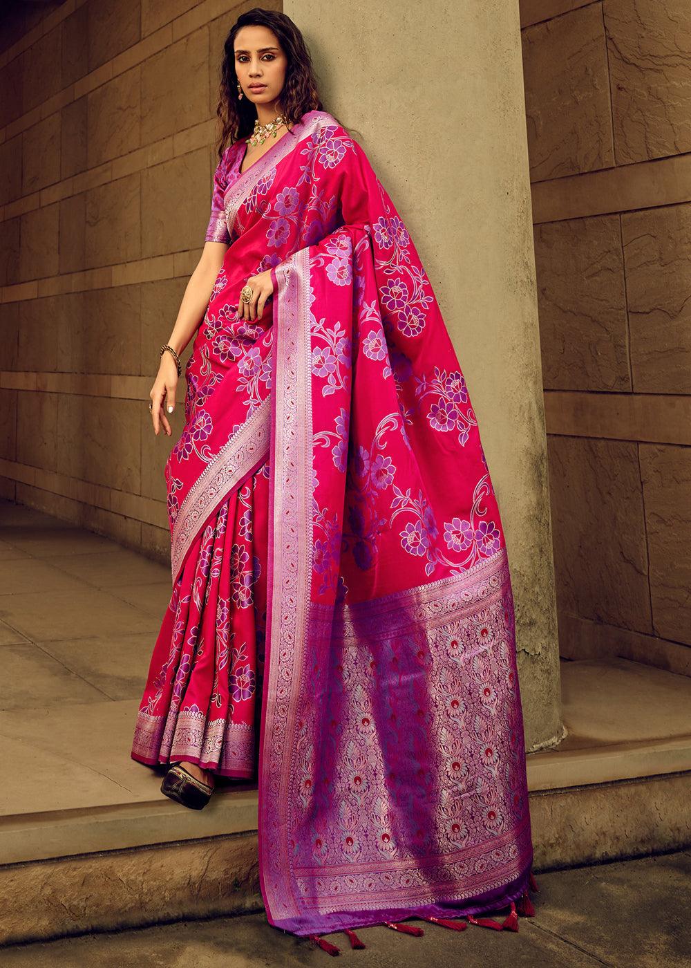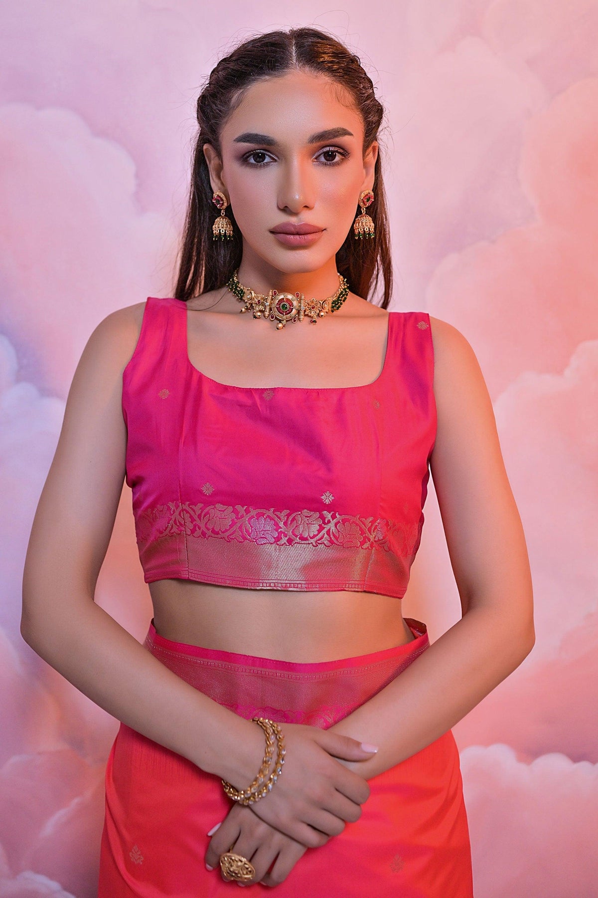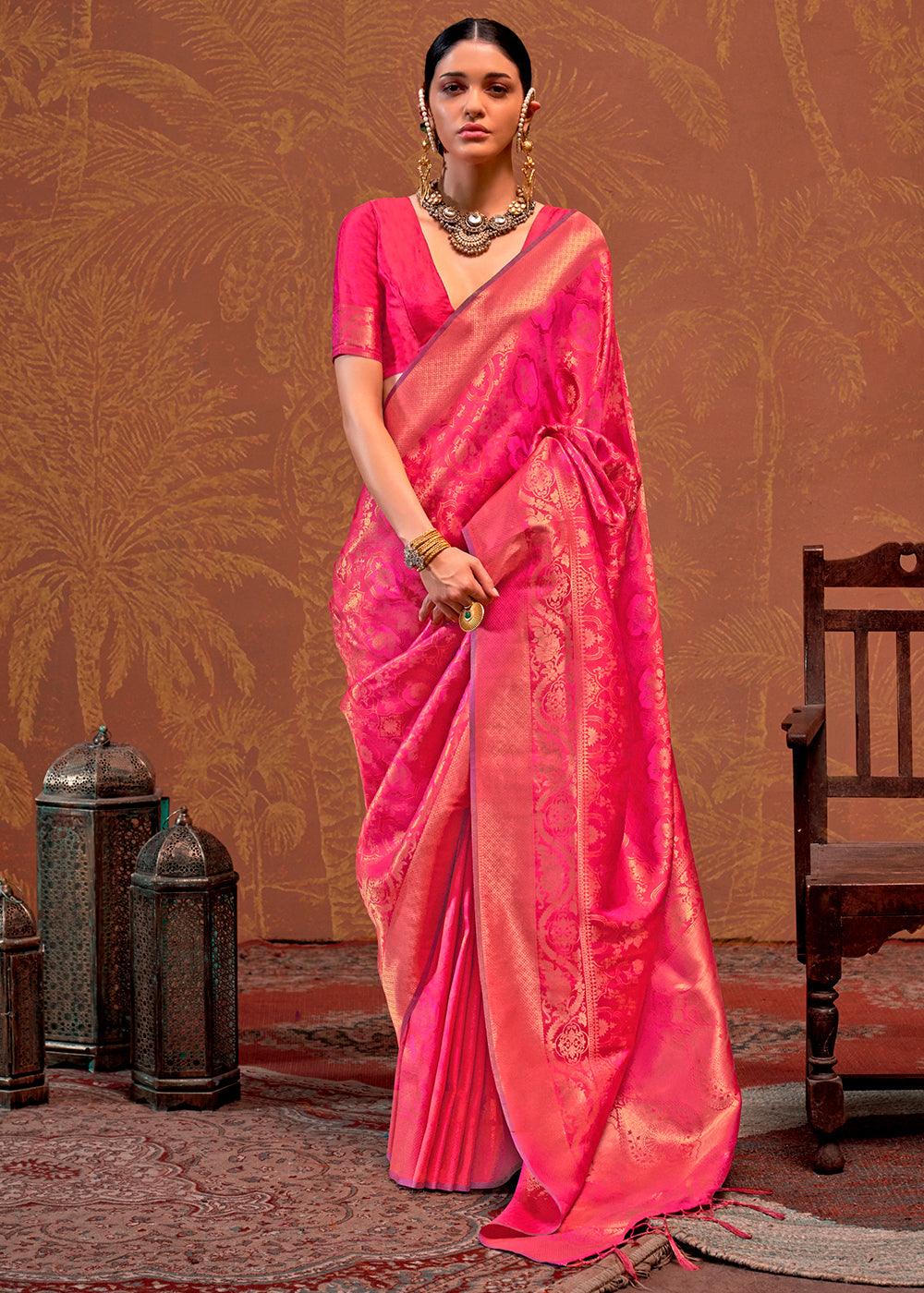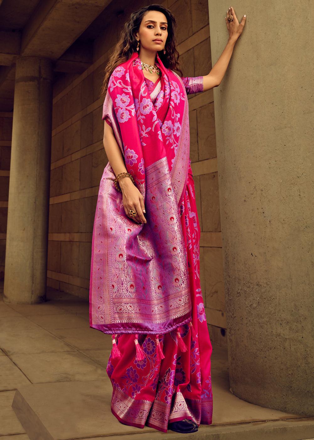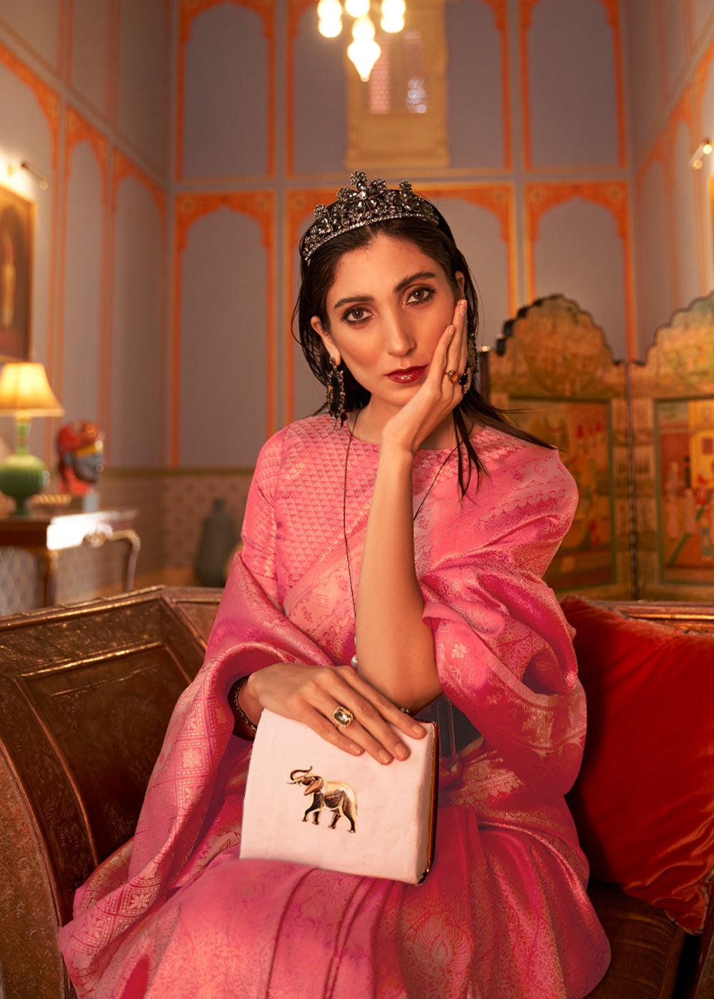Princess Pink Woven Satin Silk Banarasi Saree With Brocade Blouse