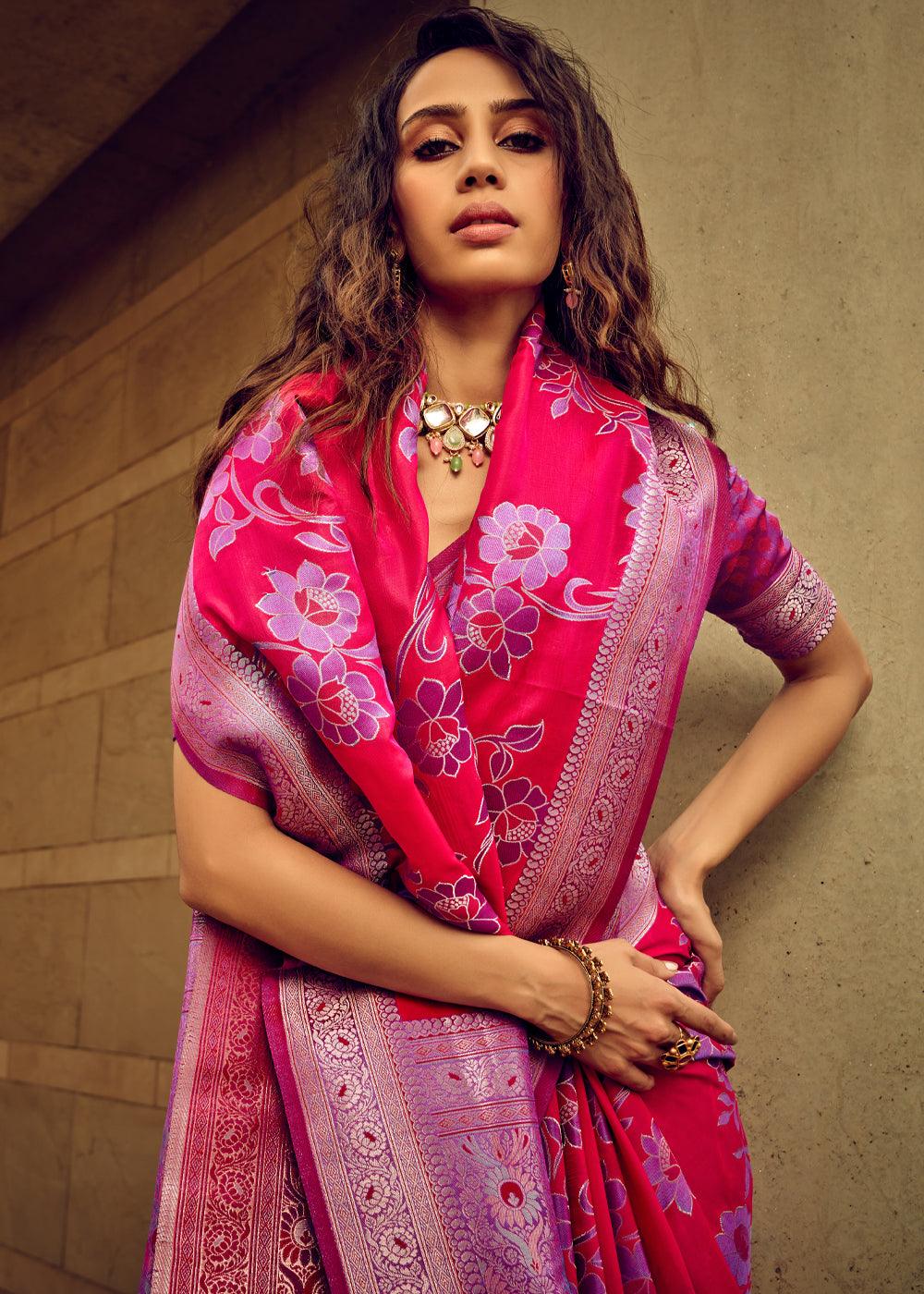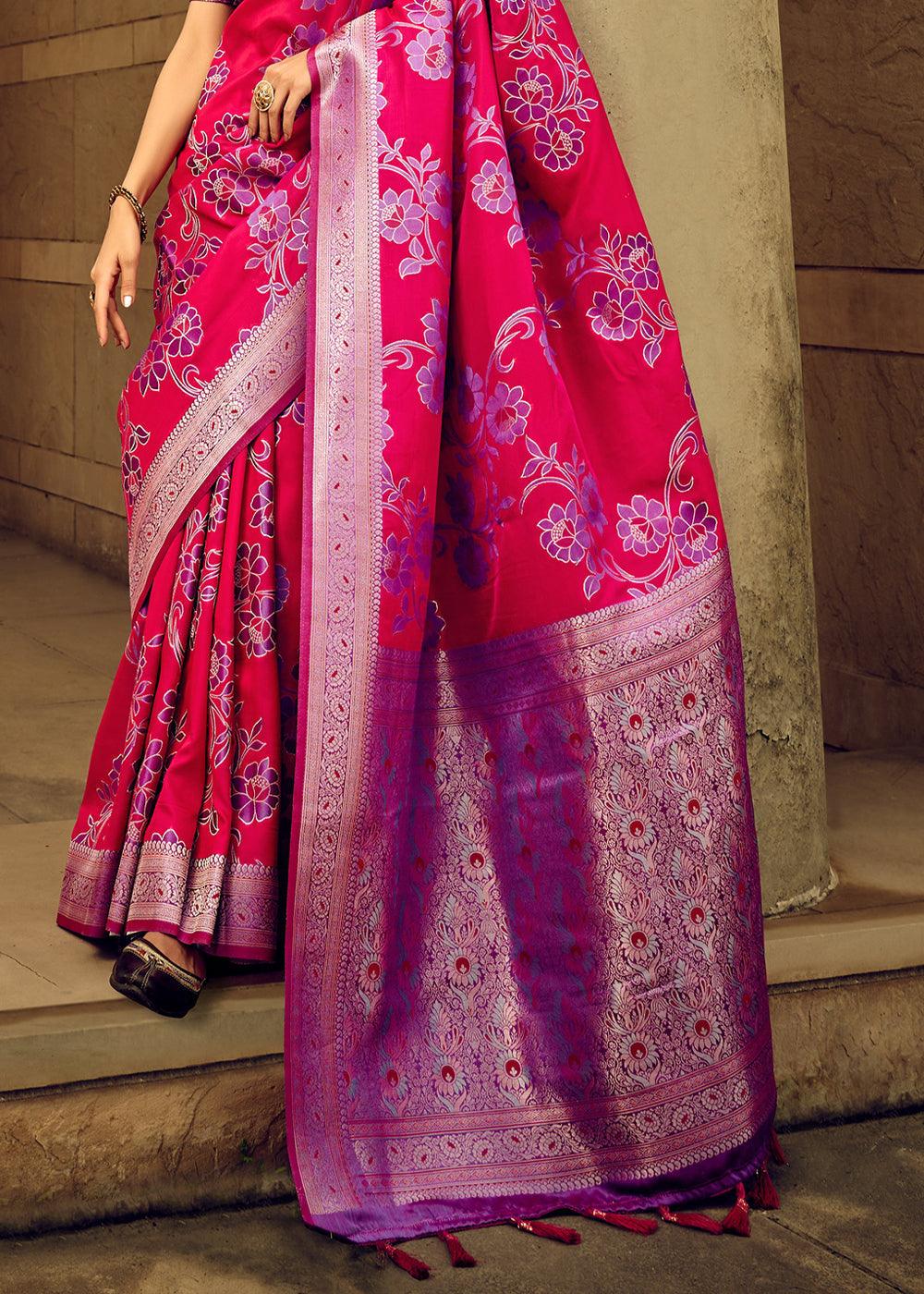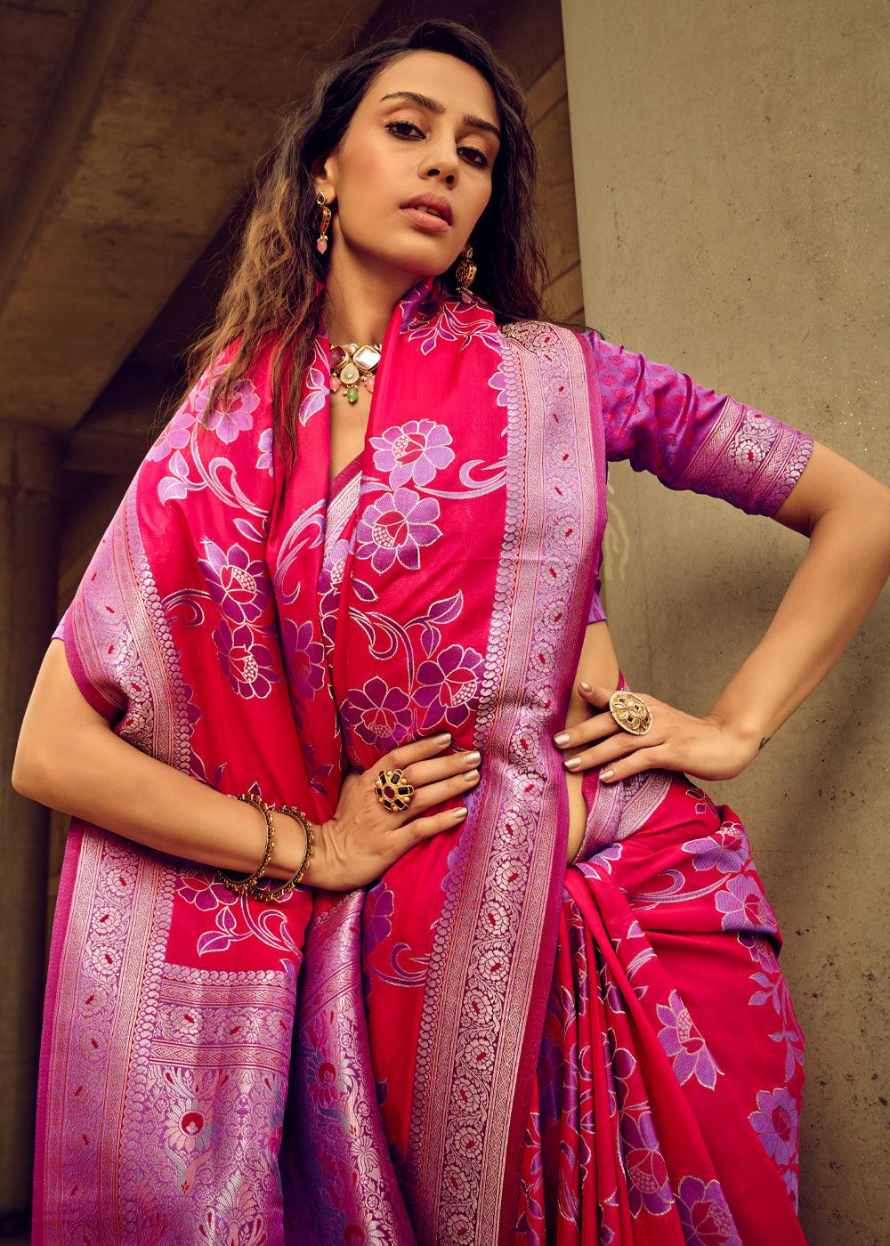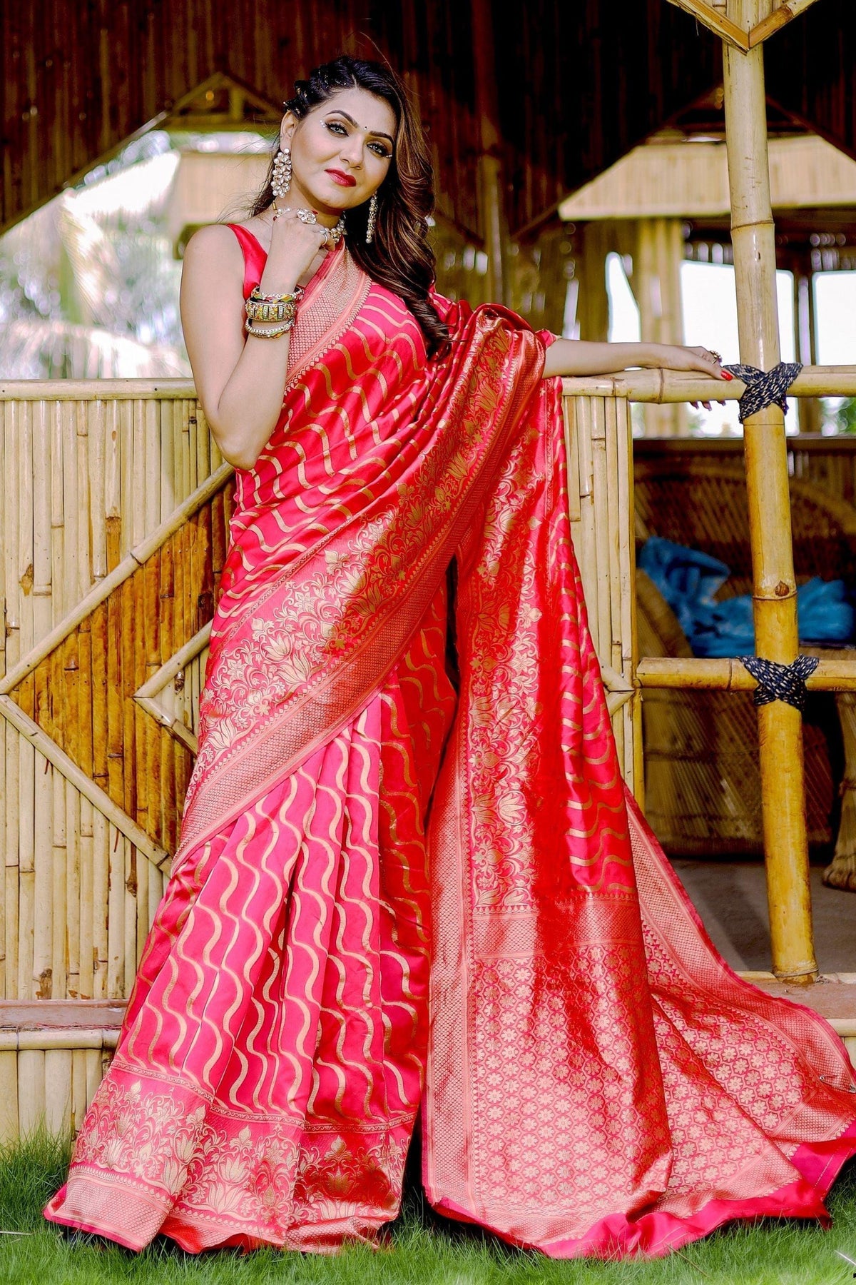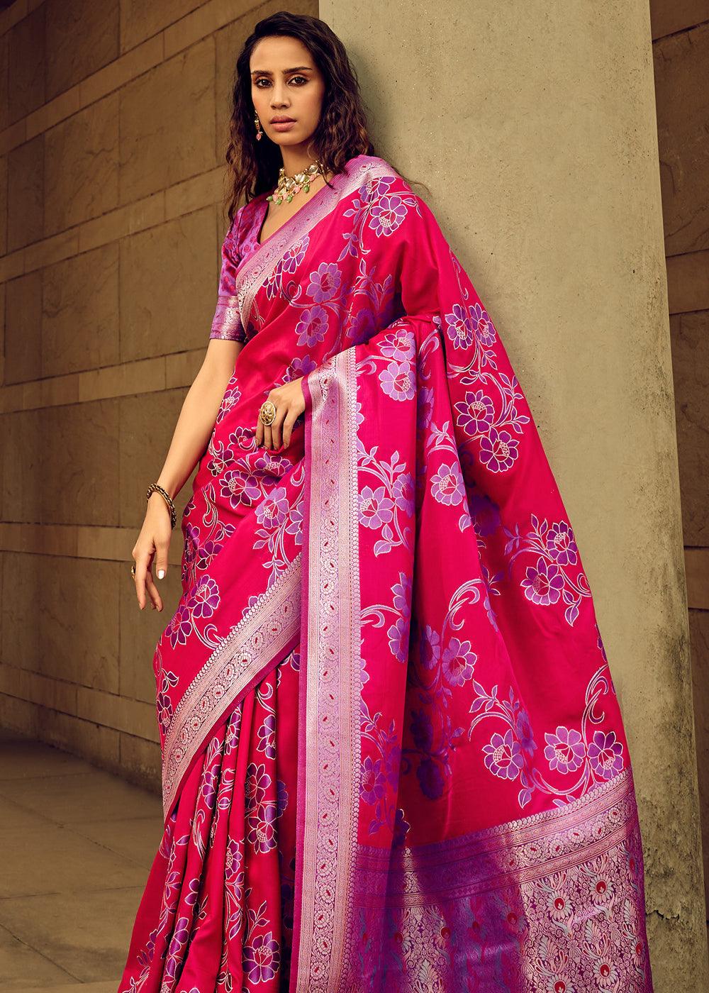 Princess Pink Woven Satin Silk Banarasi Saree With Brocade Blouse