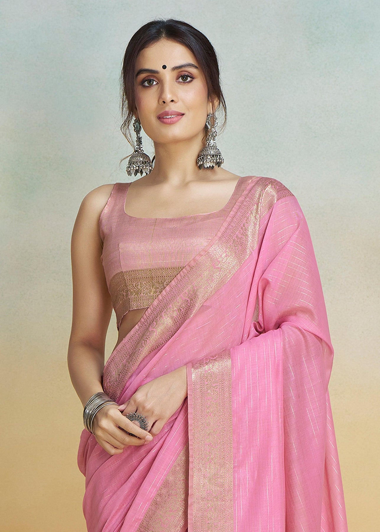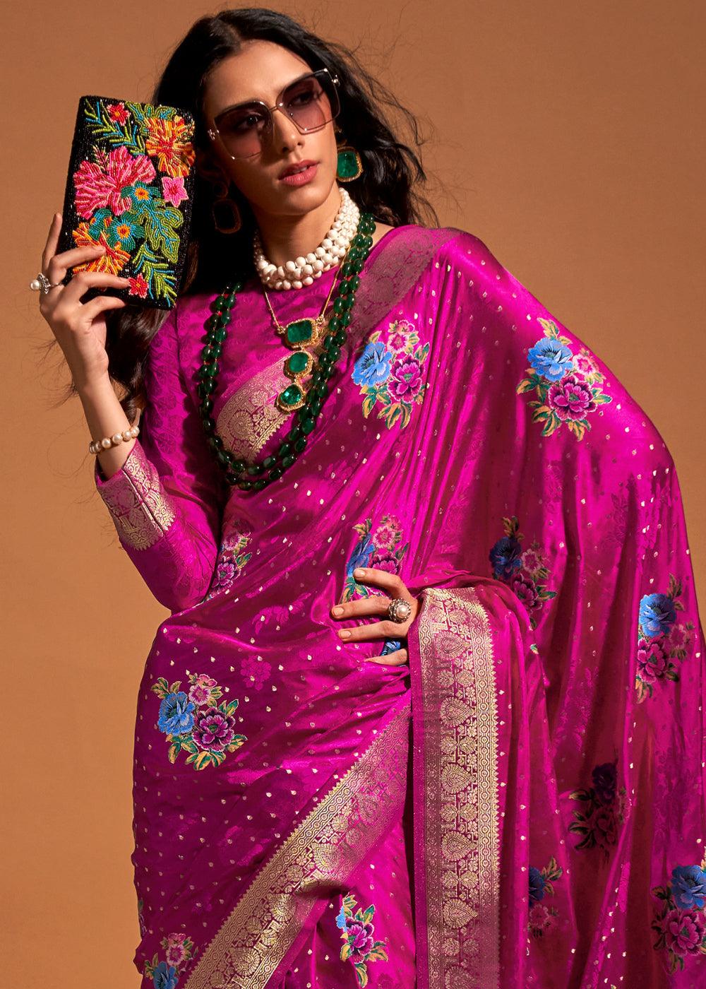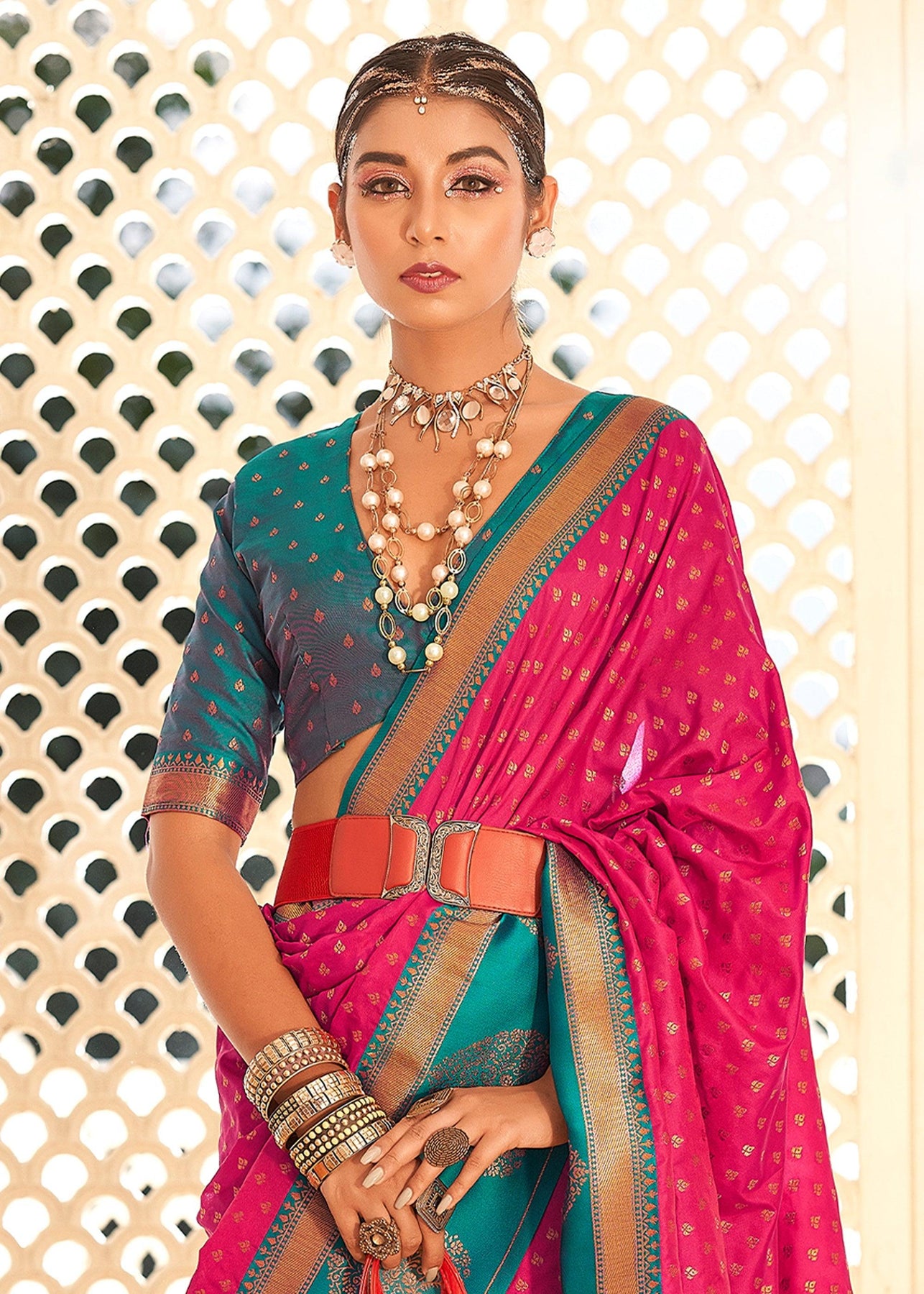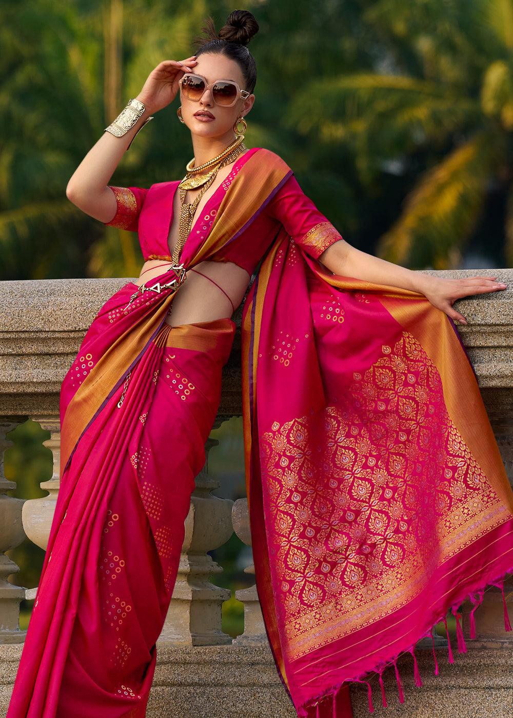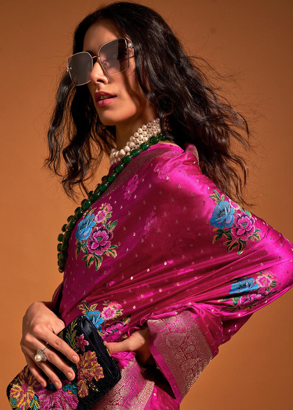 Princess Pink Woven Satin Silk Banarasi Saree With Brocade Blouse