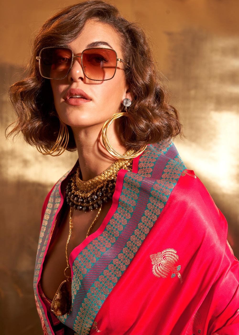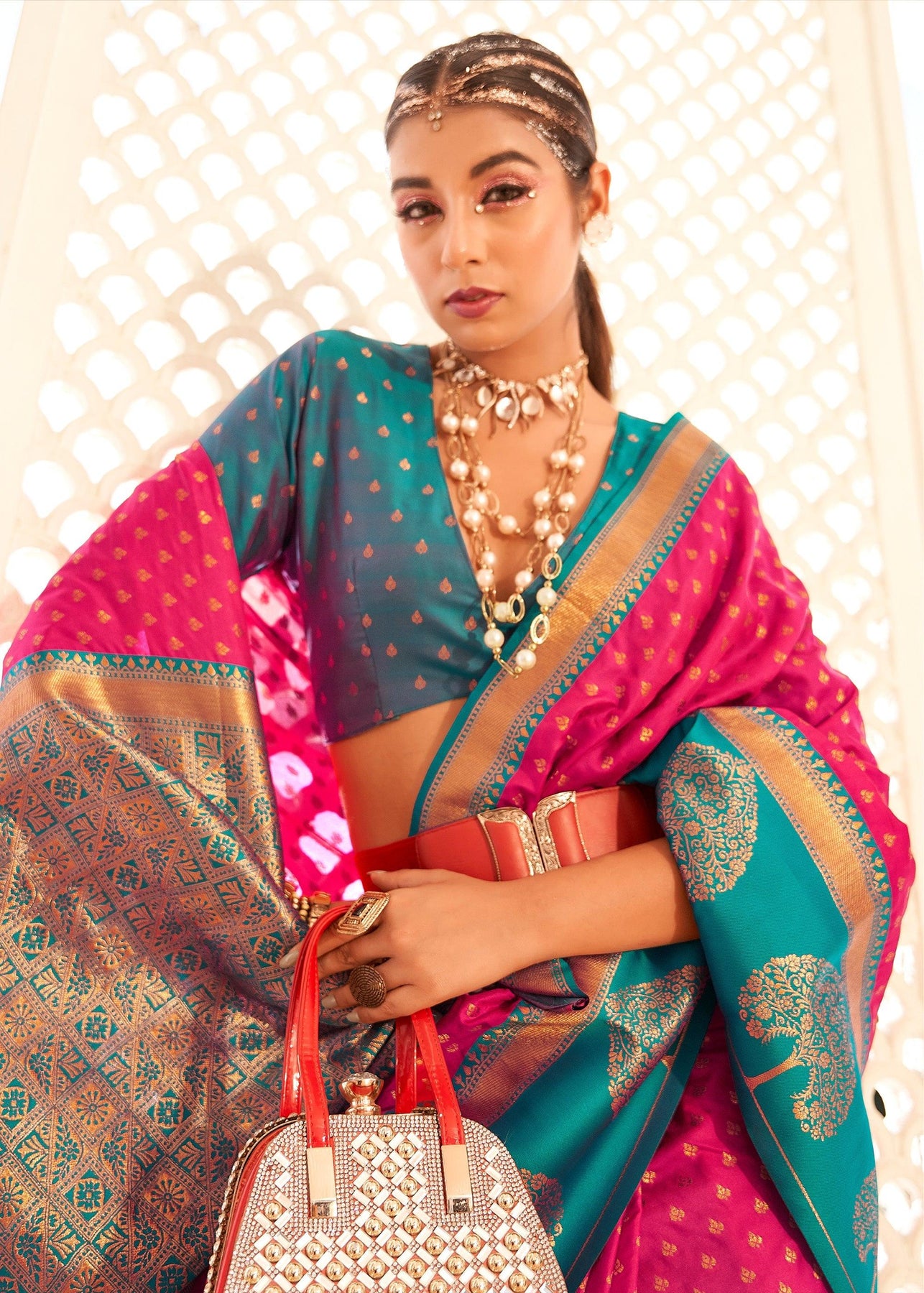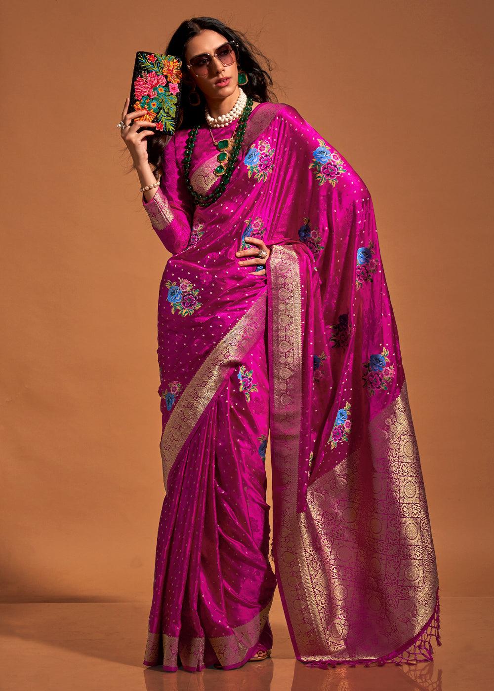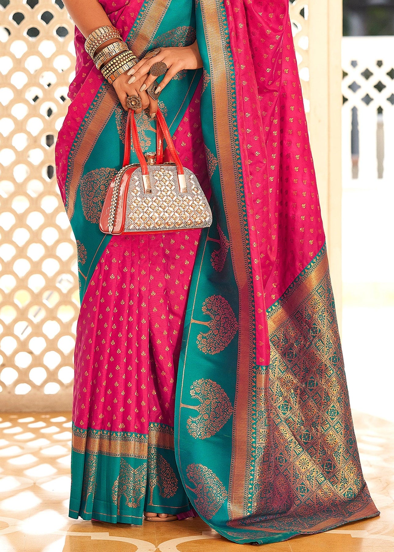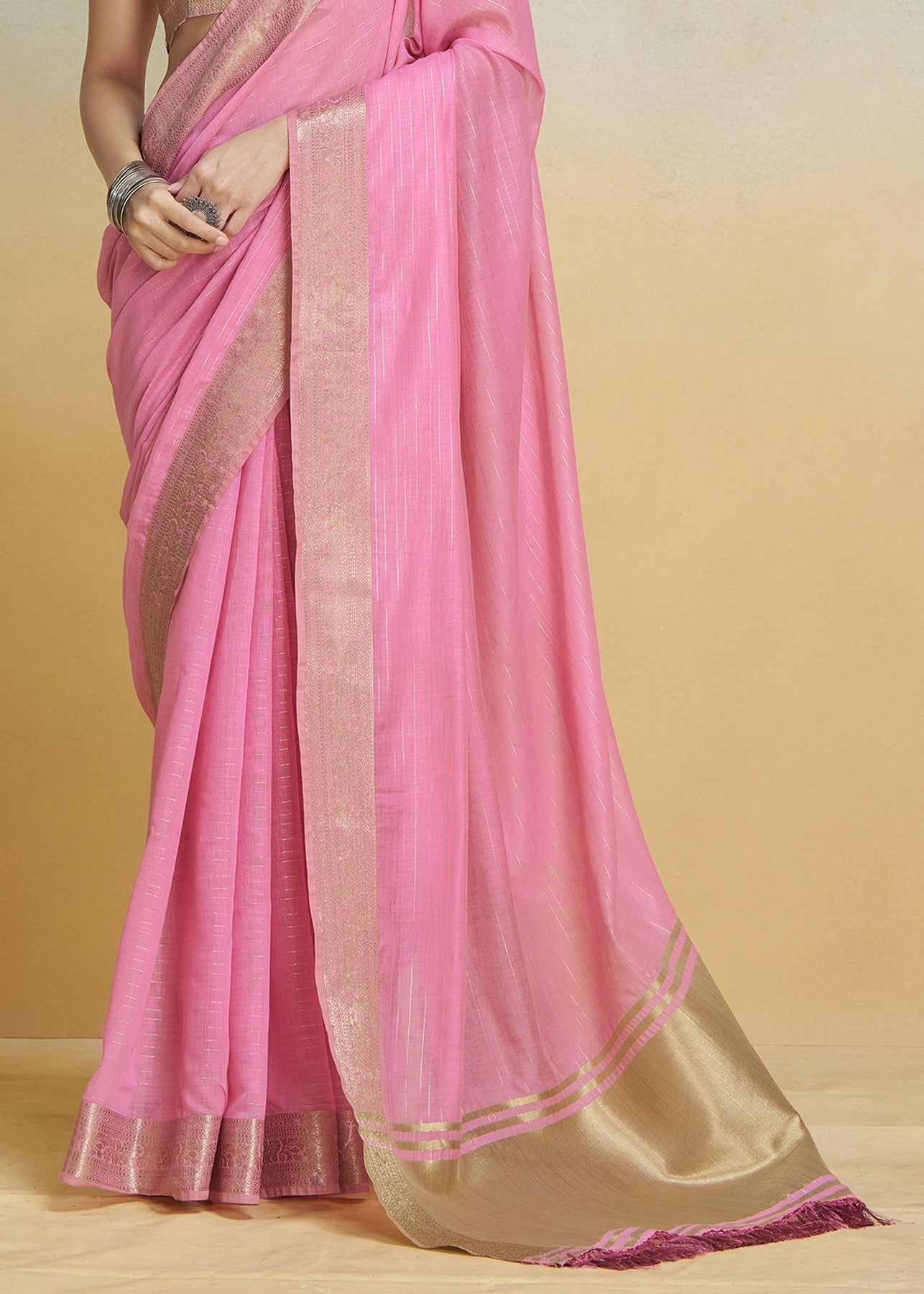 Princess Pink Woven Satin Silk Banarasi Saree With Brocade Blouse