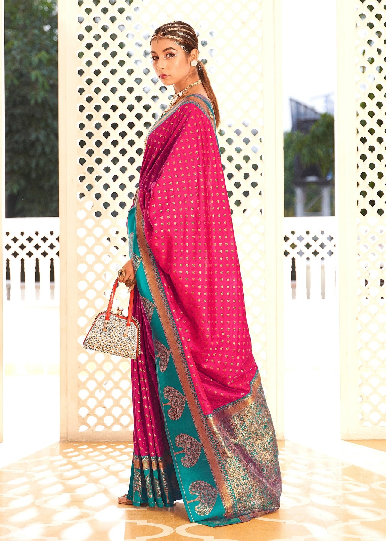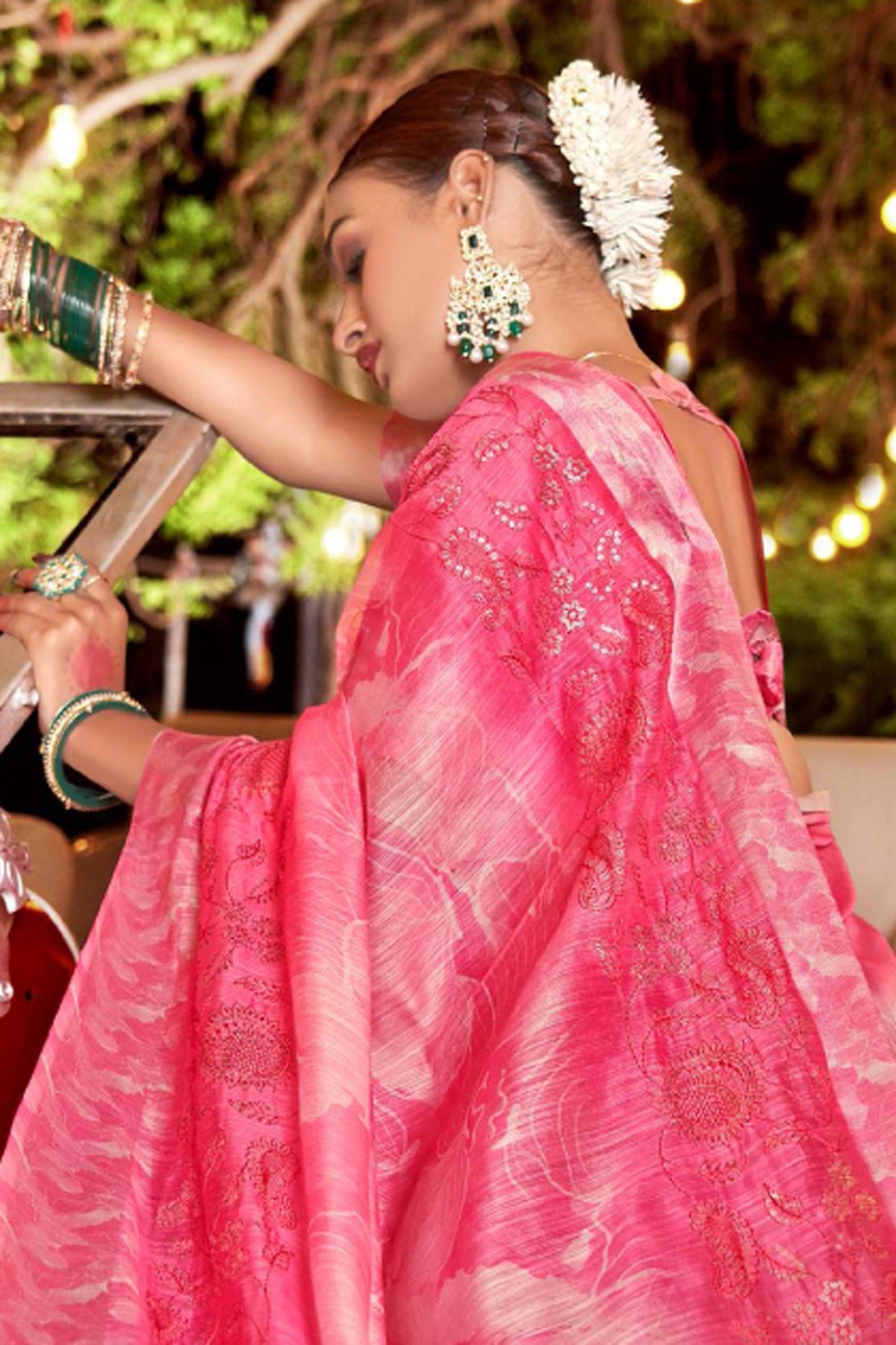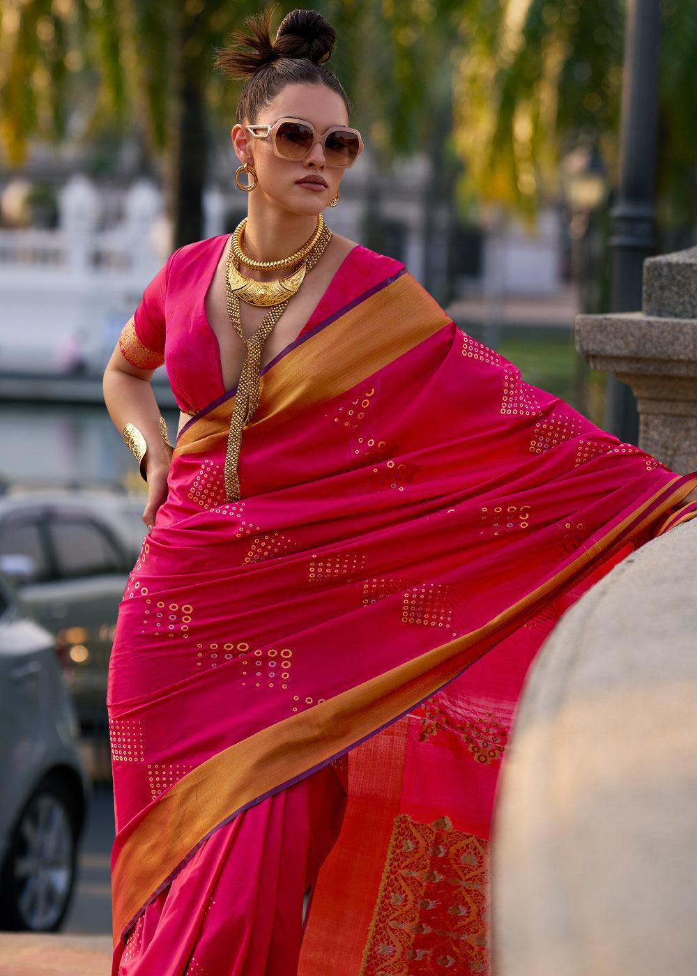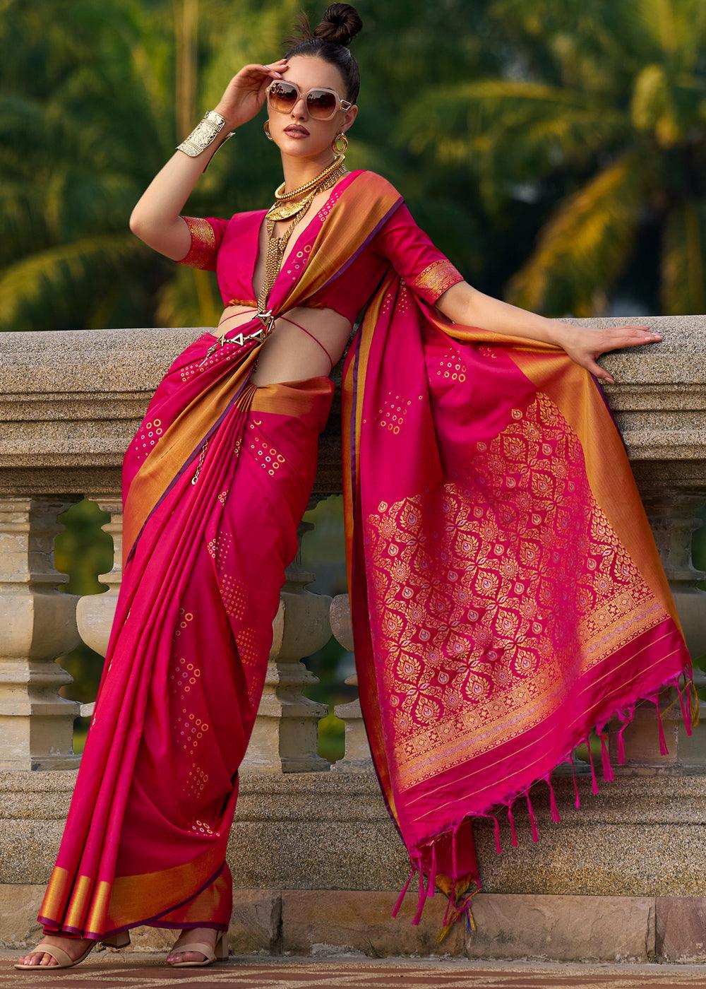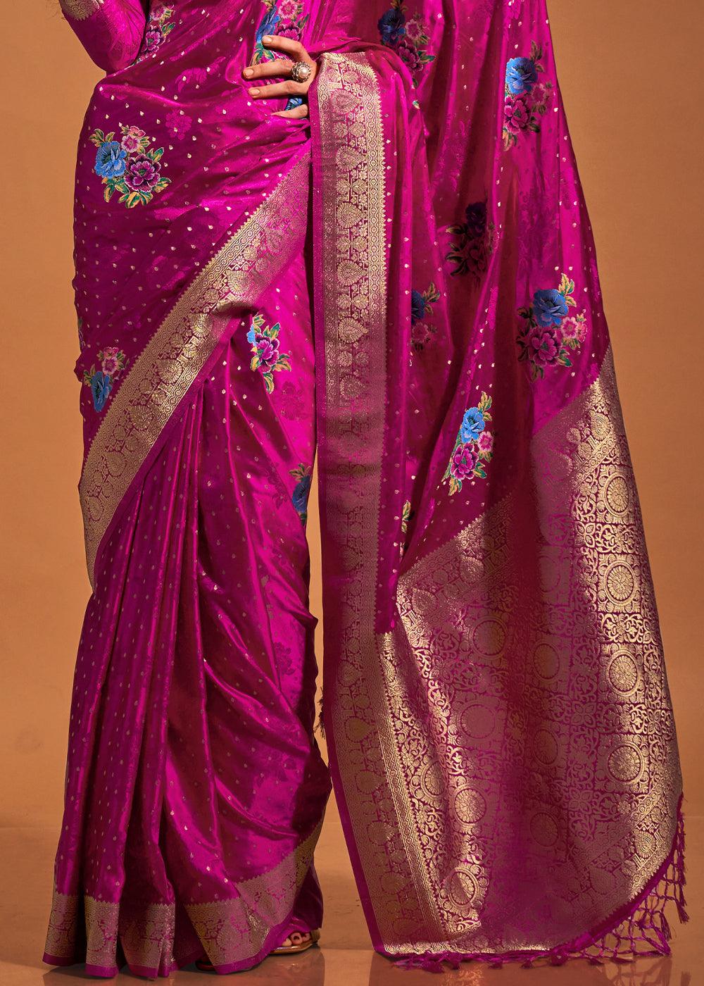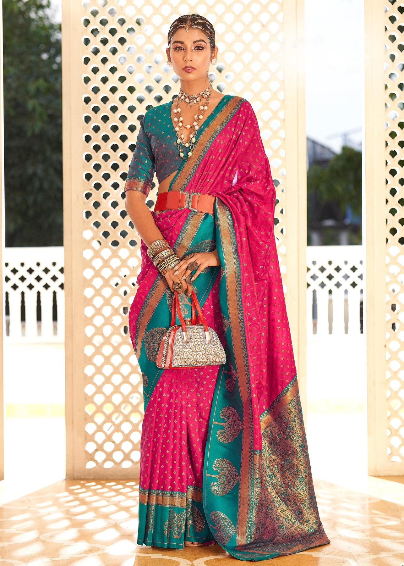 Princess Pink Woven Satin Silk Banarasi Saree With Brocade Blouse