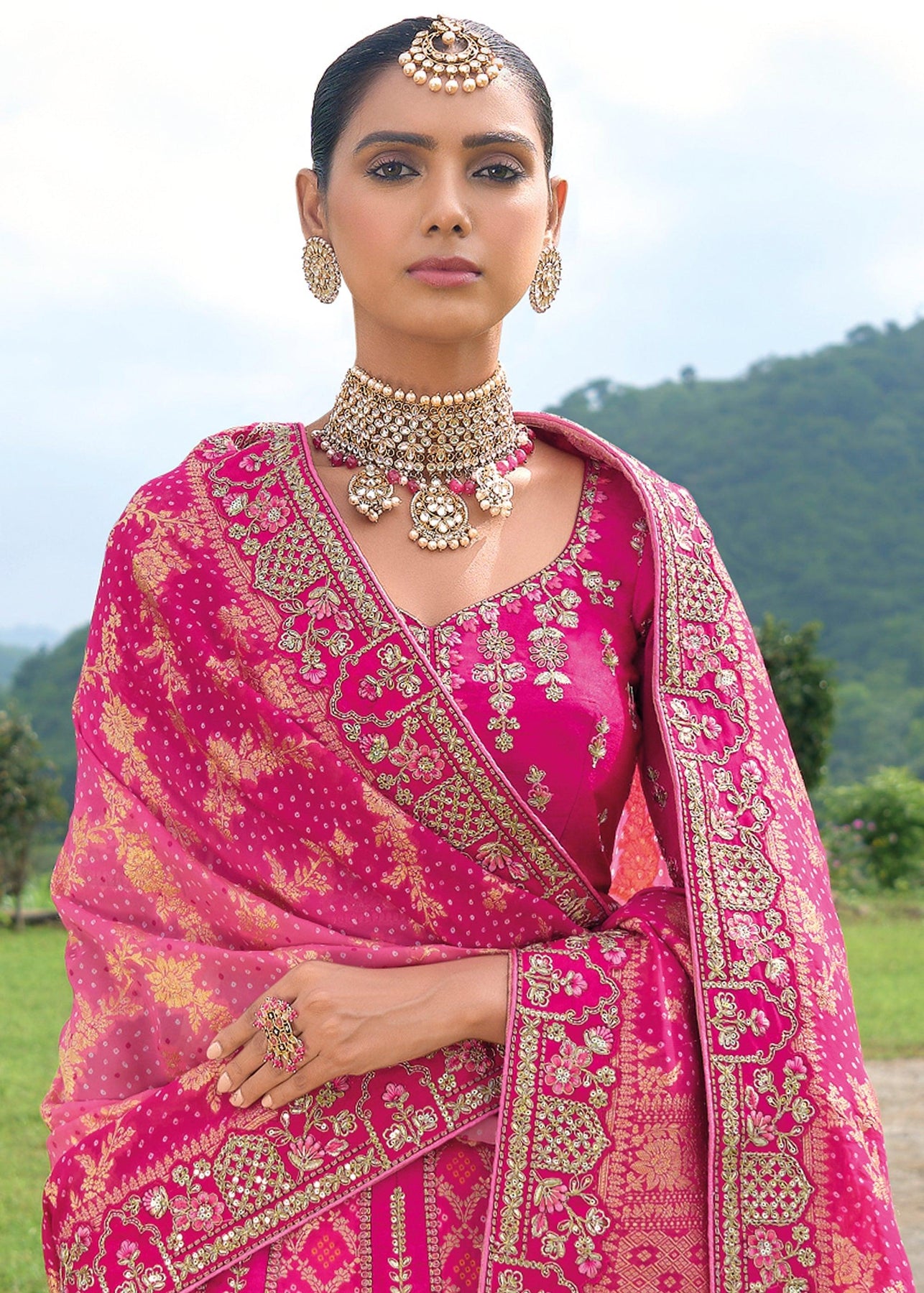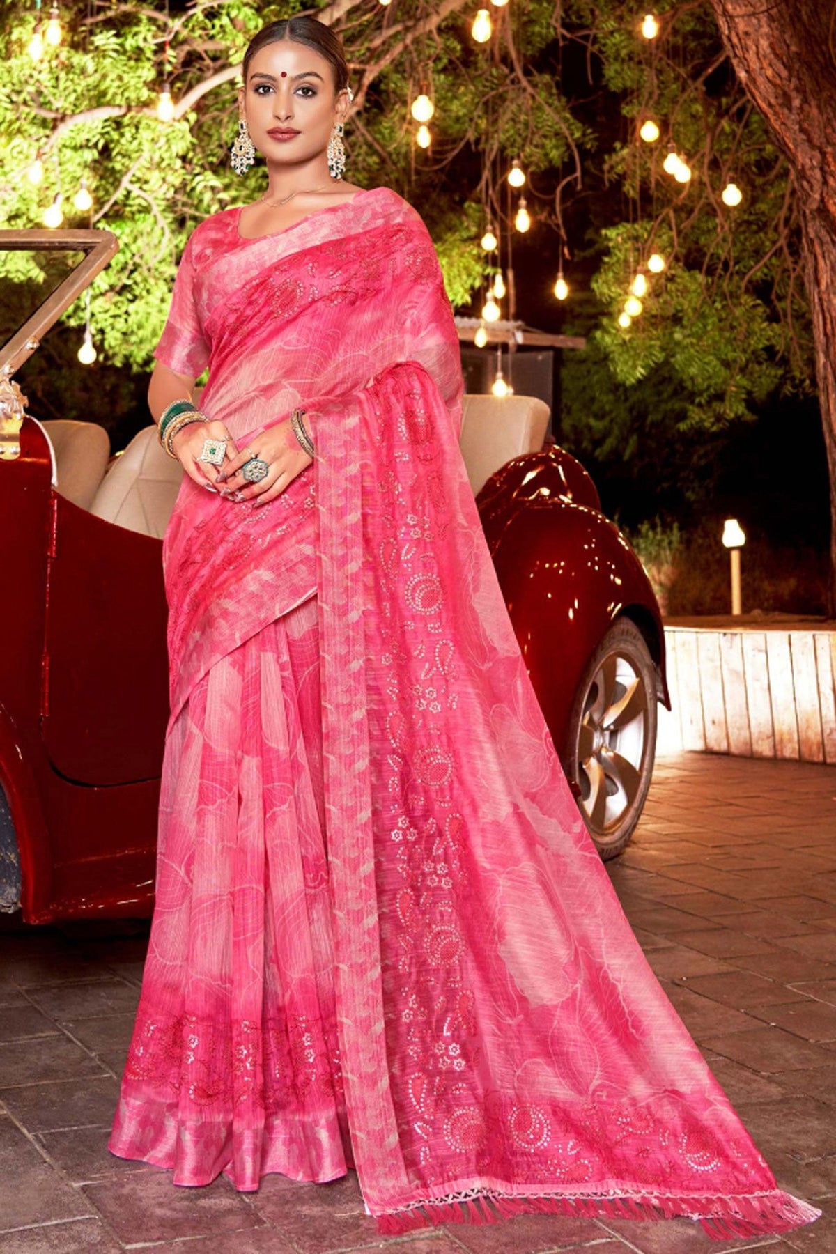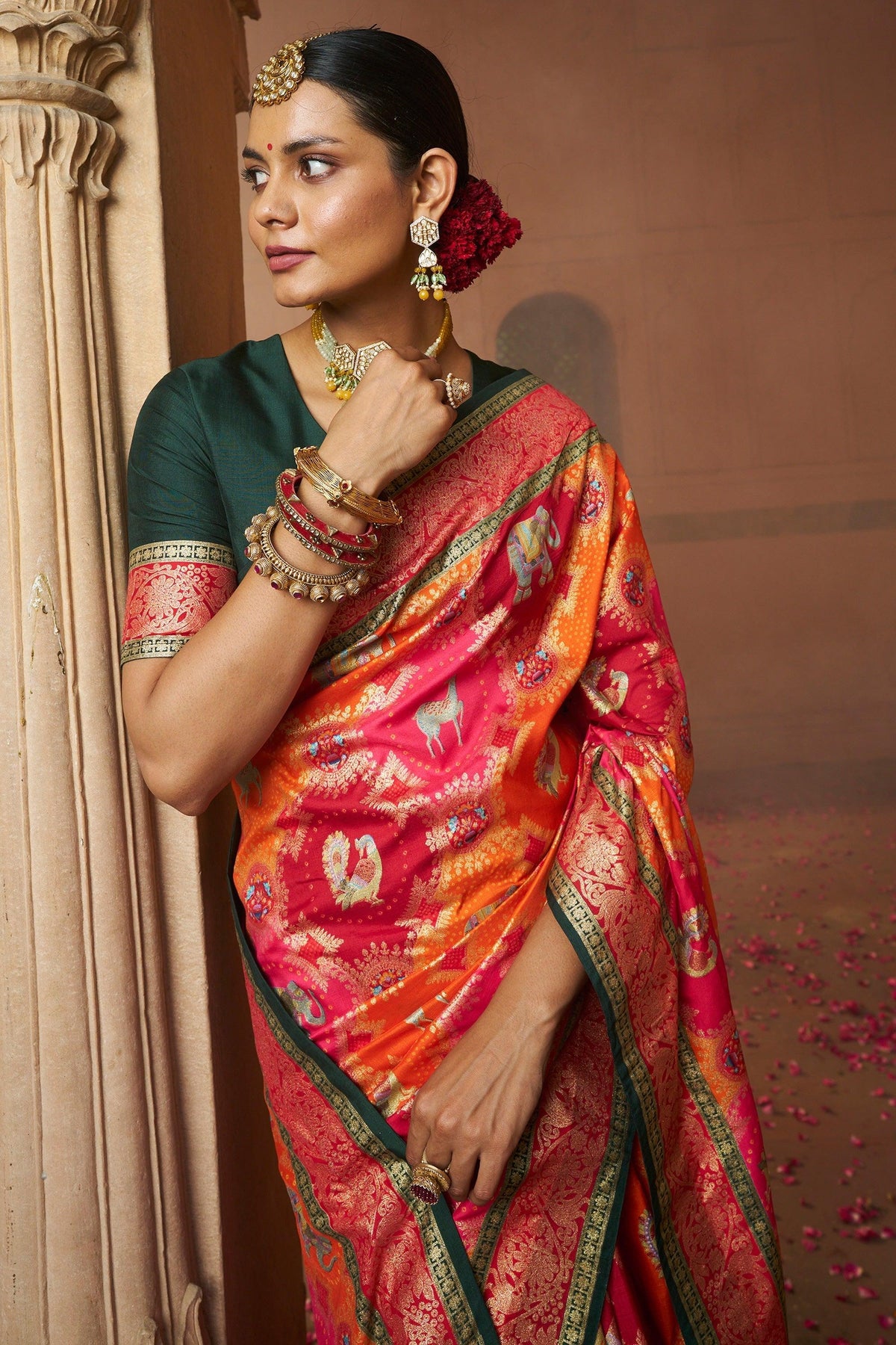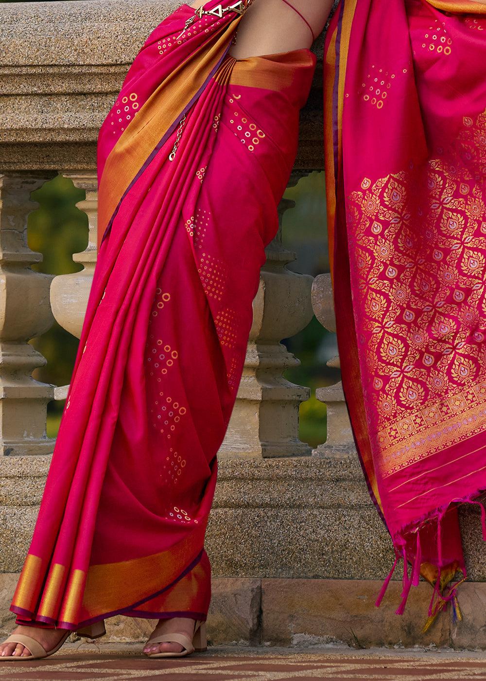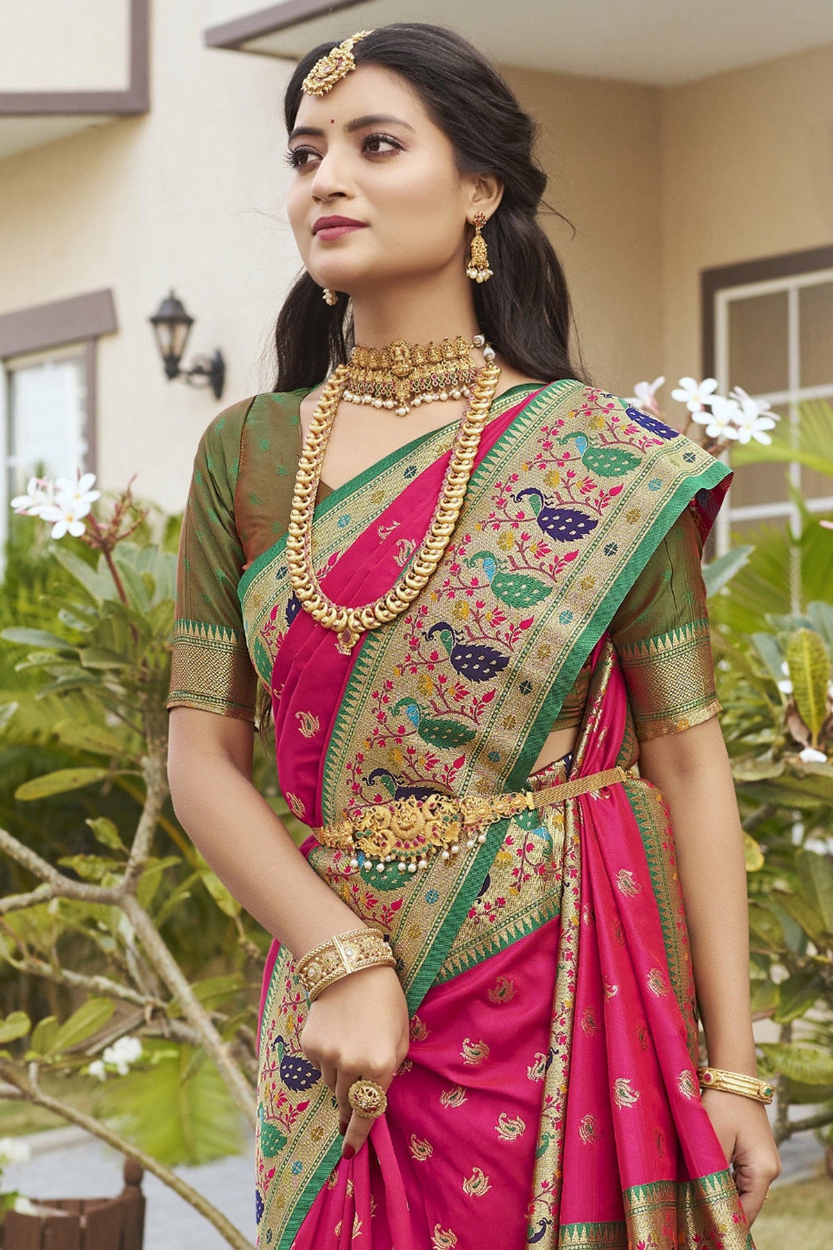 Princess Pink Woven Satin Silk Banarasi Saree With Brocade Blouse