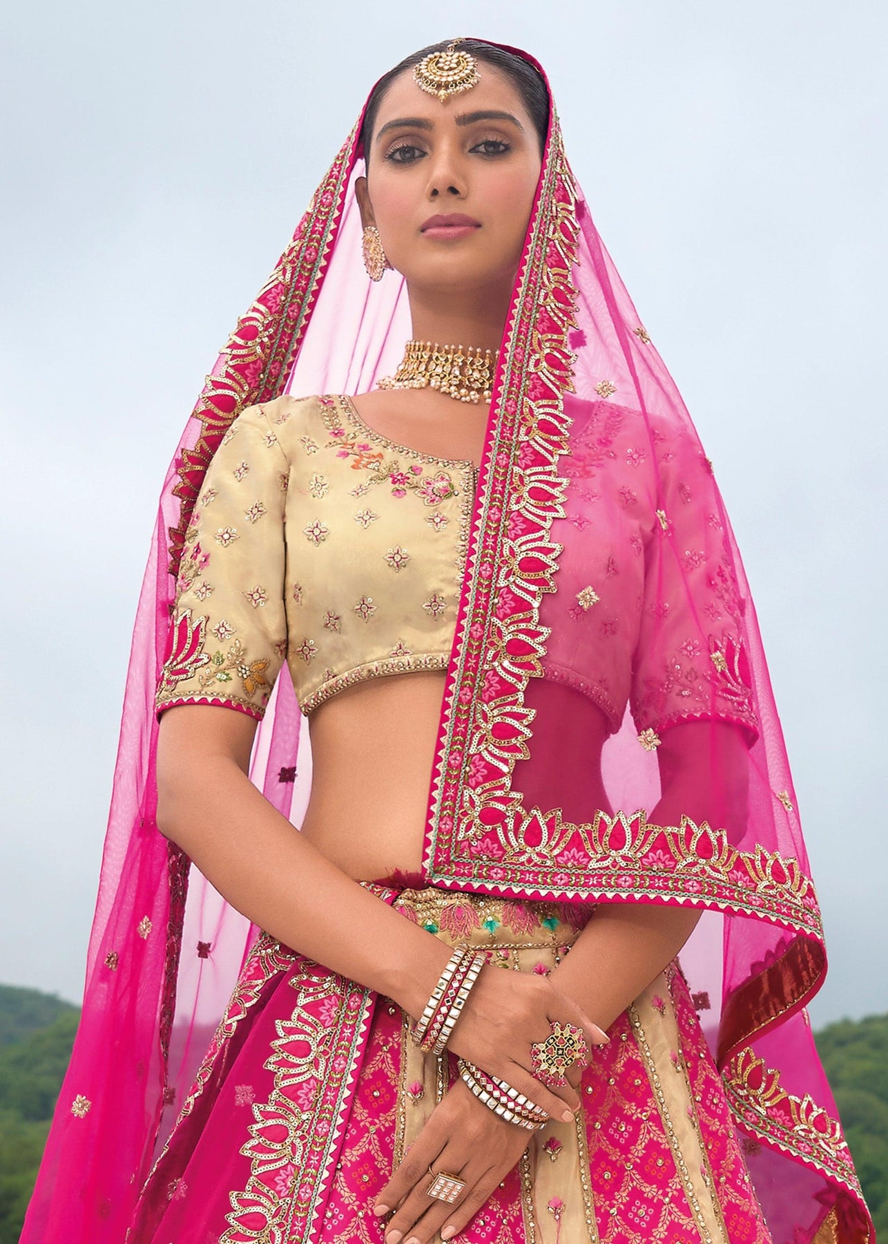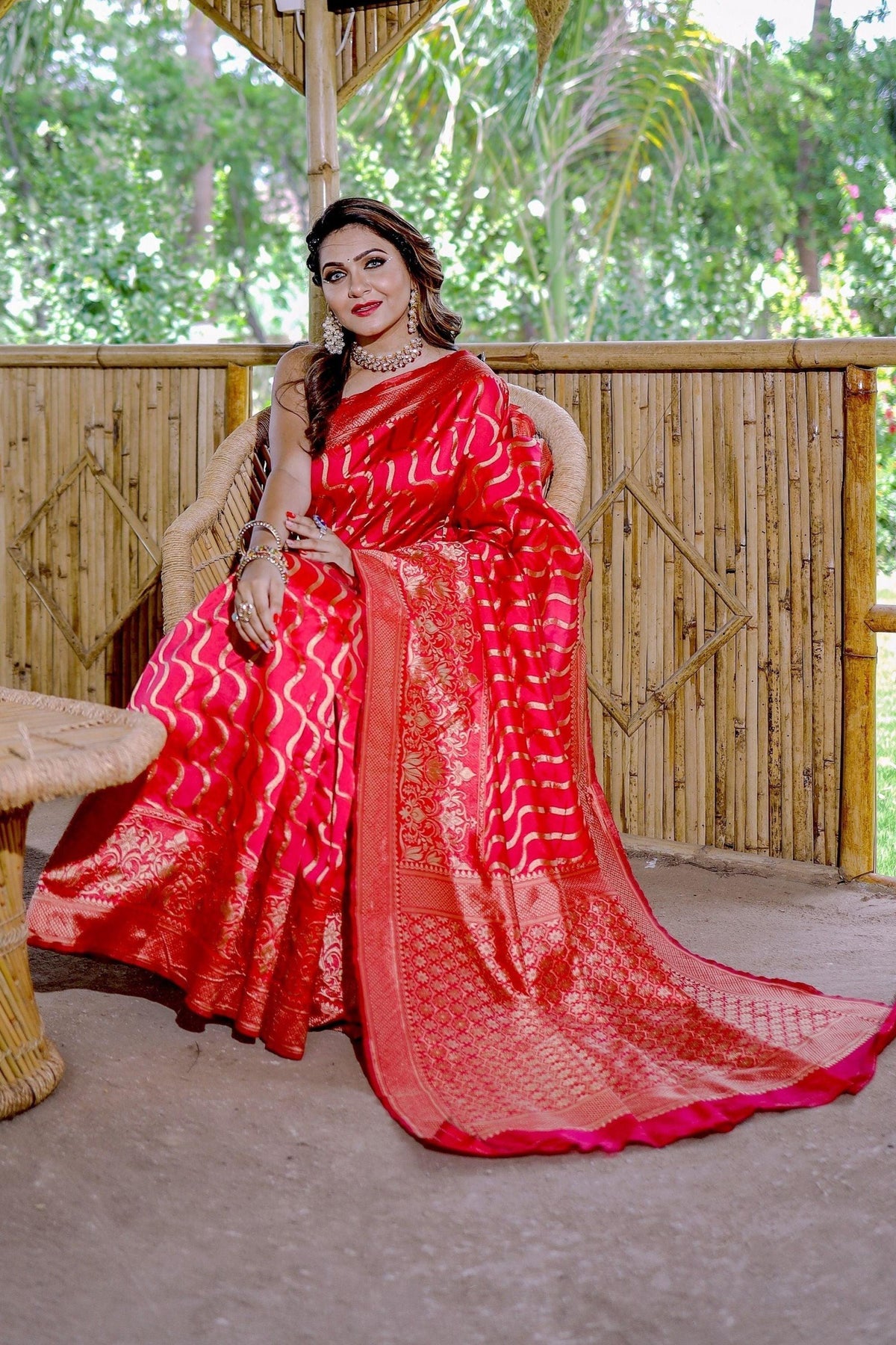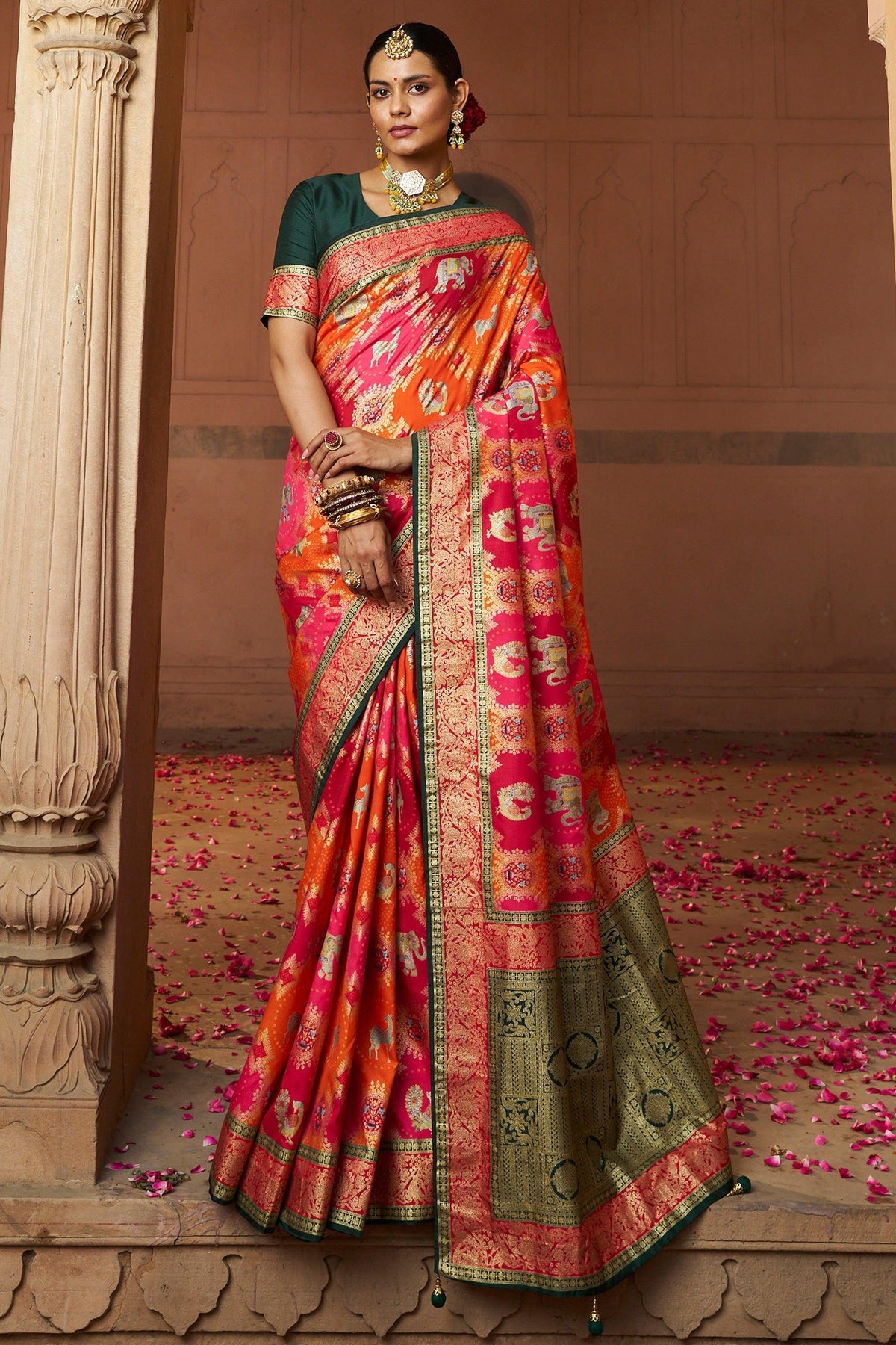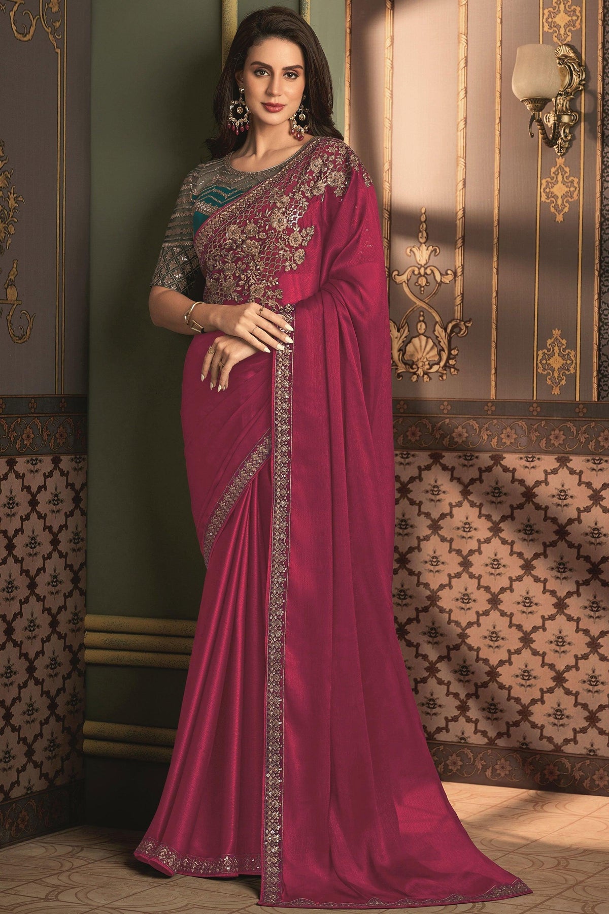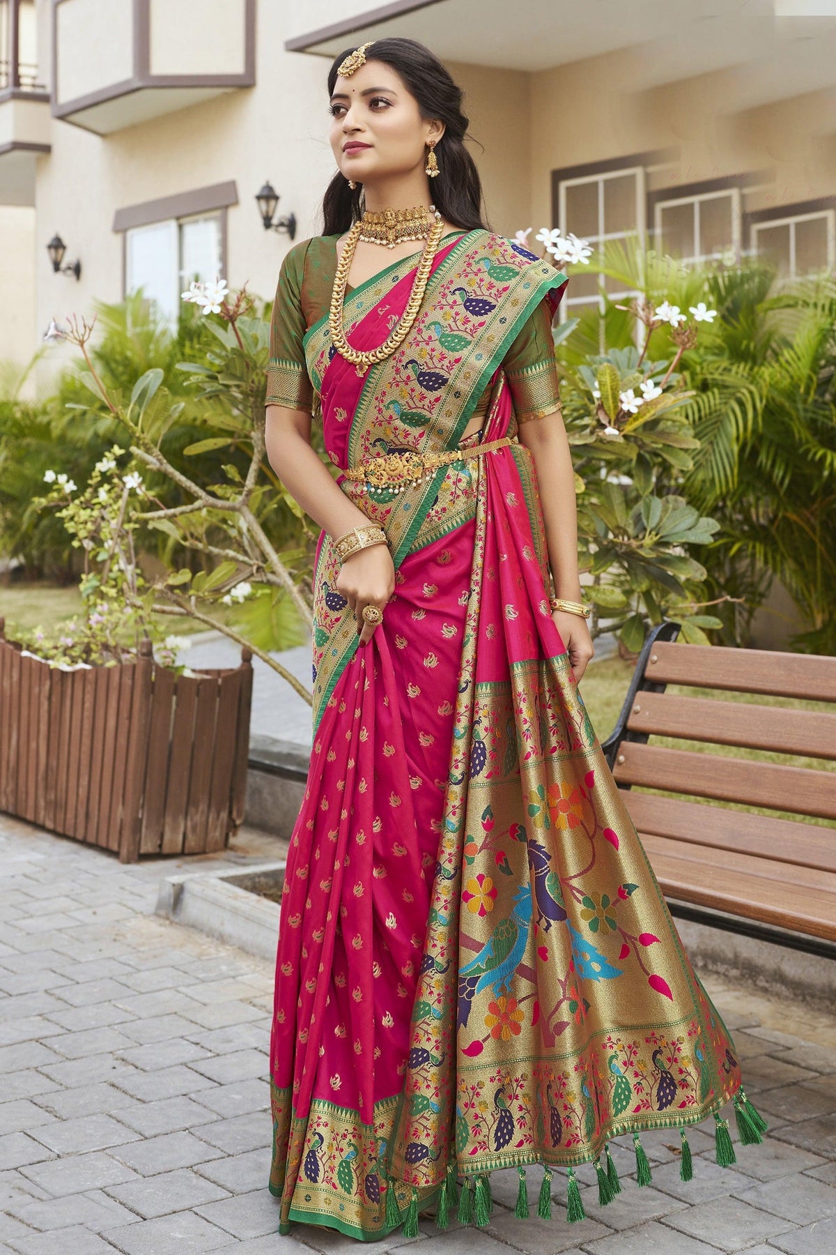 Princess Pink Woven Satin Silk Banarasi Saree With Brocade Blouse