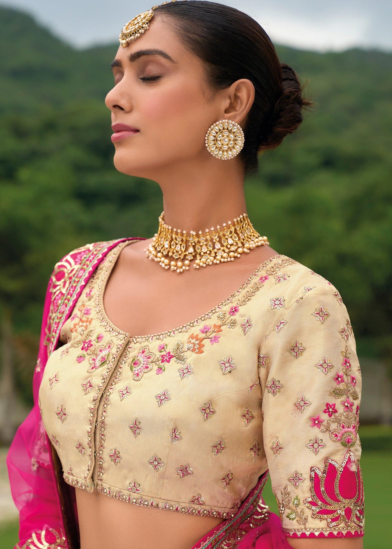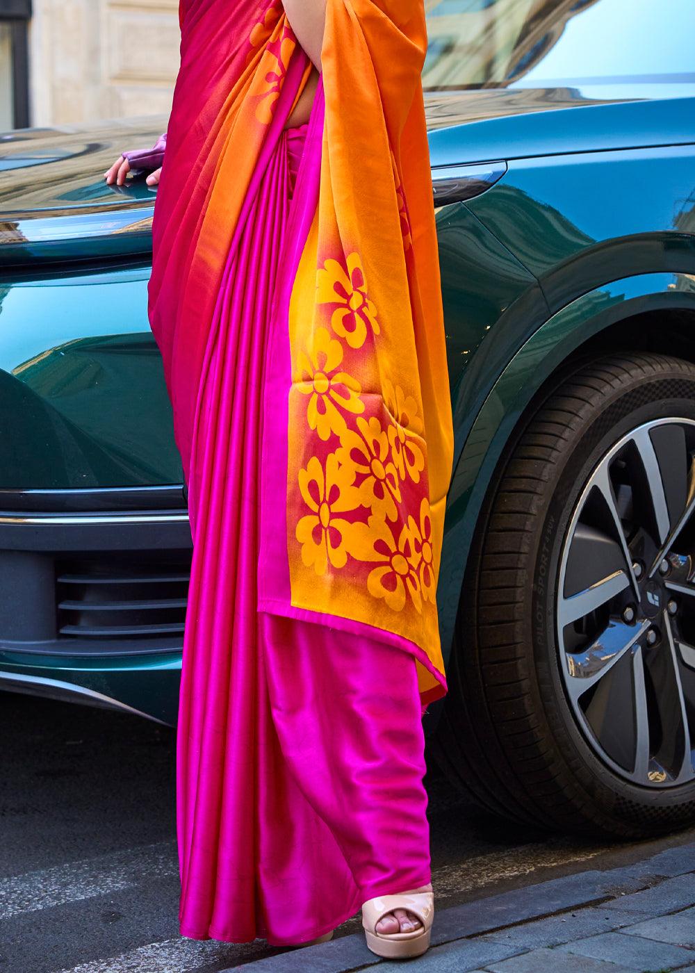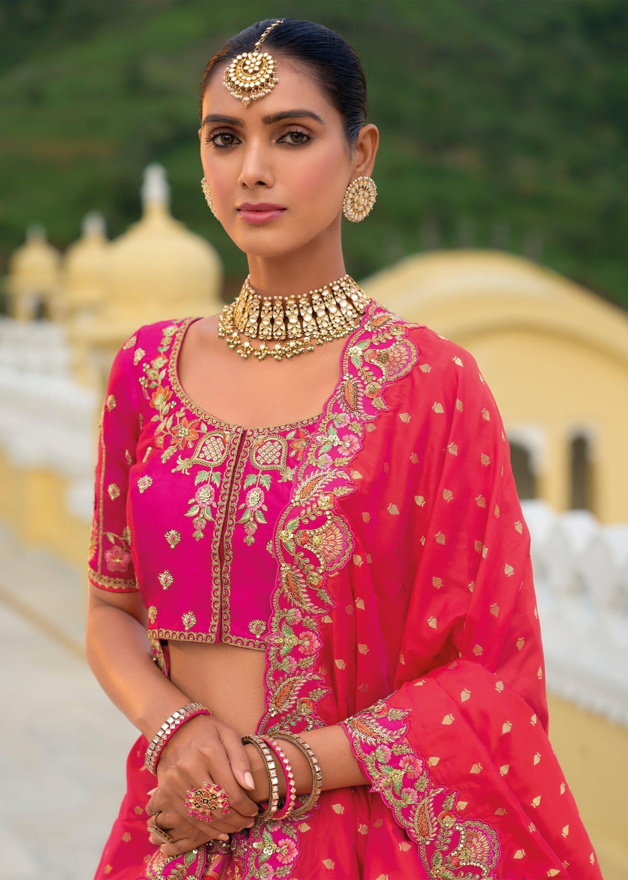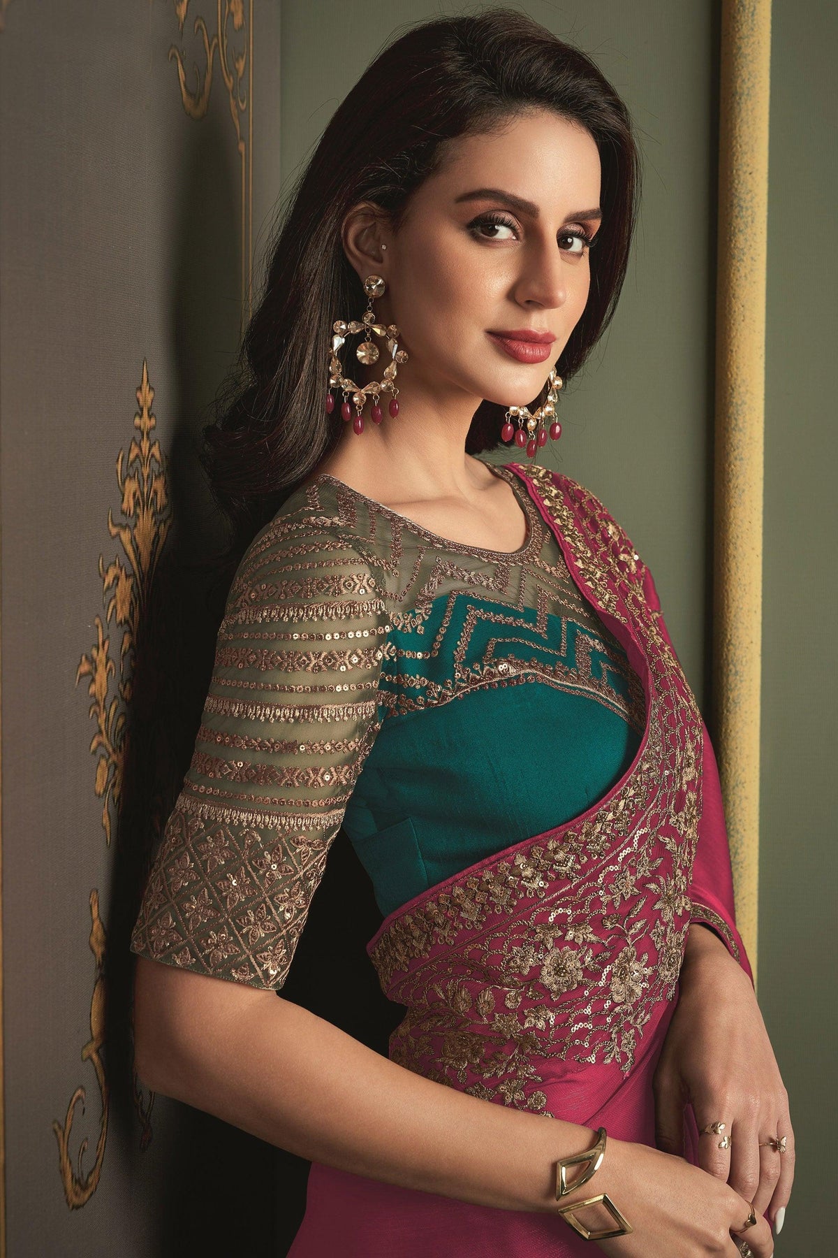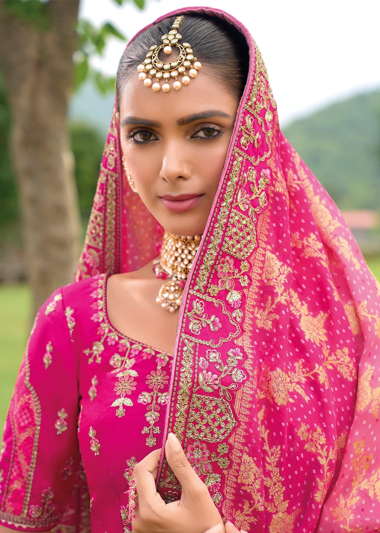 Princess Pink Woven Satin Silk Banarasi Saree With Brocade Blouse