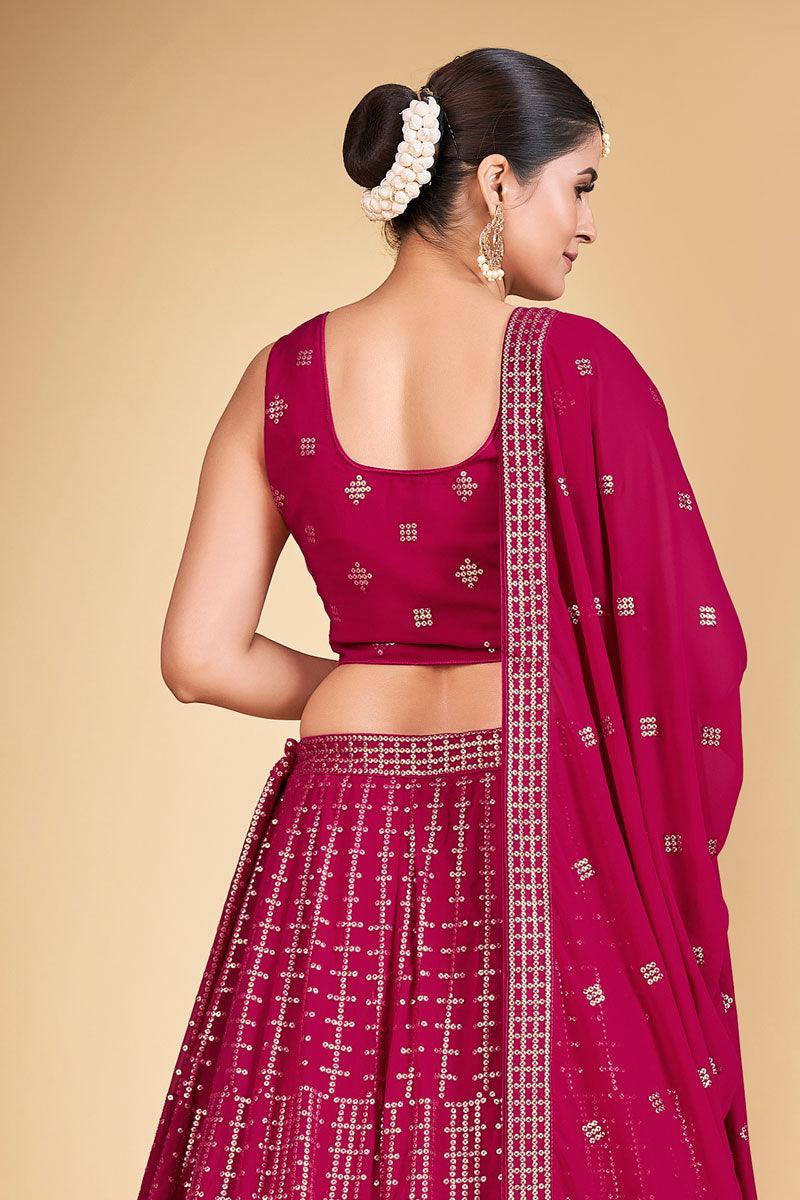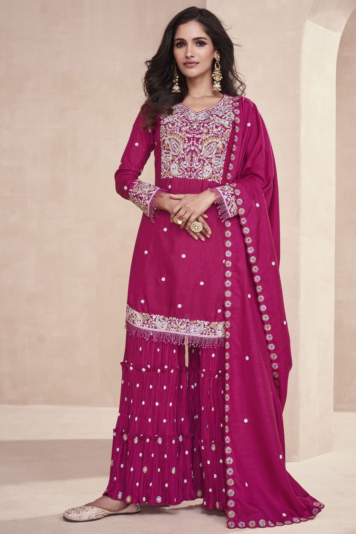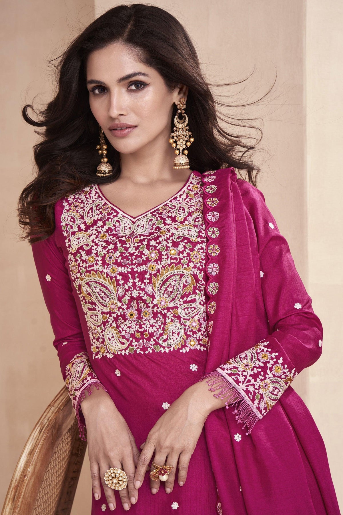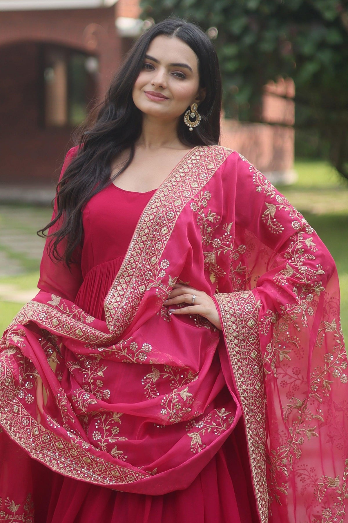 Rani Color Festive Wear Embroidered Straight Cut Salwar Suit In Chiffon Fabric