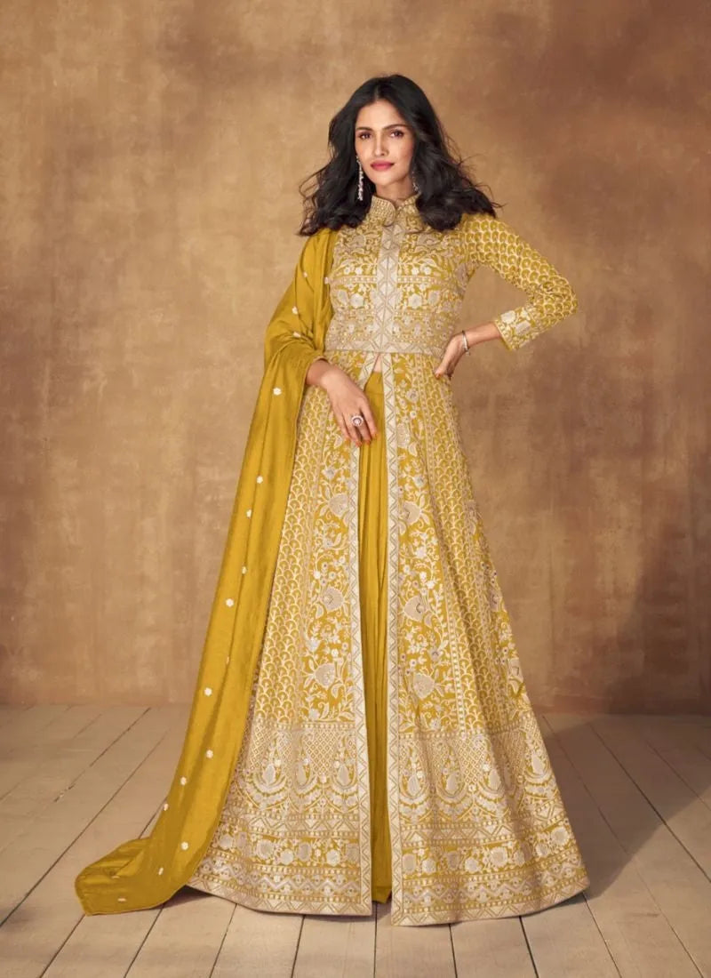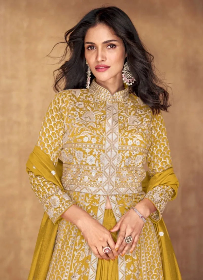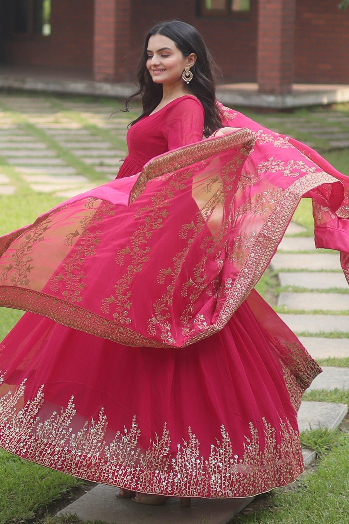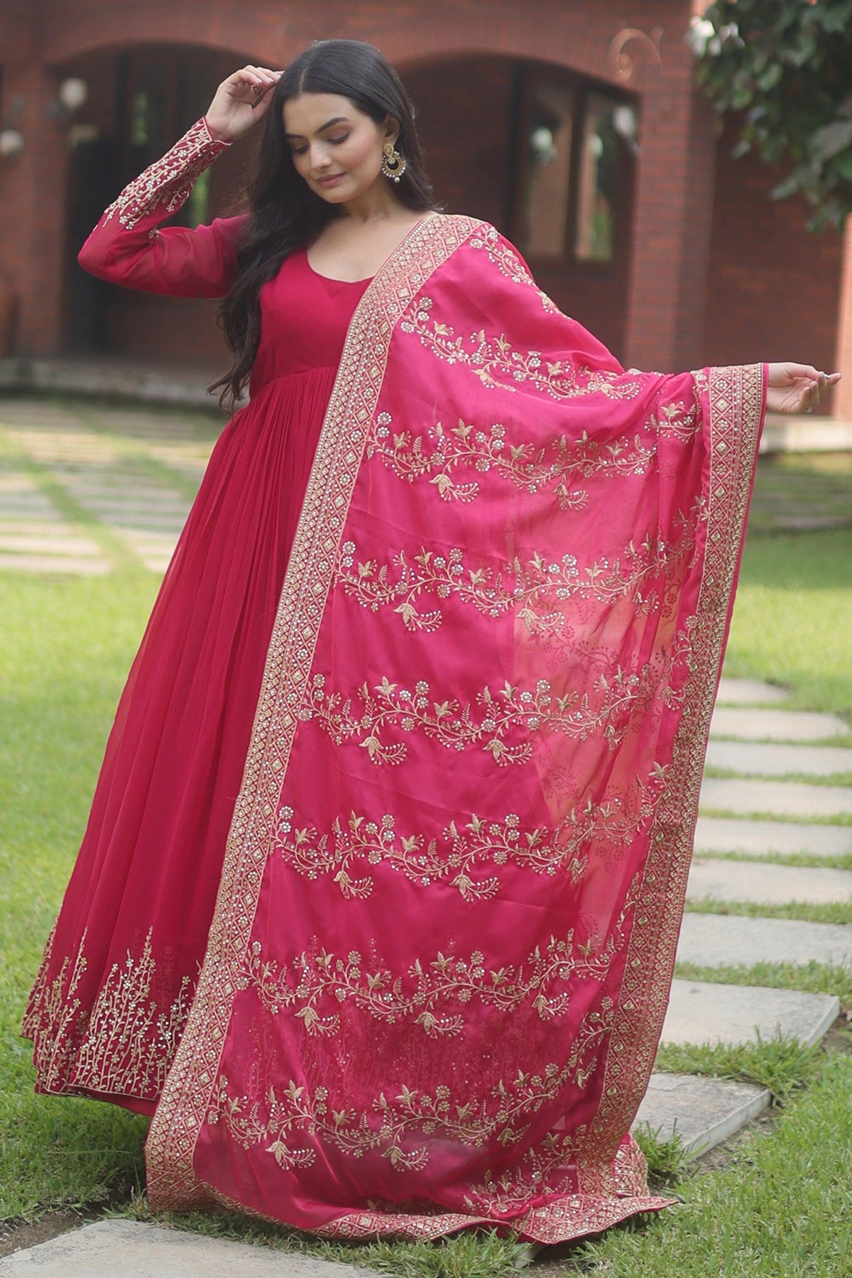 Rani Color Festive Wear Embroidered Straight Cut Salwar Suit In Chiffon Fabric