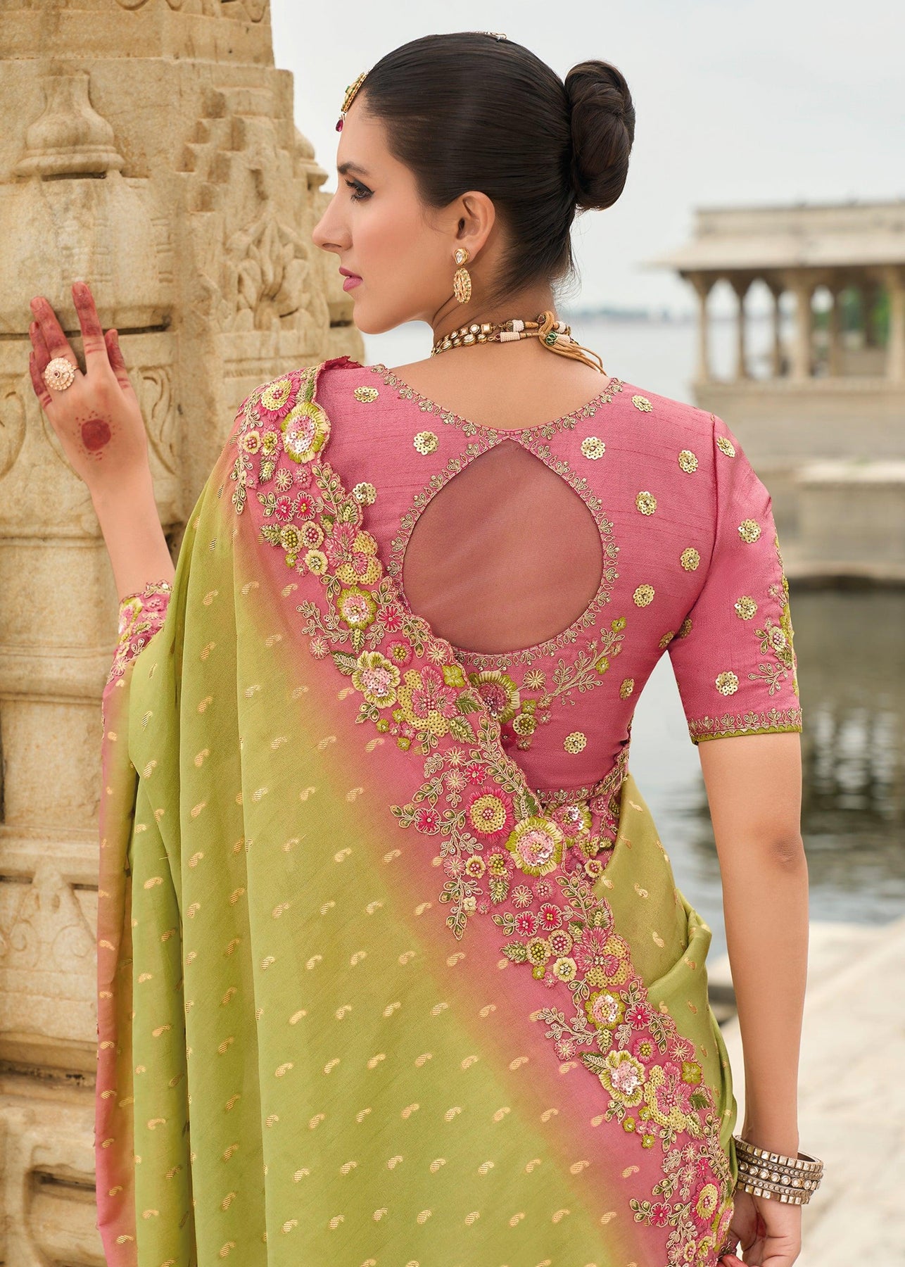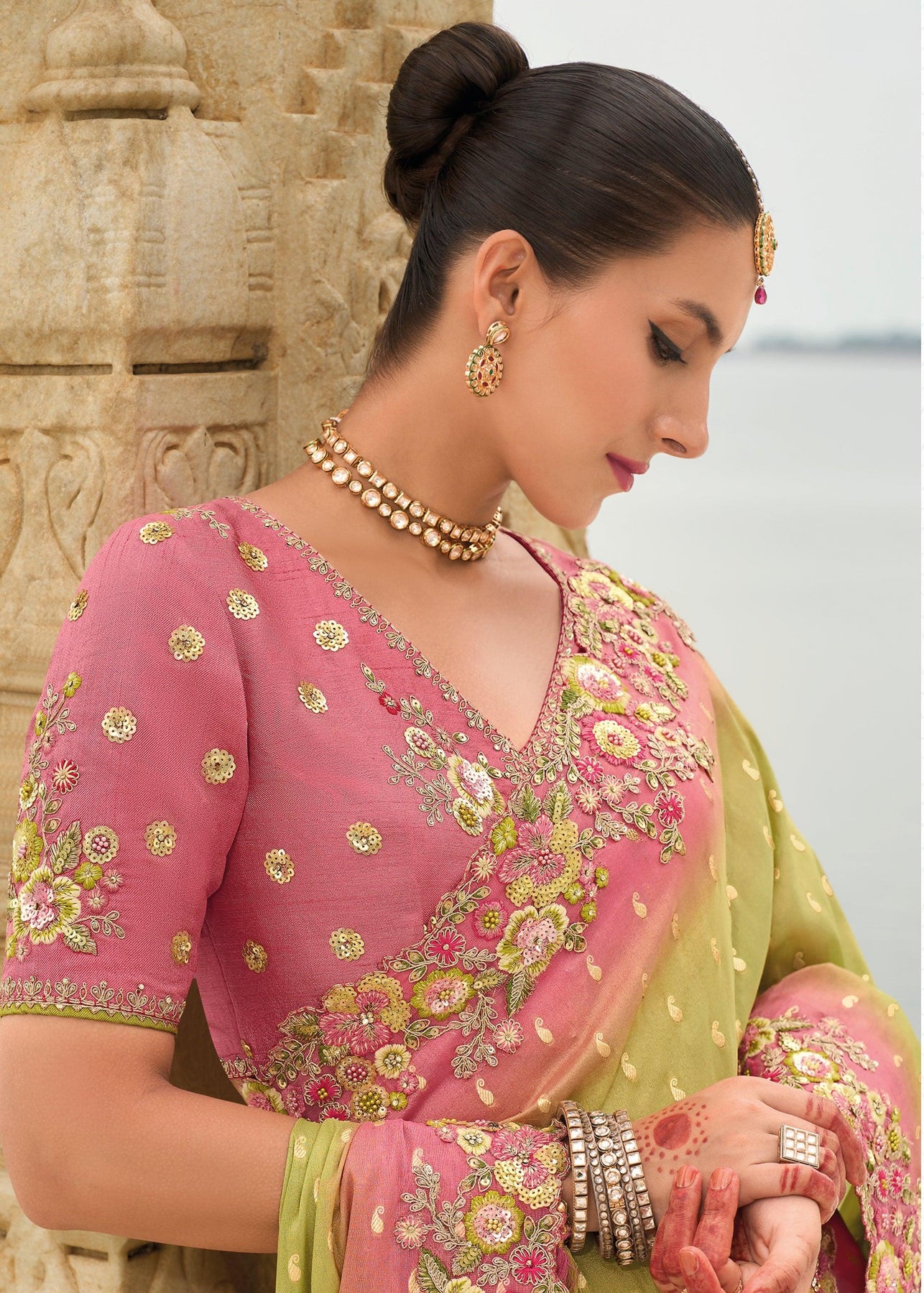 A celebration of Indian heritage, this silk saree showcases traditional embroidery in vibrant colors. Intricate motifs and delicate embellishments create a visual feast. The luxurious silk drapes gracefully, making it perfect for festive occasions and cultural celebrations.