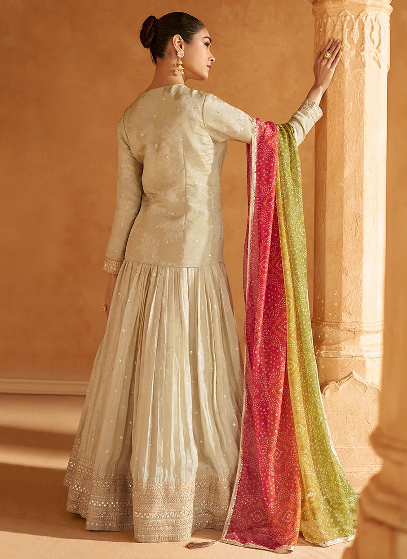 Beautiful Ivory Beige Embroidered Designer Lehenga Kurta