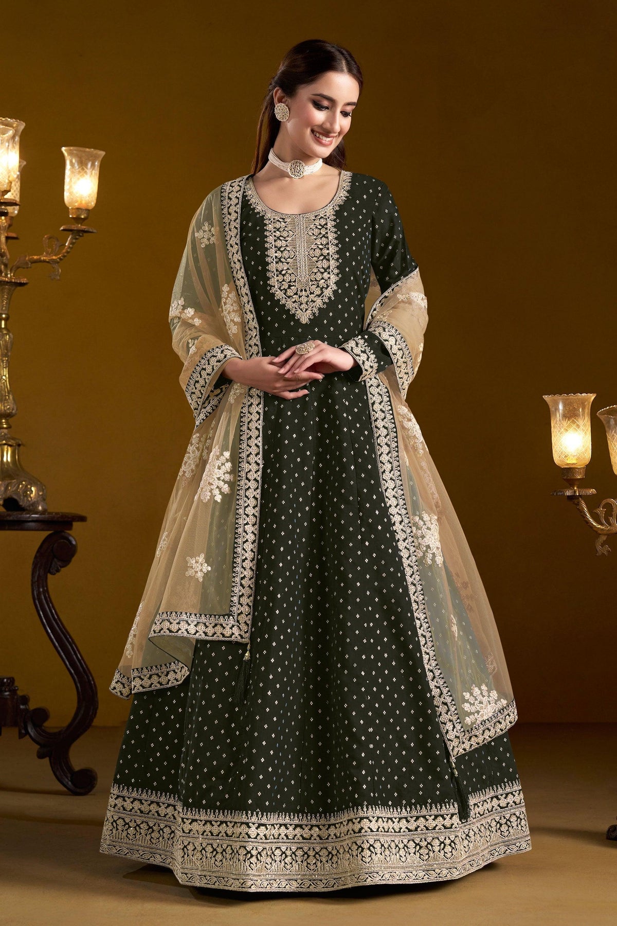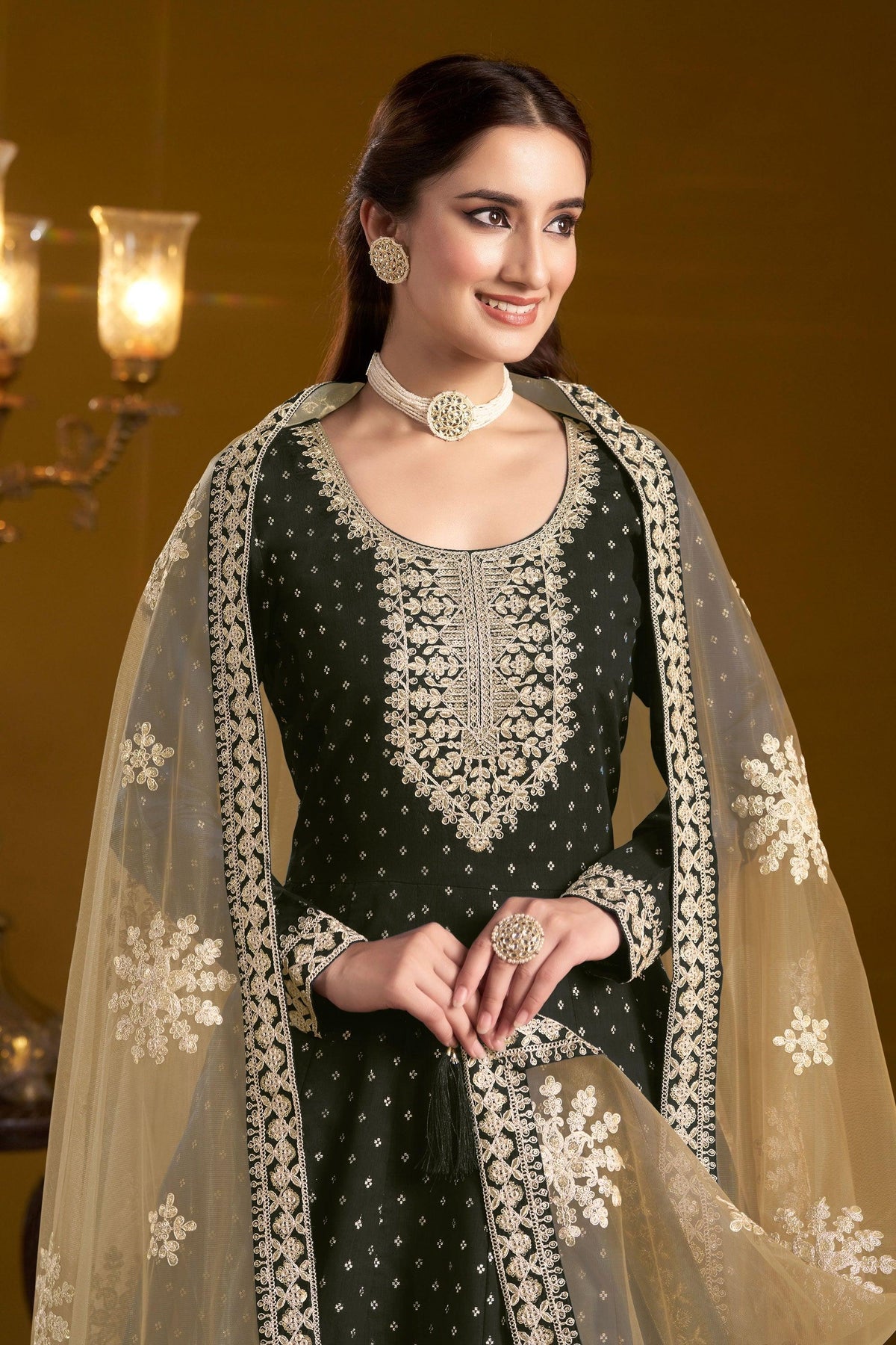 Discover elegance with the Reach Color Anarkali Salwar Suit from our Bridal Collection. Made from luxurious Chanderi Butti fabric, the semi-stitched top reaches a graceful length of up to 54 inches. The accompanying bottom and inner fabrics are crafted from soft Santool, providing an effortless blend of comfort and sophistication. The ensemble is accentuated with a delicate net dupatta, adding an ethereal touch to your bridal attire. Elevate your bridal charm with this splendid outfit designed to make your day memorable.