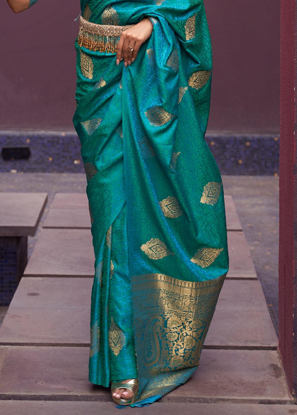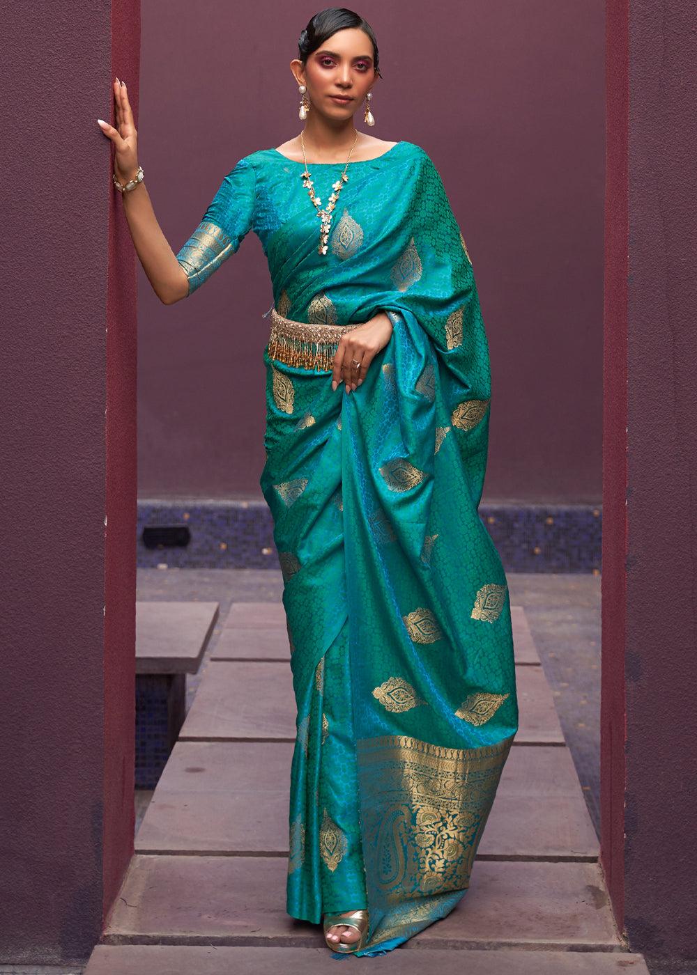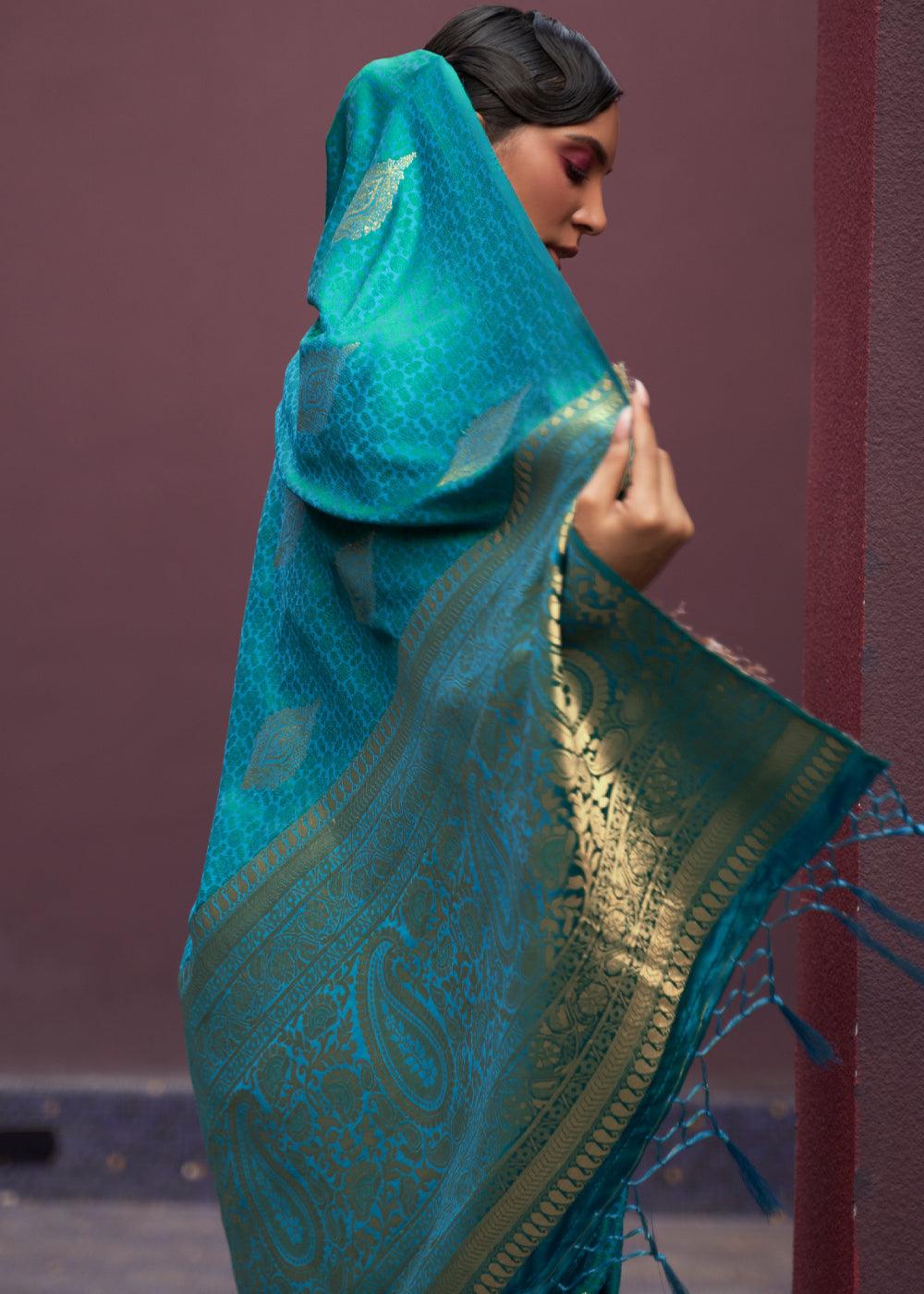 Daisy Blue Banarasi Woven Satin Silk Saree