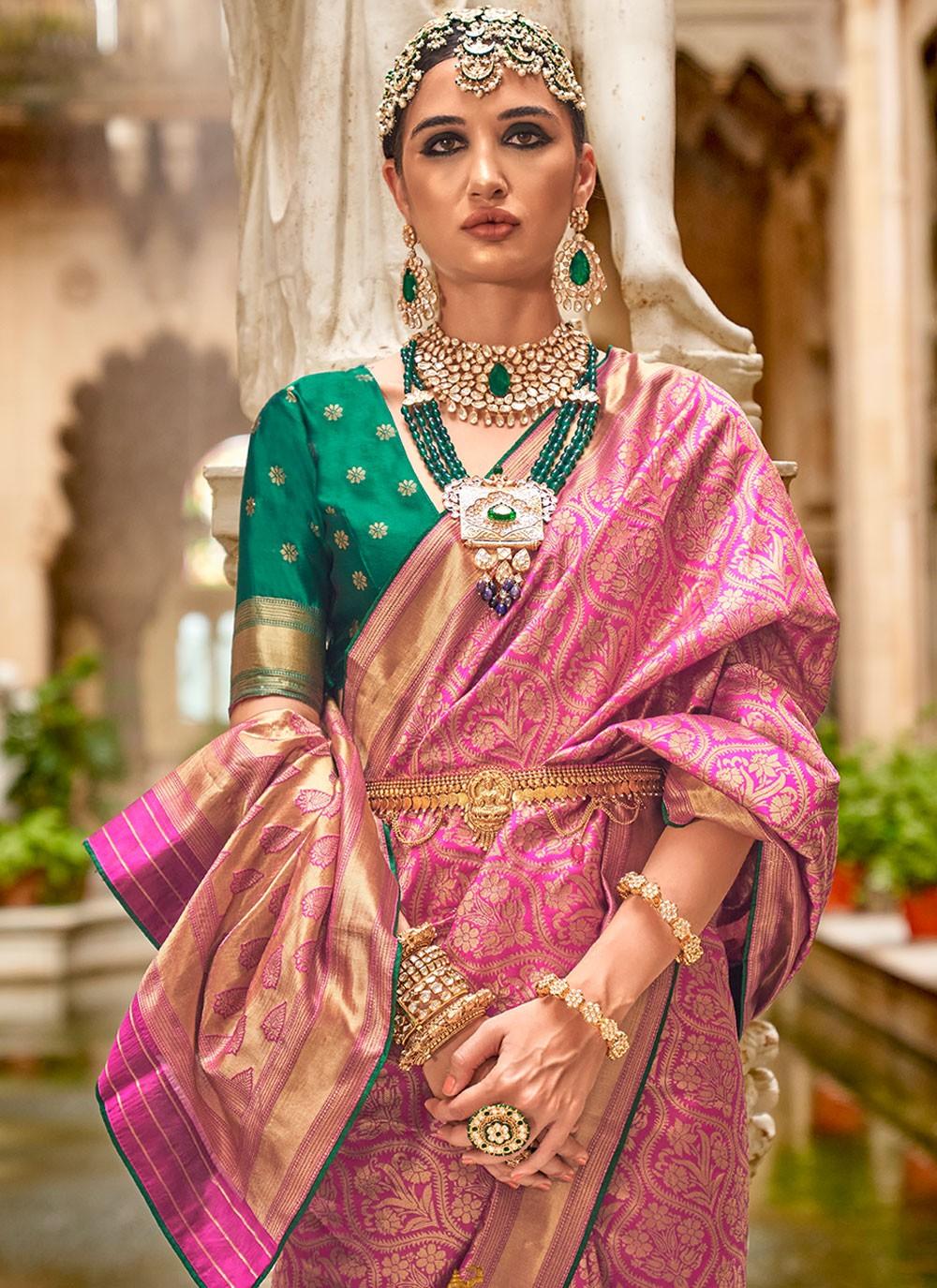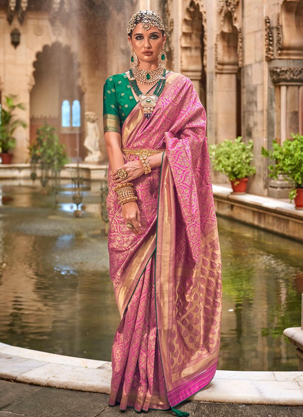 Deep Rose Banarasi Silk Jacquard Weaving Designer Saree
