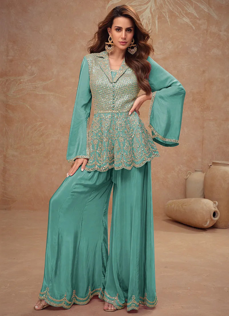 Designer and Exquisite Embroidered Peplum Style Palazzo Suit