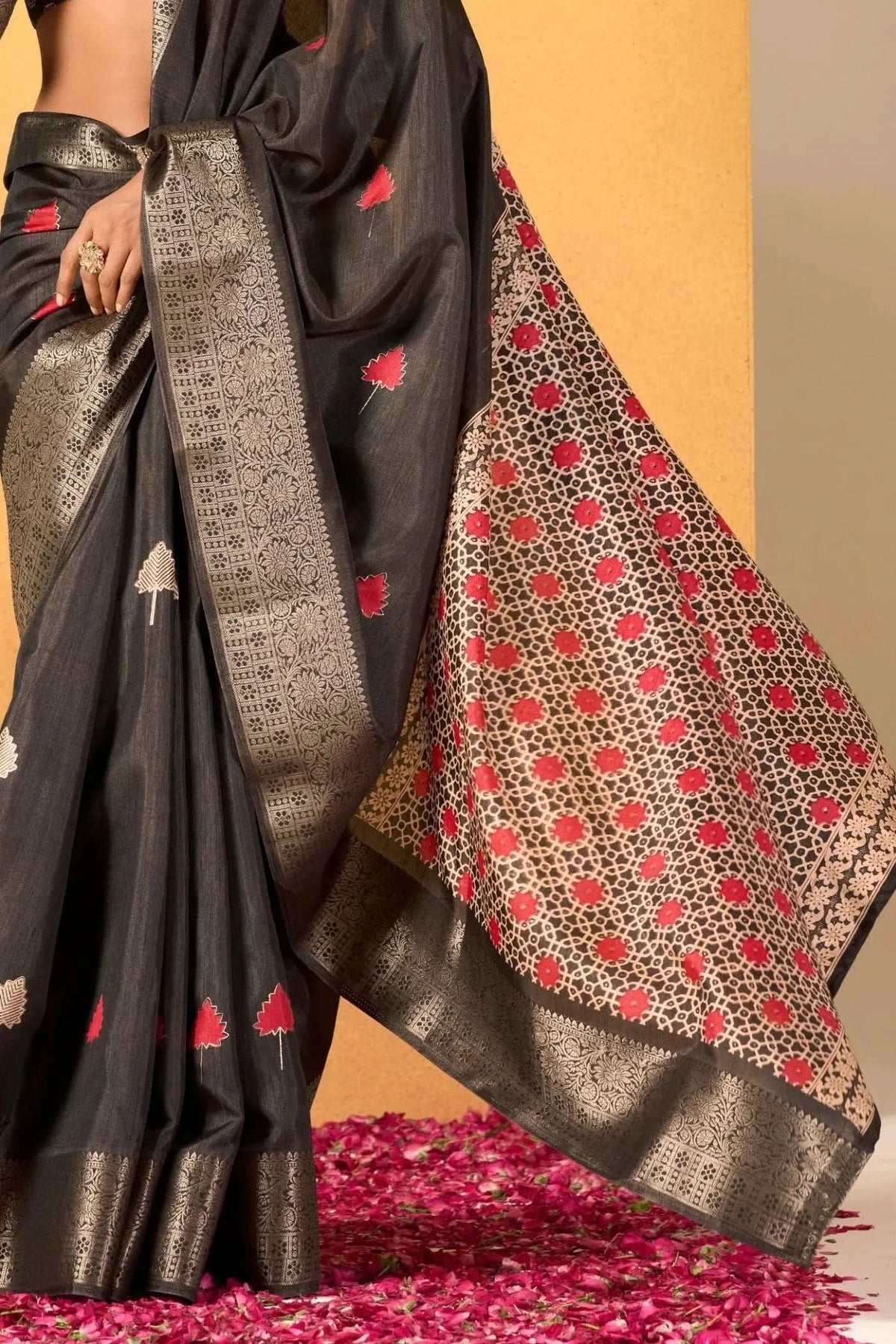 Elegant Black Soft Dola Silk Saree with Intricate Woven Pattern
