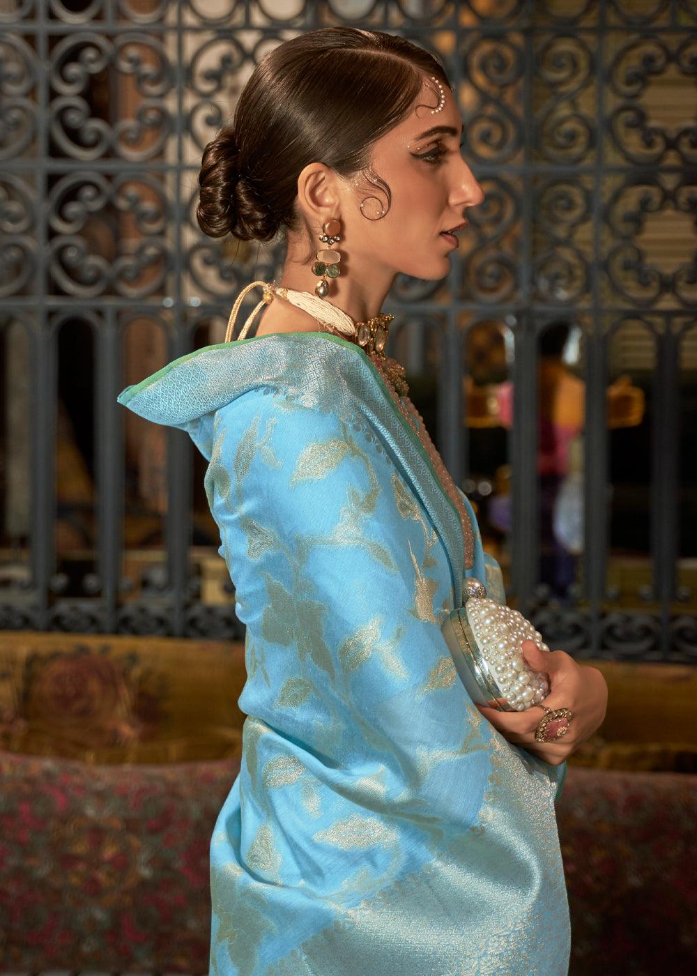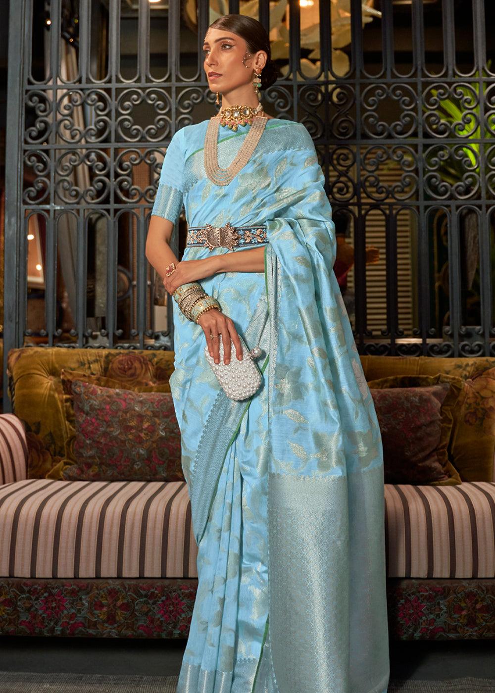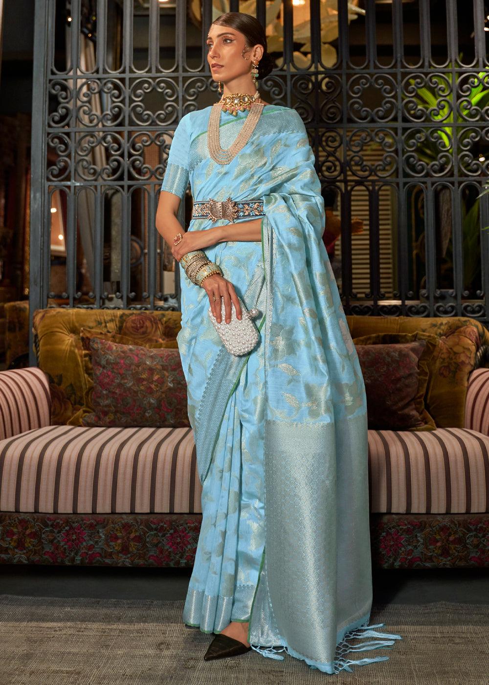 ENGLISH BLUE WOVEN BANARASI SILK SAREE