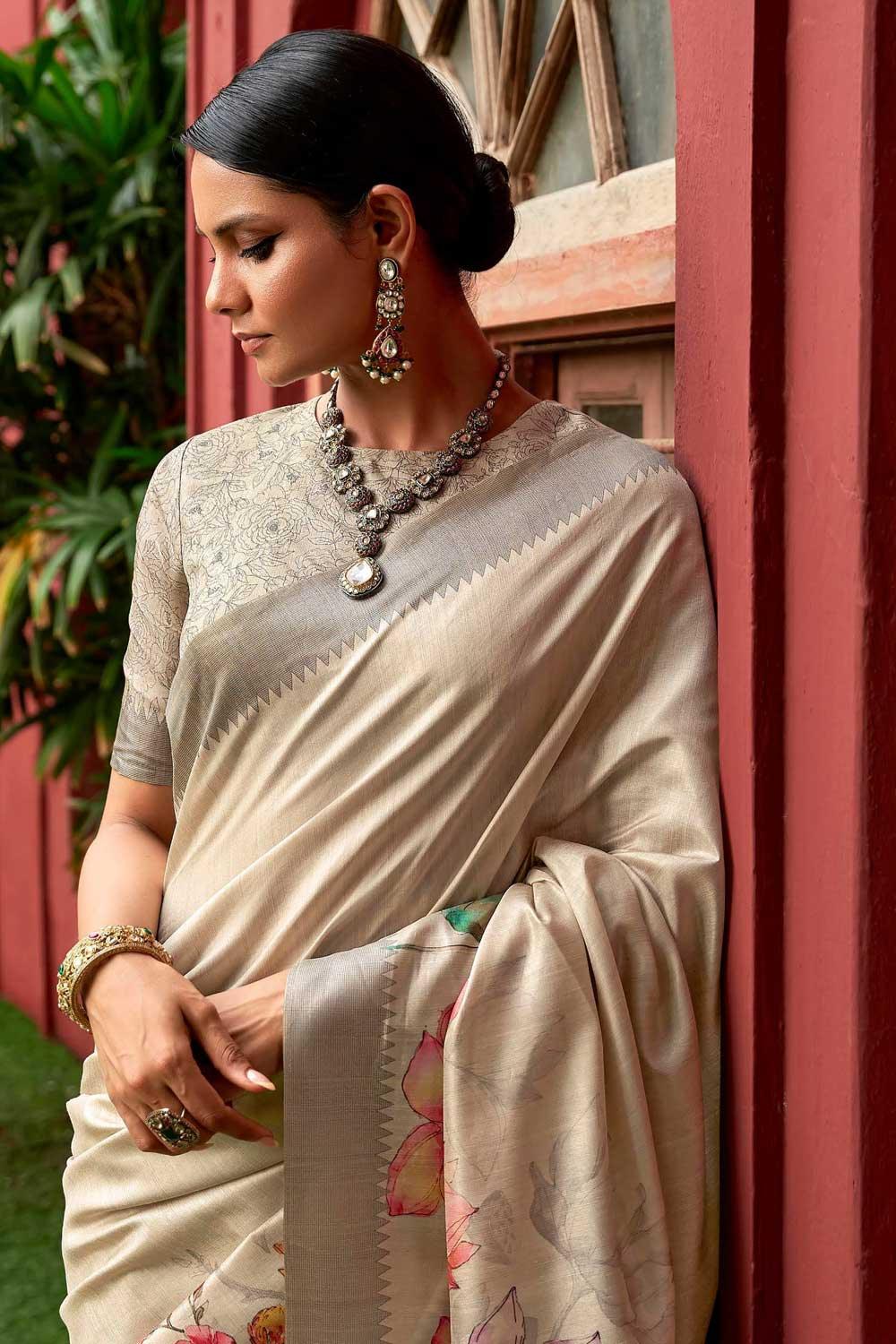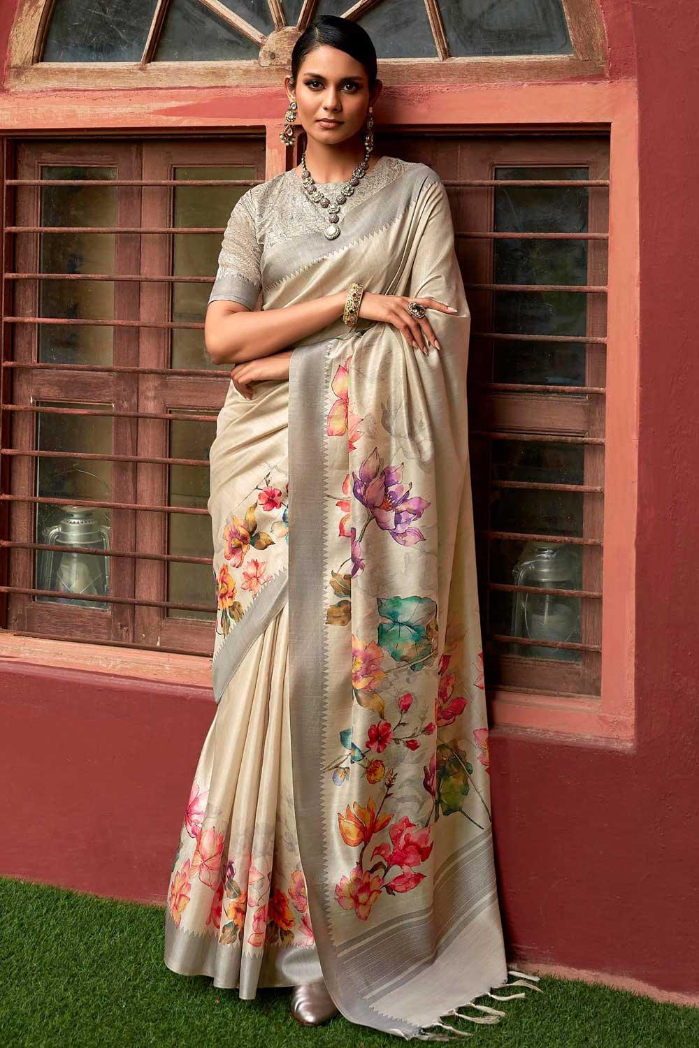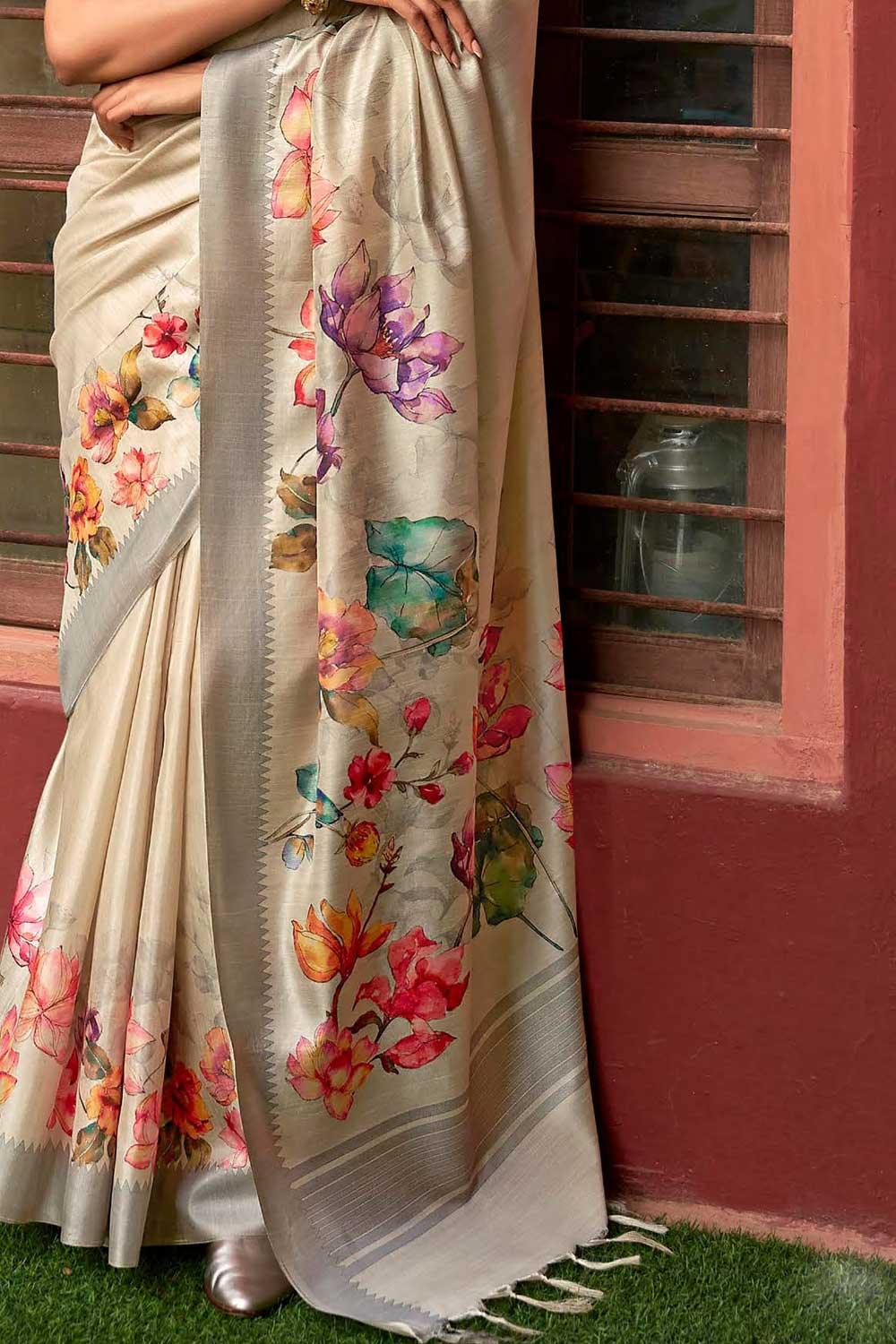 Excellent Art Silk Fabric Beige Color Floral Printed Saree