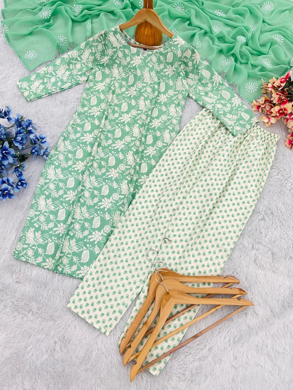 Fabulous Reyon Teal Green Color Salwar Suit