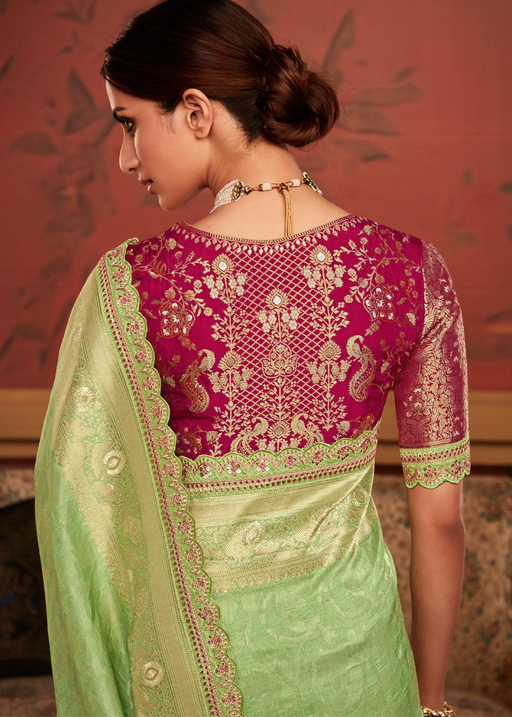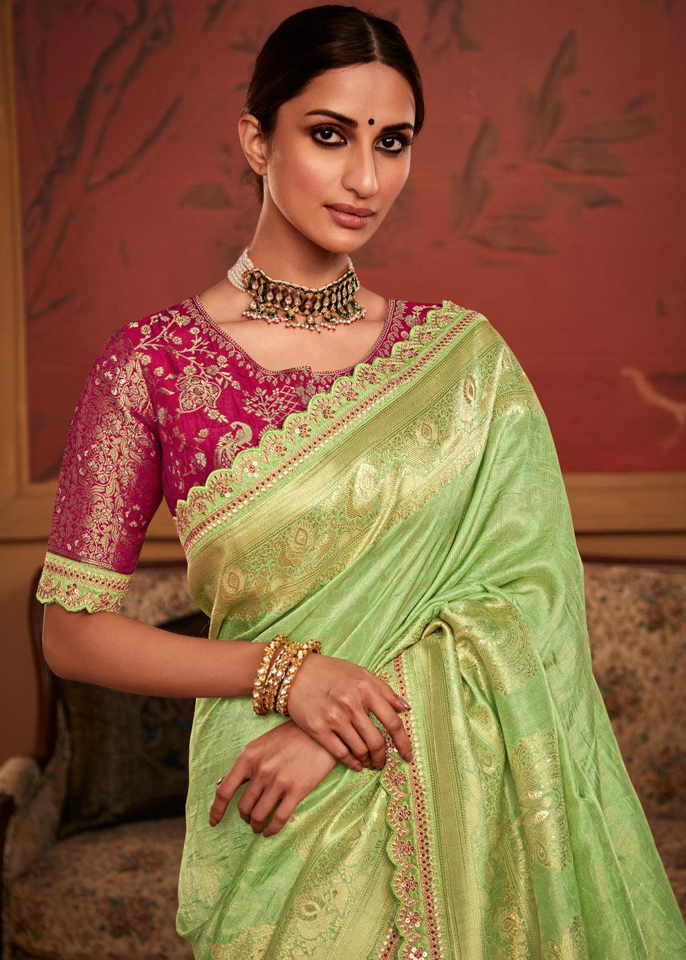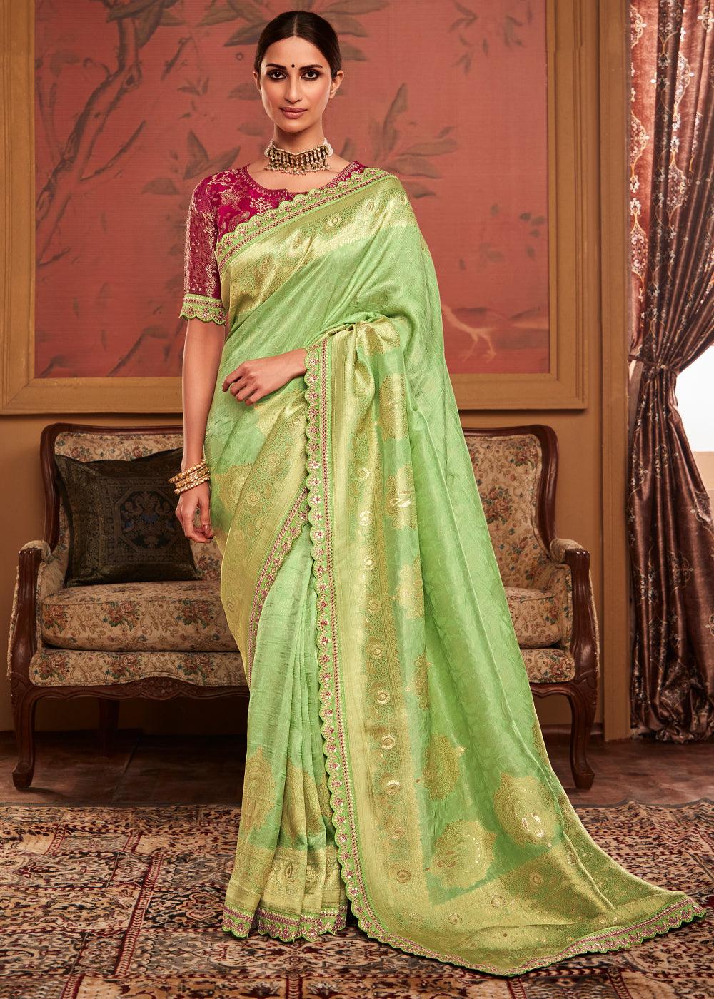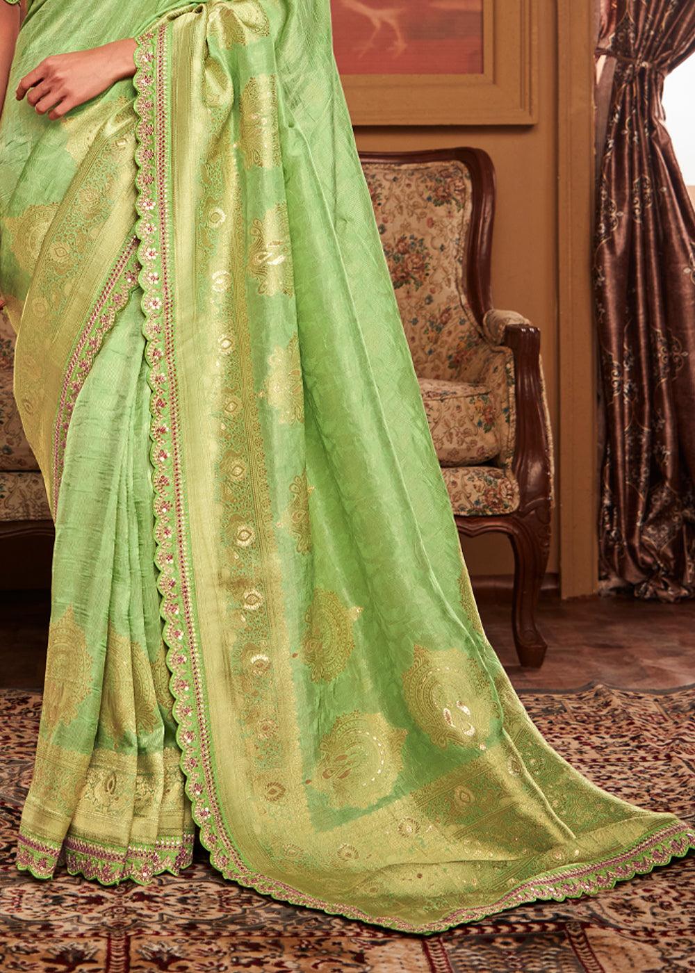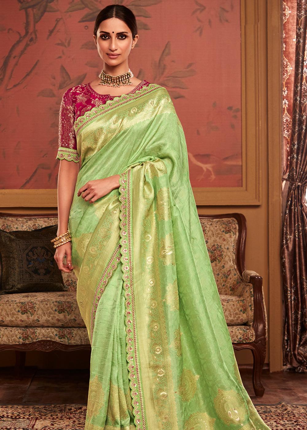 Light Green Woven Banarasi Designer Silk Saree With Embroidered Blouse