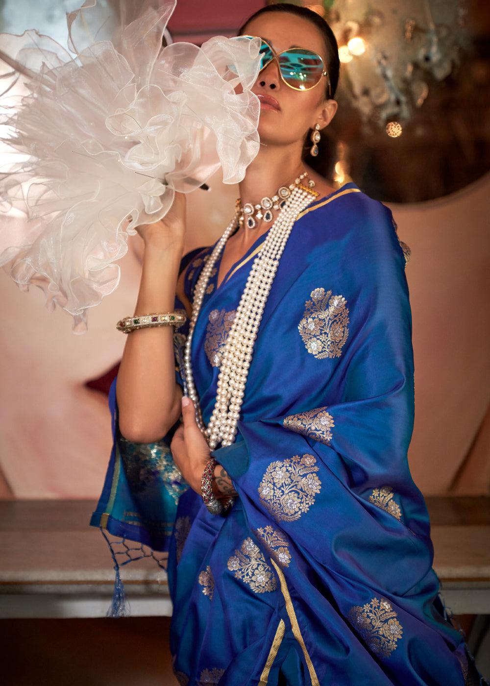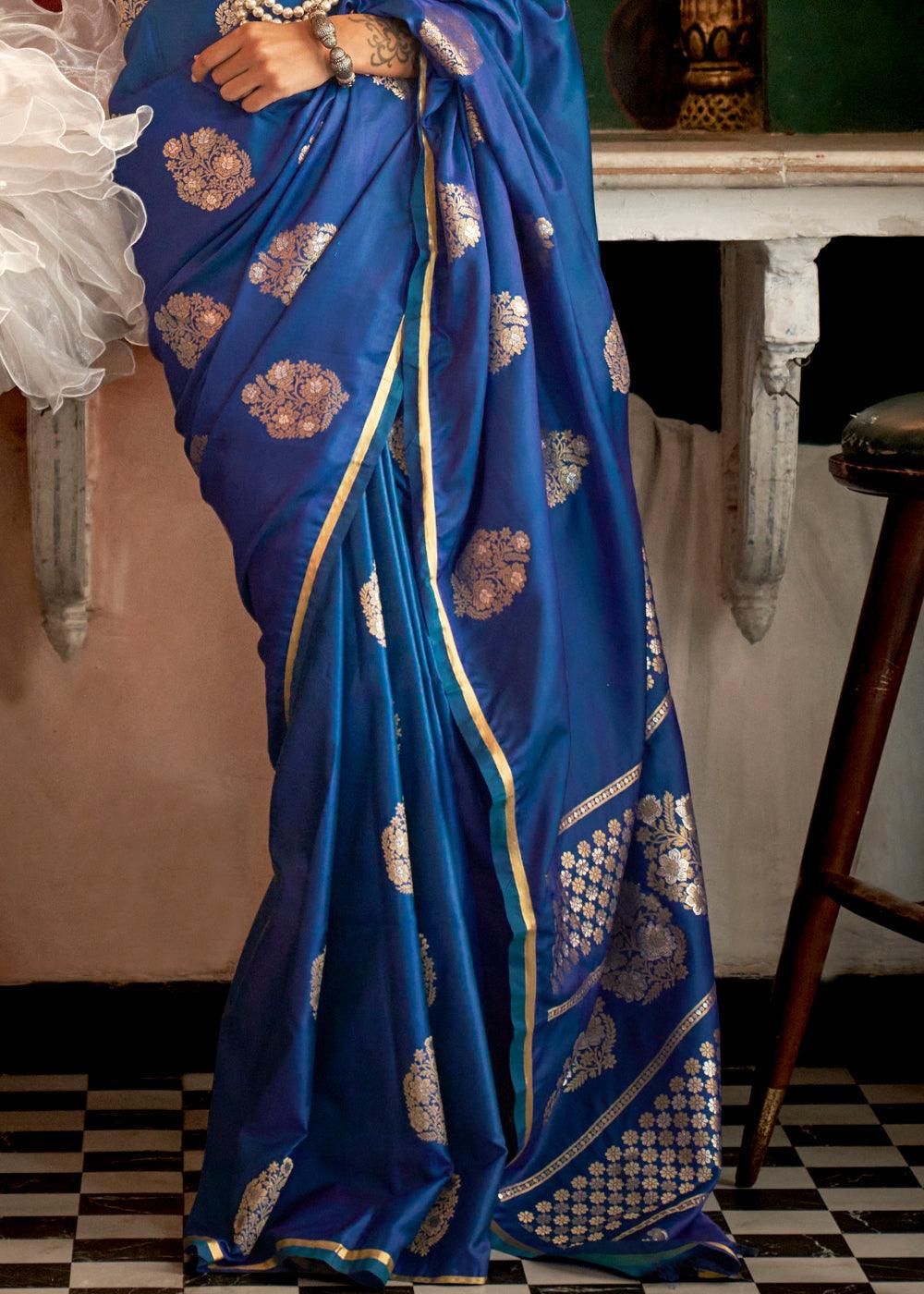 Peacock Blue Woven Banarasi Satin Silk Saree