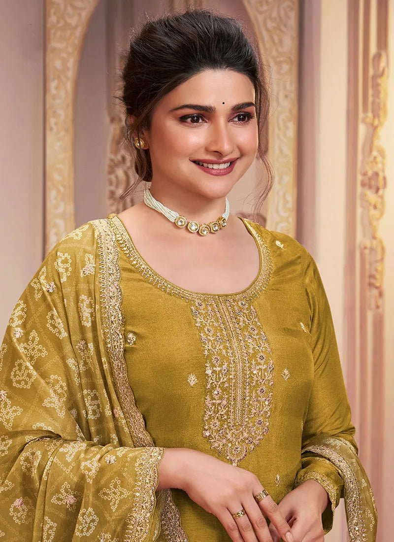 Sandy Taupe Colored Designer Embroidered Straight Suit