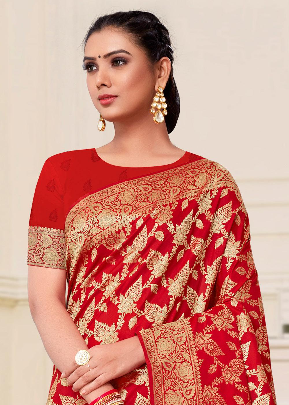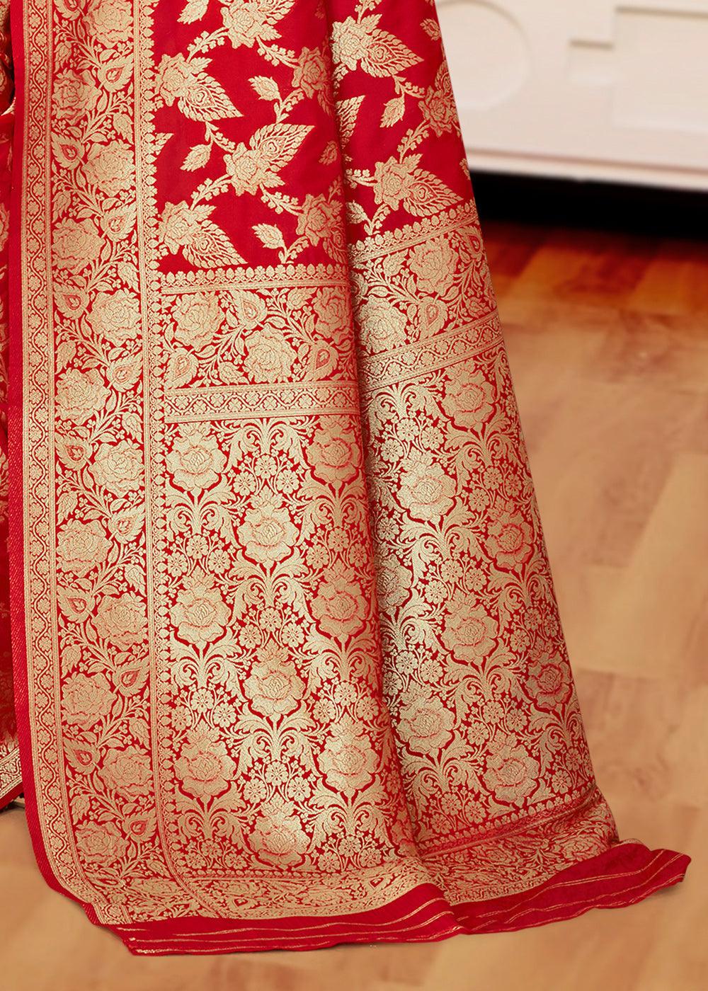Tango Red Woven Banarasi Brocade Festive Saree