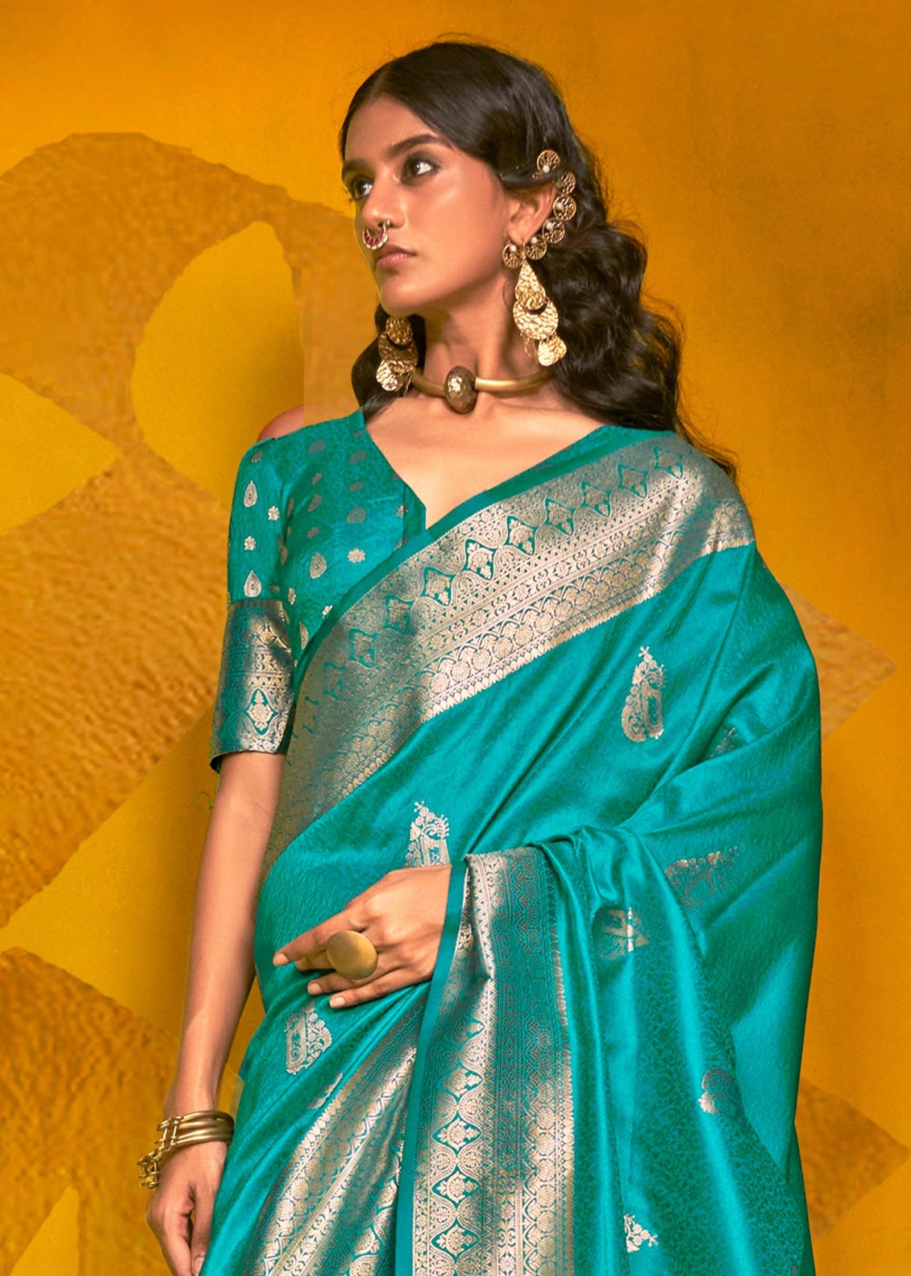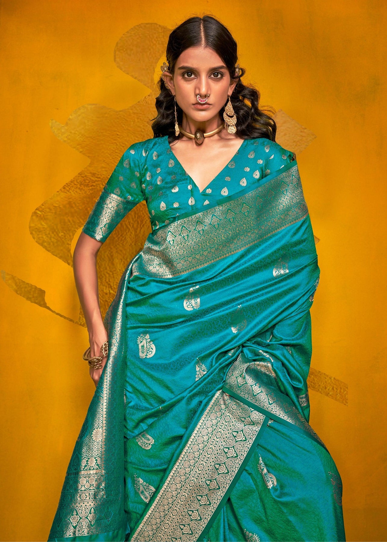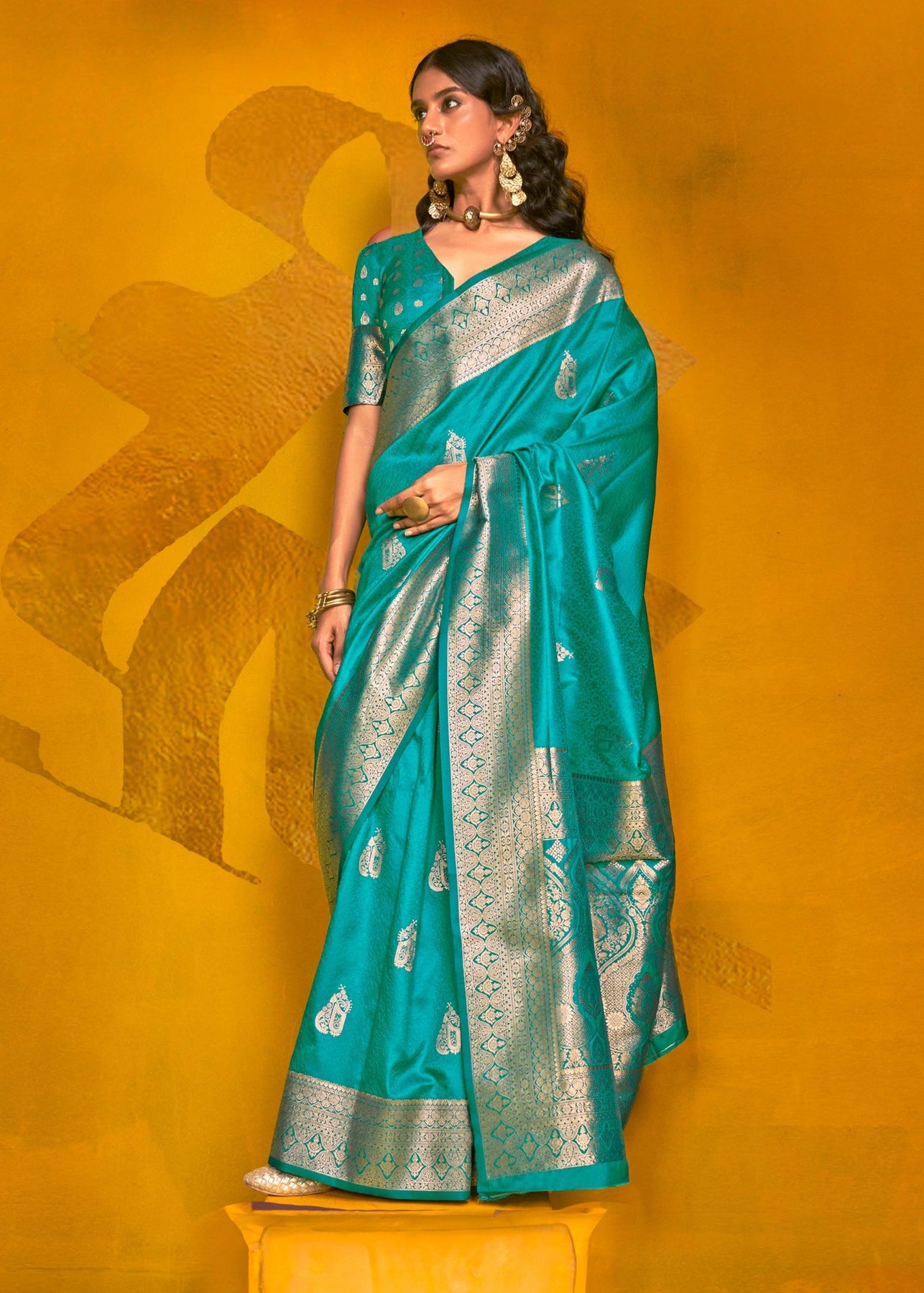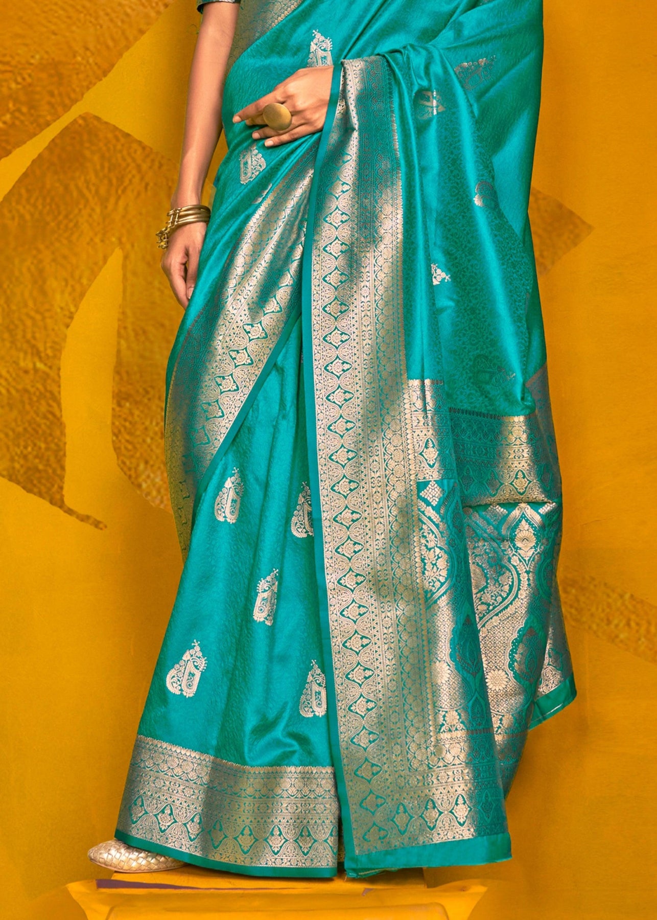 Teal Blue Woven Banarasi Silk Saree