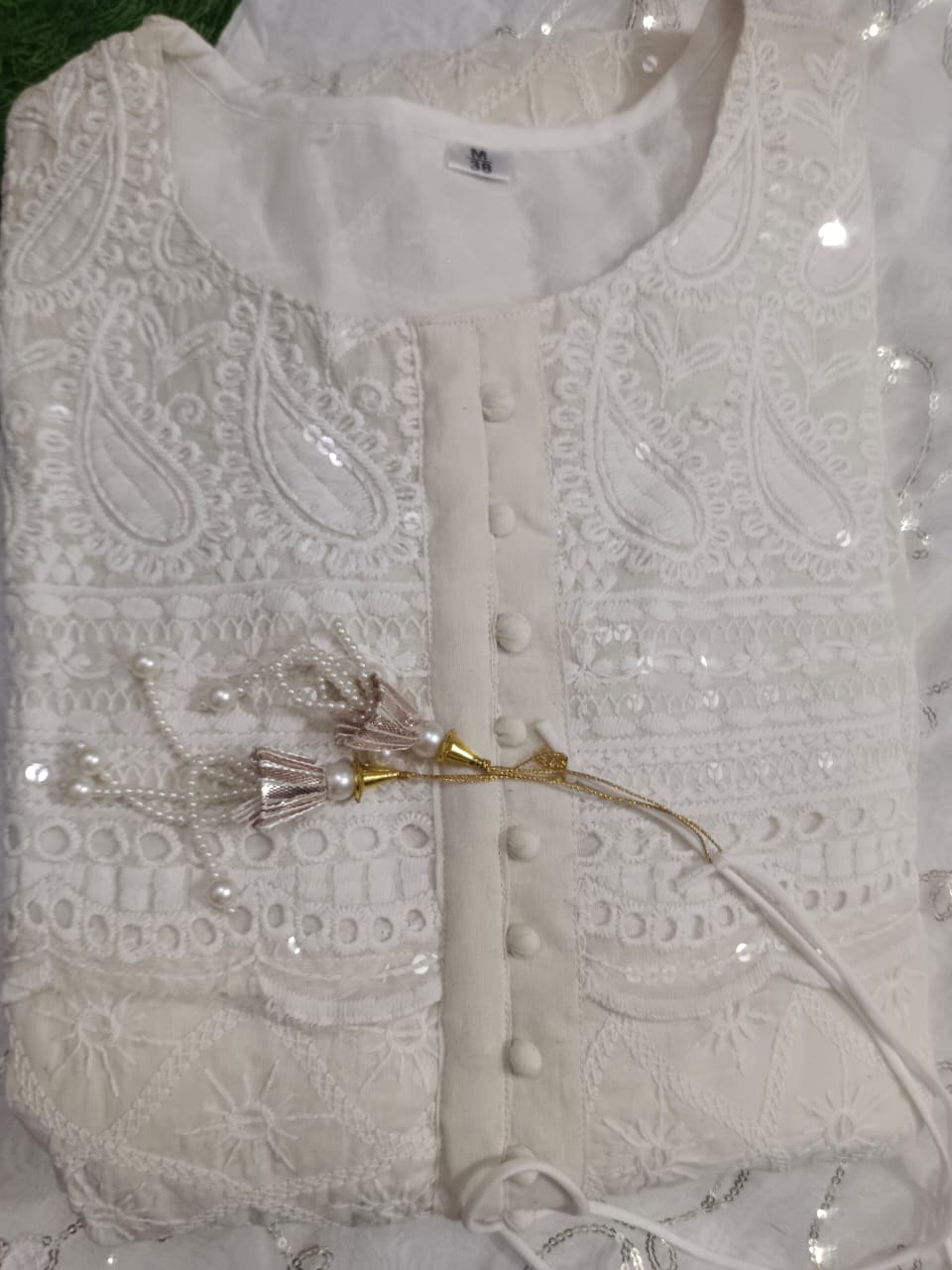 - Kurti: Beautiful Chikankari embroidery adding traditional grace and charm