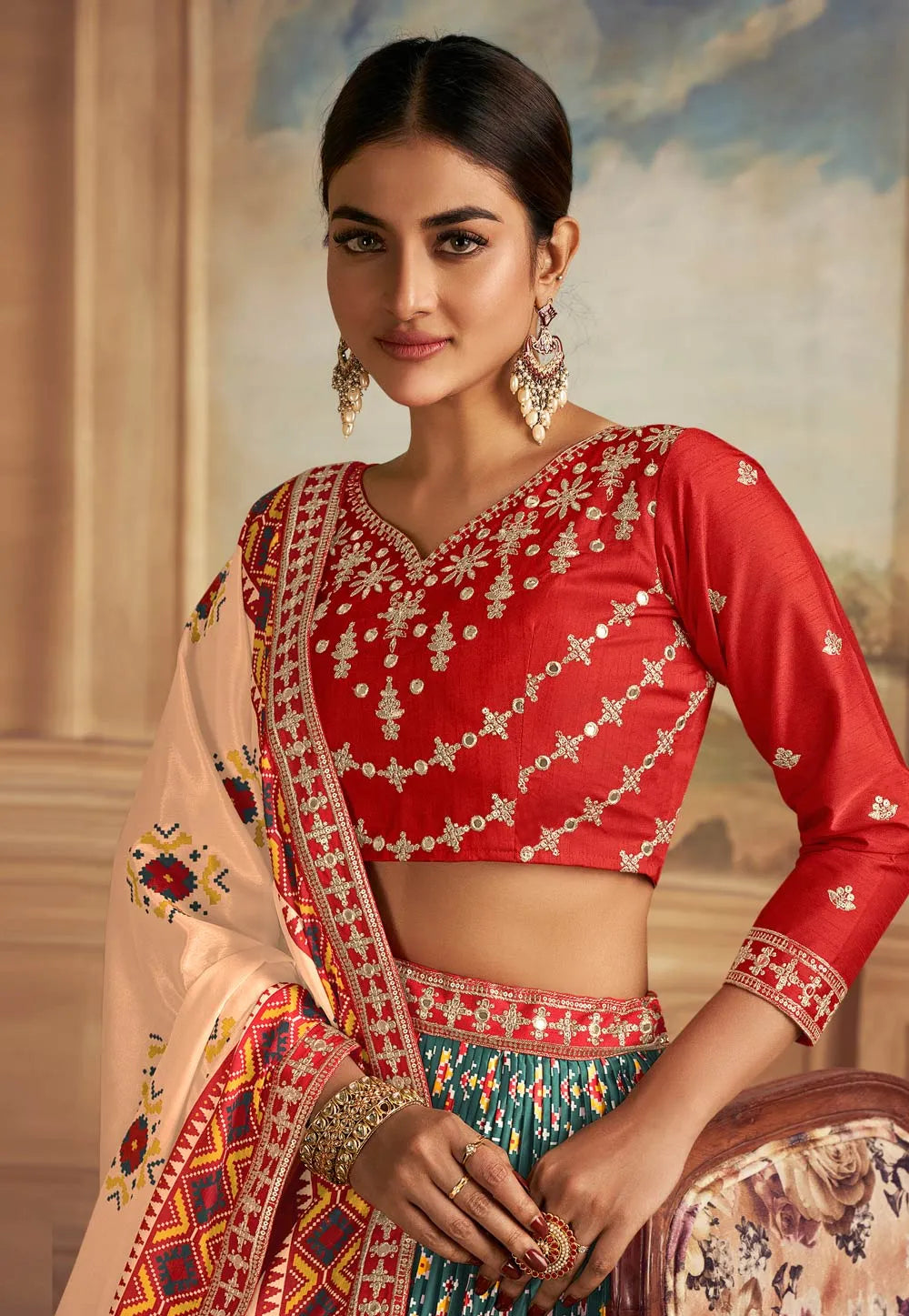 Elevate your bridal style with our stunning Silk Bridal Lehenga. Adorned with intricate sequins work, this exquisite ensemble is designed to make you feel like royalty on your special day.