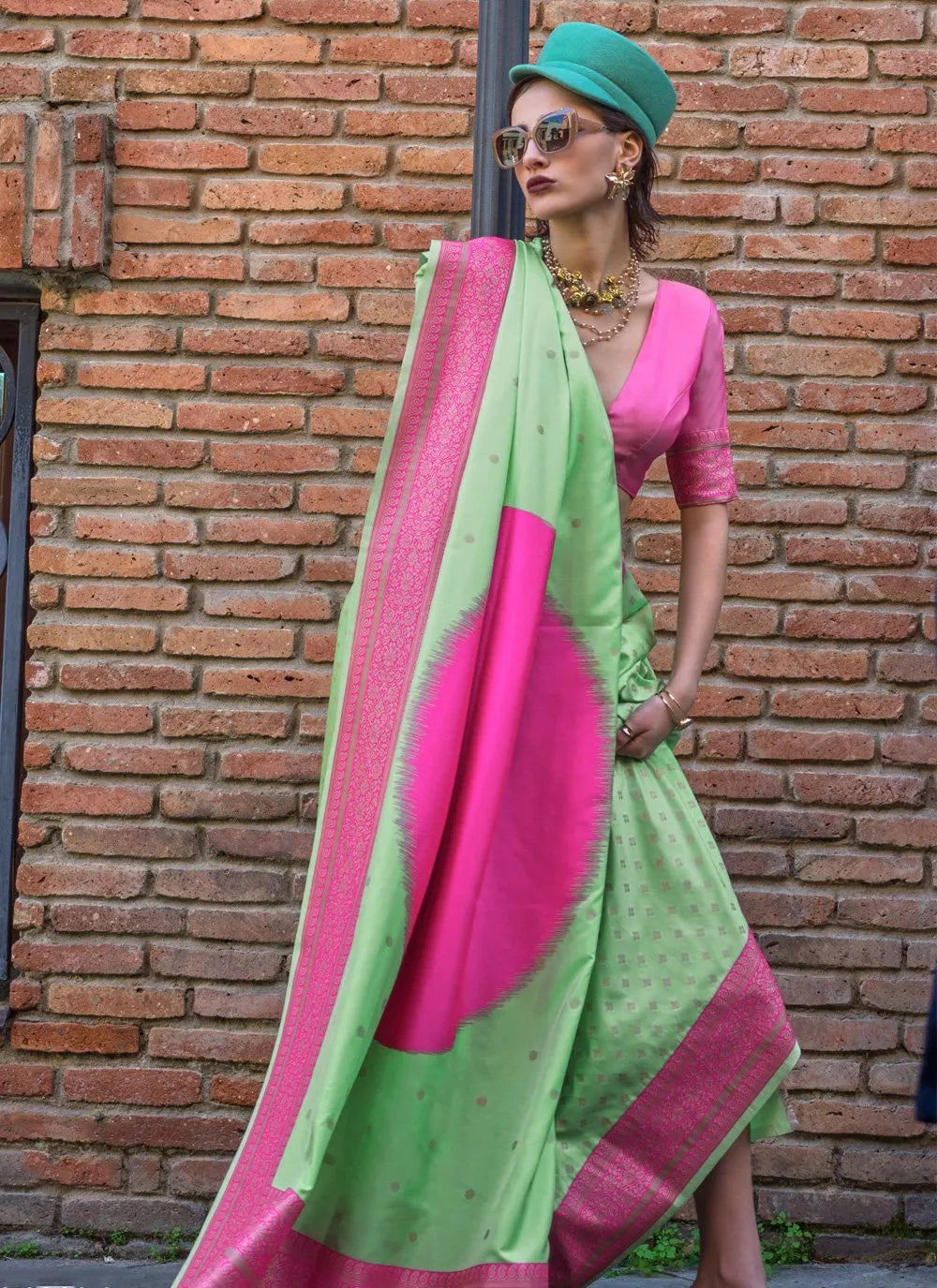 | Work | Nevertheless Pairs With Blouse With Original Handmade Bandhej With Zari Weaving Border |