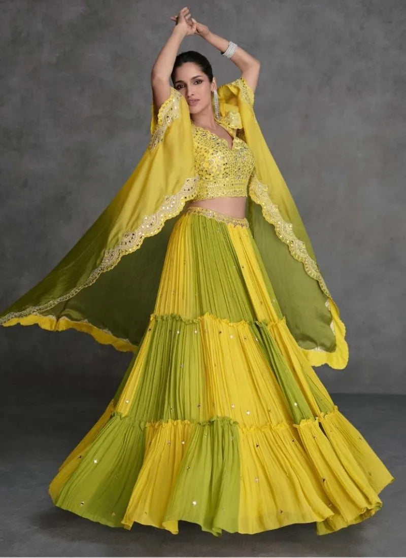 Designer Yellow Real Mirror With Embroidery Sequins Work Beautiful Lehenga