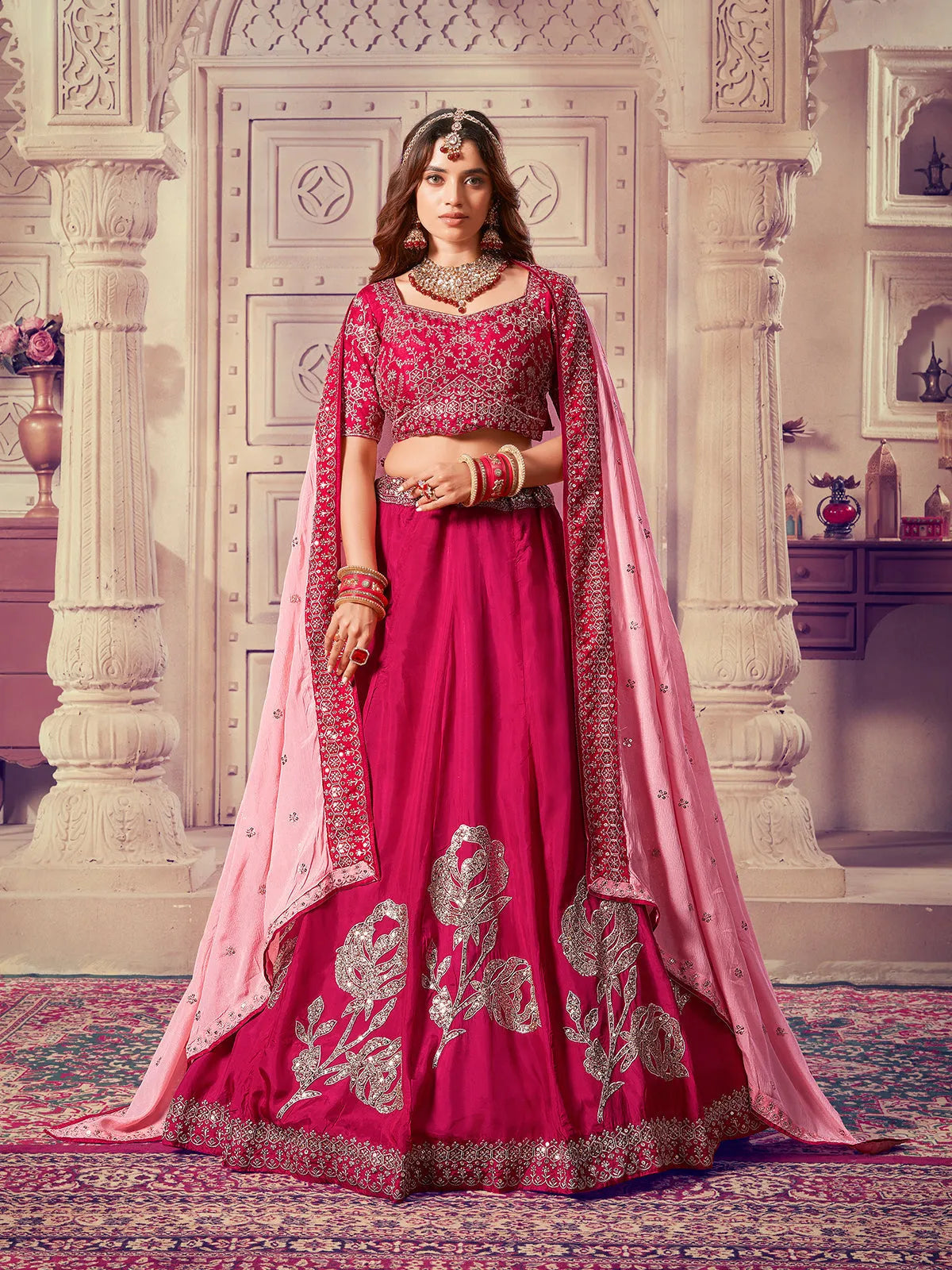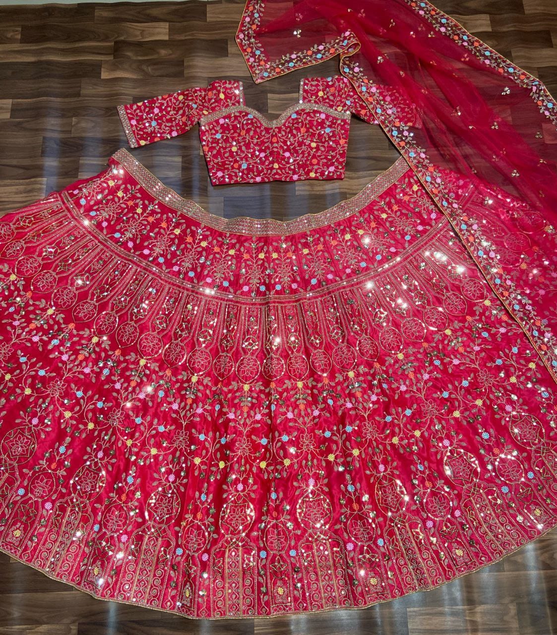 | Fabric | Dupatta Fabric :Pure Chinnon Silk With Embroidery Sequence Work |