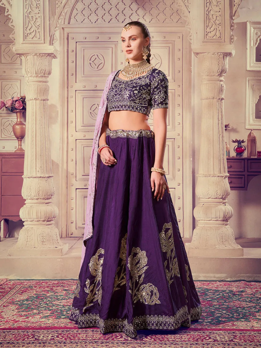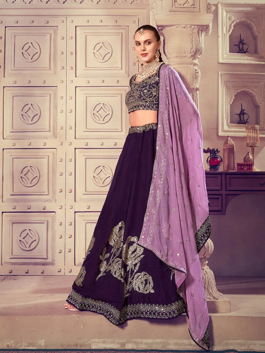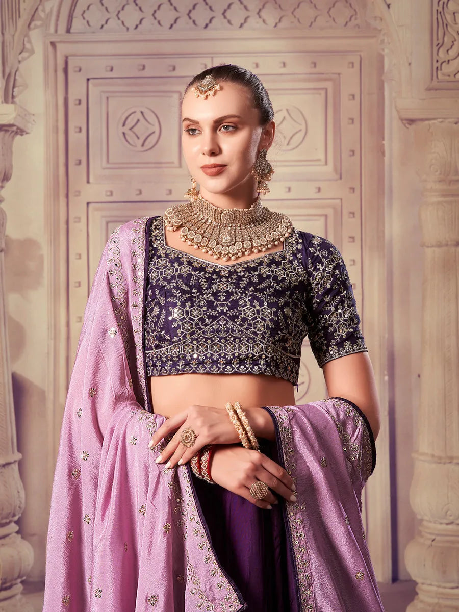 Designer Wine Embroidered Bridal Lehenga choli Set